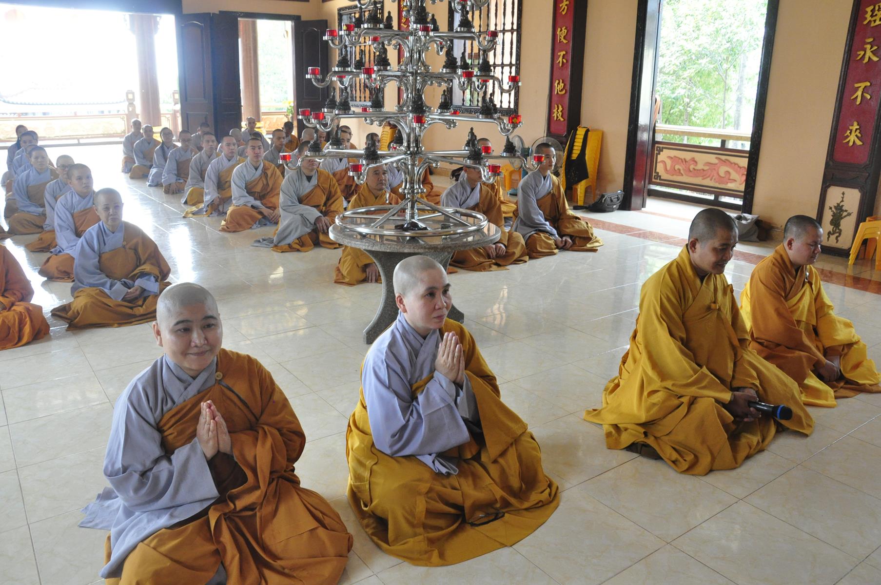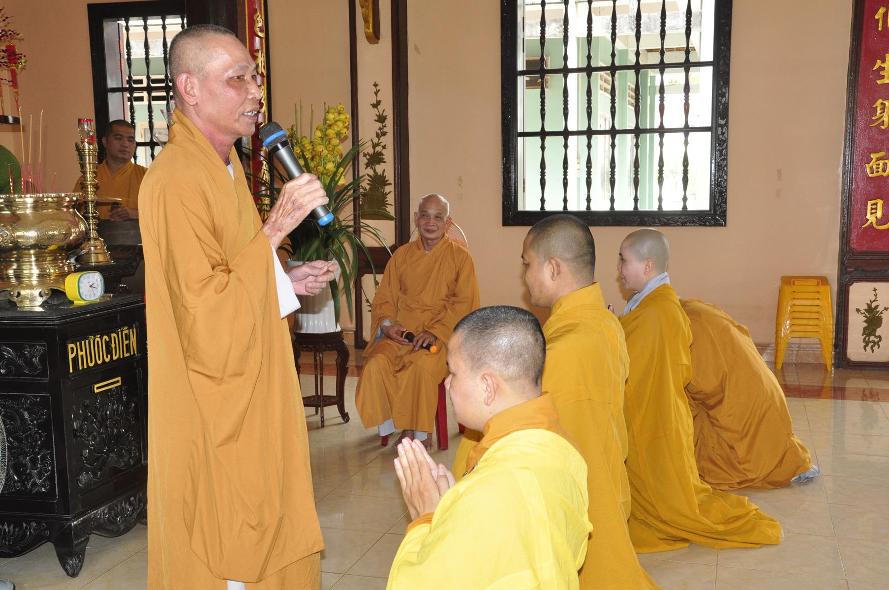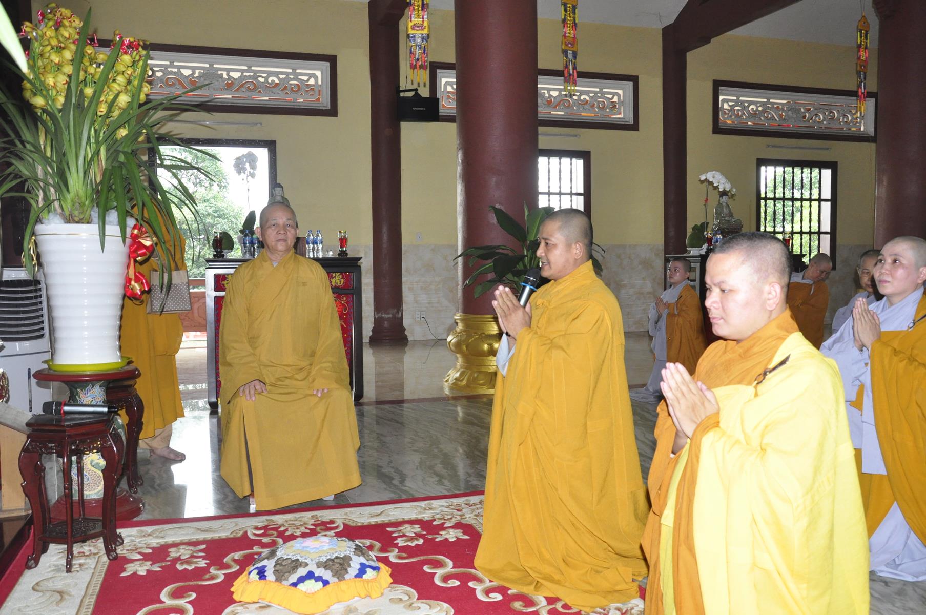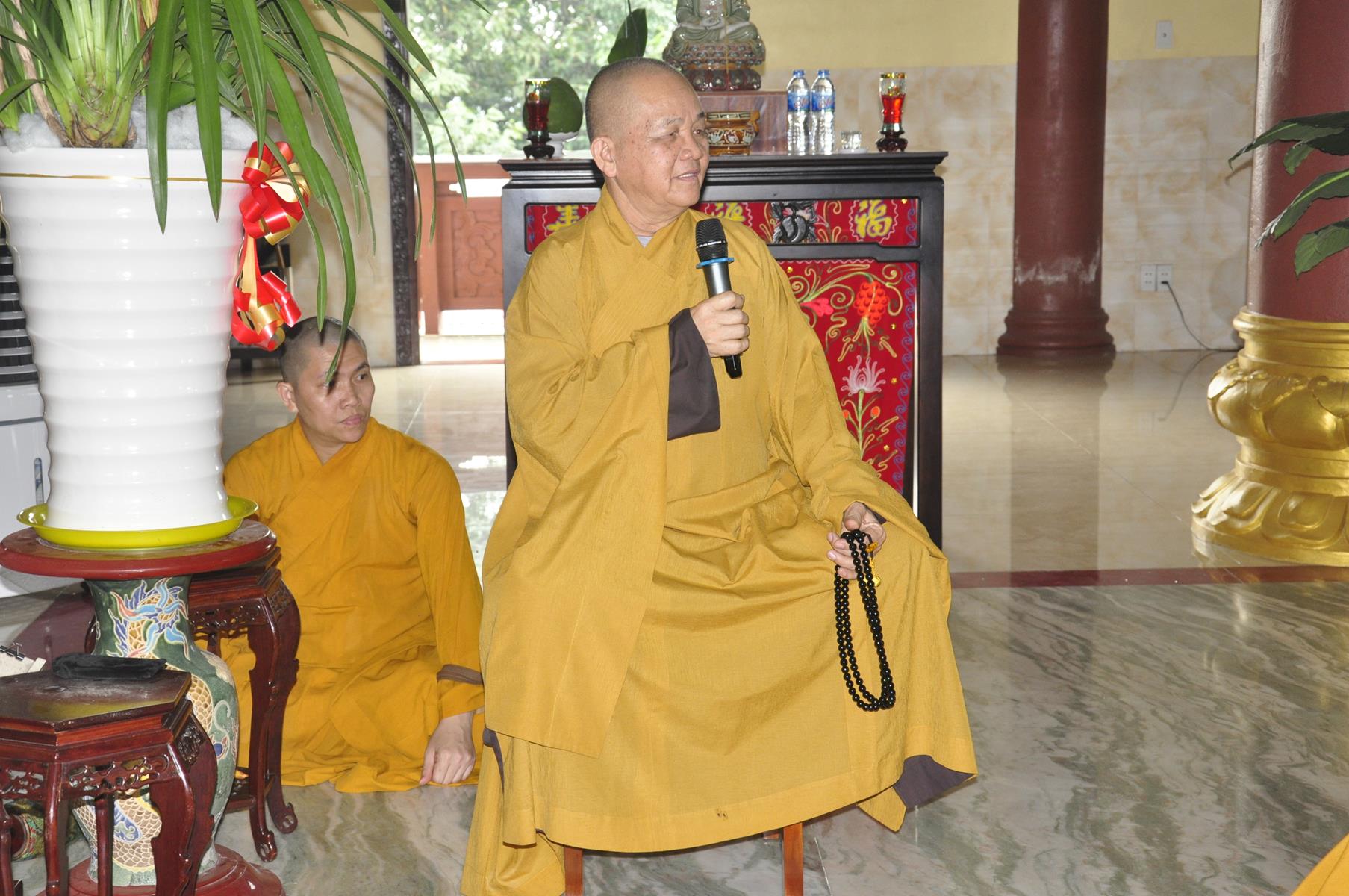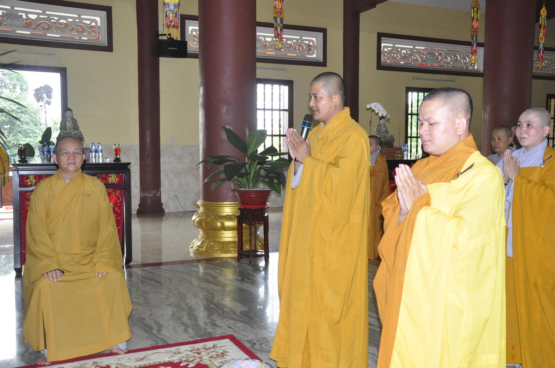 Trong niềm hân hoan, rạng ngời trên nét mặt như người cha hiền chờ đón đứa con thơ xa nhà trở về, Hòa Thượng Chứng Minh đã từ bi khuyến tấn Ban chủ nhiệm cùng Tăng Ni sinh Lớp Sơ cấp “Trên con đường học đạo giải thoát các con Hãy là hòn đảo của chính mình, đừng nên nương tựa vào người khác.”