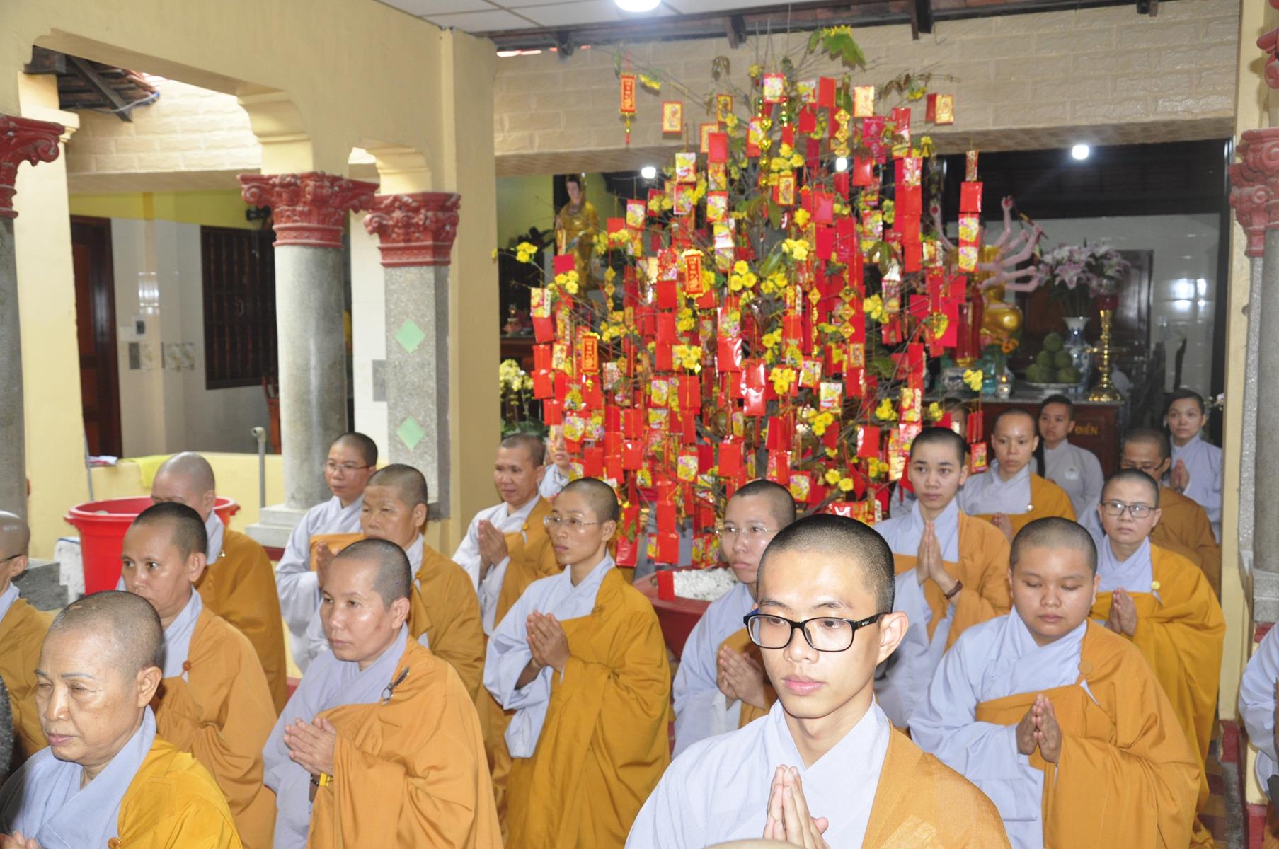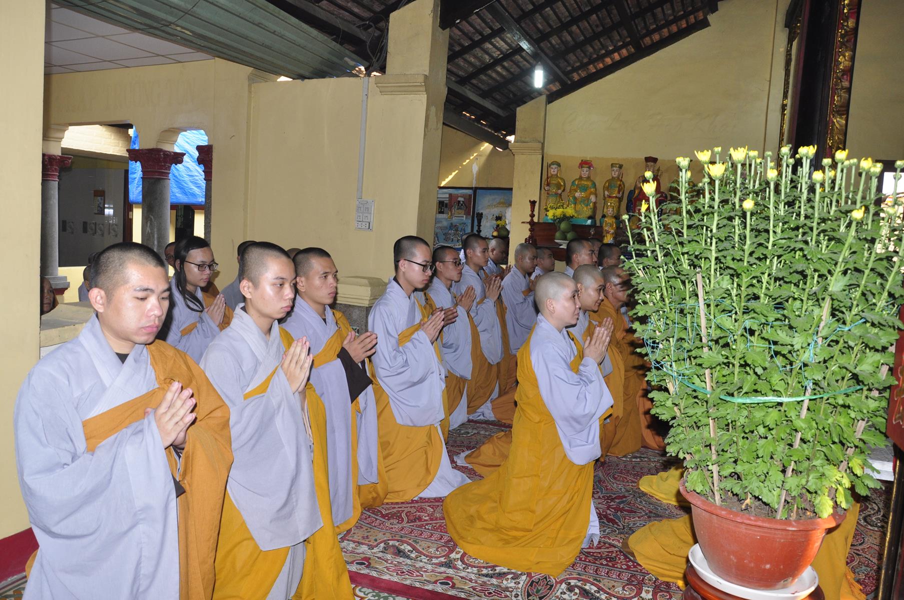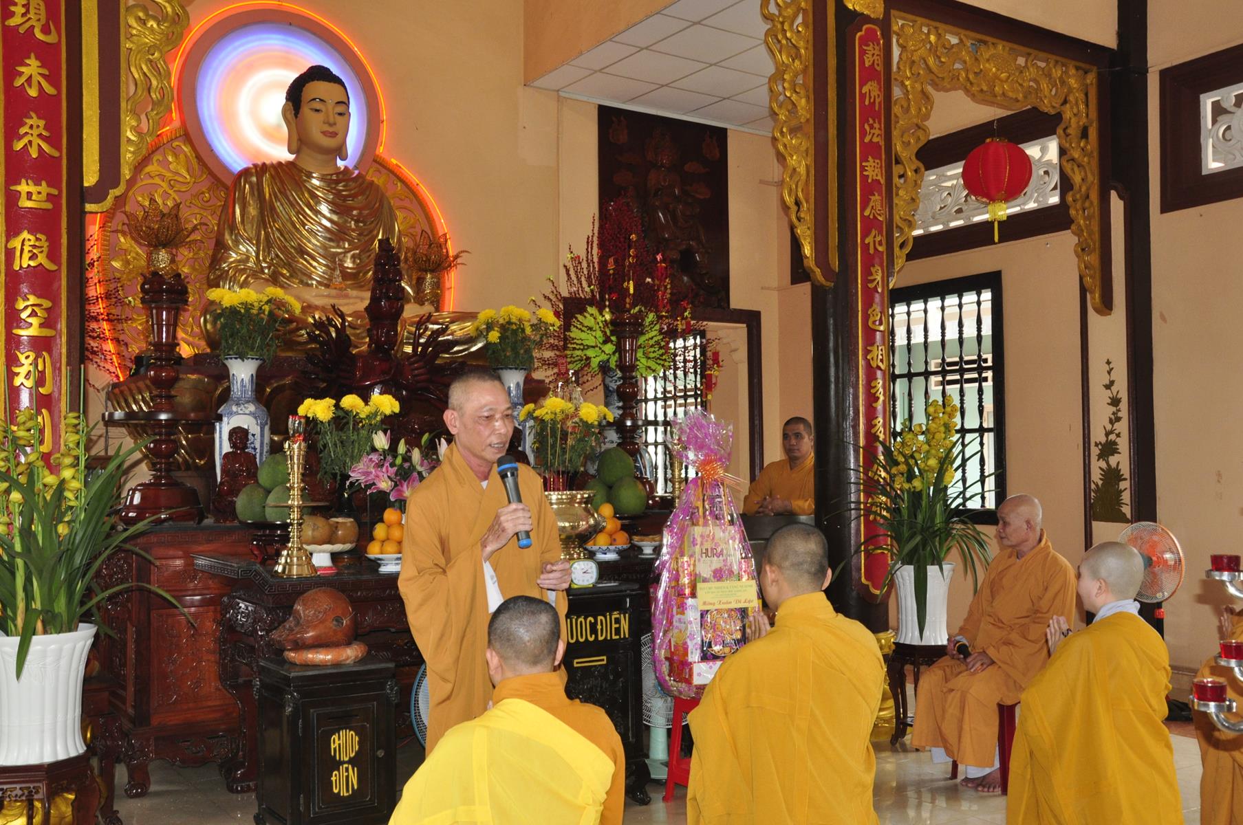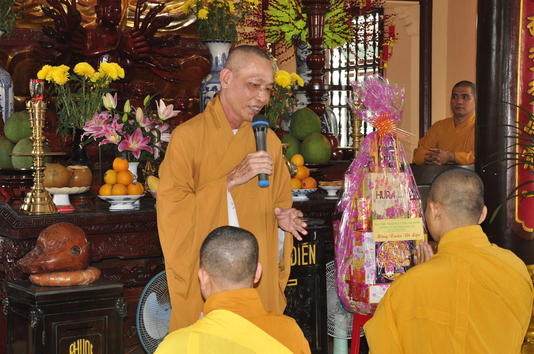 Về Tổ đình chùa Thiên Châu Ban chủ nhiệm cùng Tăng Ni sinh được uống dòng sữa pháp ngọt ngào, ấm áp bằng tình thương bao la của lòng từ bi và trí tuệ từ Hòa thượng Hiệu Trưởng, Ngài khuyên dạy về phẩm hạnh tốt đẹp của việc làm thiện nguyện, về nếp sống lục hòa, về giá trị nền tảng căn bản của sự tu tập và học hạnh giải thoát của người xuất gia. Ngài thiết tha mong muốn ngày tết cổ truyền của dân tộc luôn được duy trì và được phát huy ngày càng văn minh, trong sáng, tươi đẹp hơn. Bởi với Hòa Thượng đó là ngày để con cháu nhắc nhau về với gia đình, là ngày sau bao vất vả lo toan, bộn bề với công việc tất cả mọi người được ngồi cùng với nhau ấm áp, chúc tụng nhau những điều tốt đẹp, bao buồn phiền giận hờn cũng được xóa tan bởi những điều kiêng kỵ dành cho năm mới. Và để những người đệ tử, những người học trò nhỏ được cung kính phủ phục trước tôn dung ân sư của mình đảnh lễ niệm ân trong truyền thống tri ân của người con Phật. Hòa thượng cũng gởi lời chúc mừng năm mới đến bổn sư, y chỉ sư và gia đình của toàn thể Tăng Ni sinh.