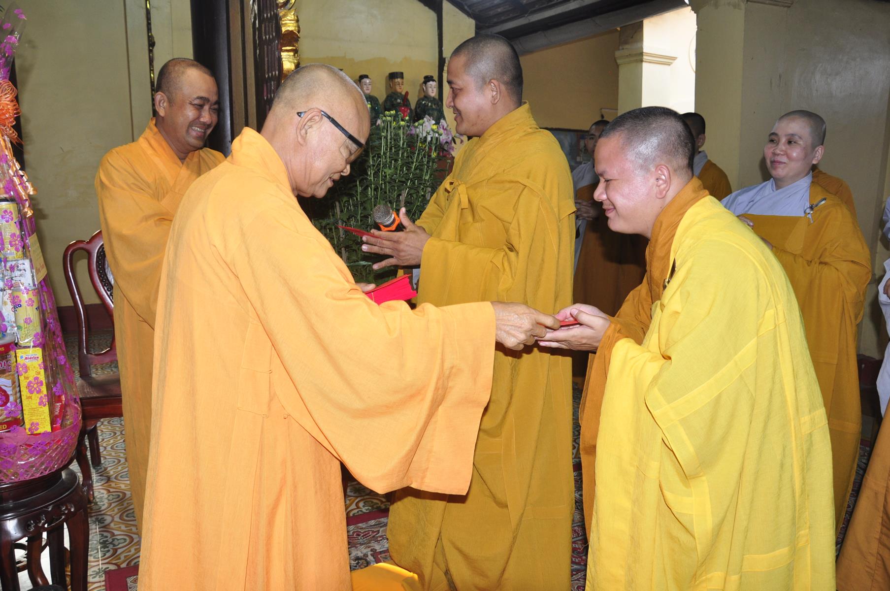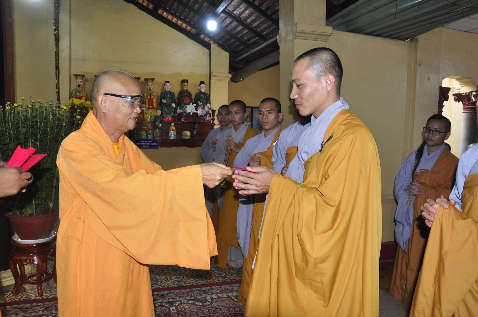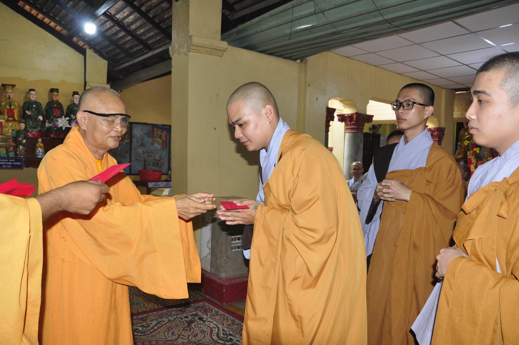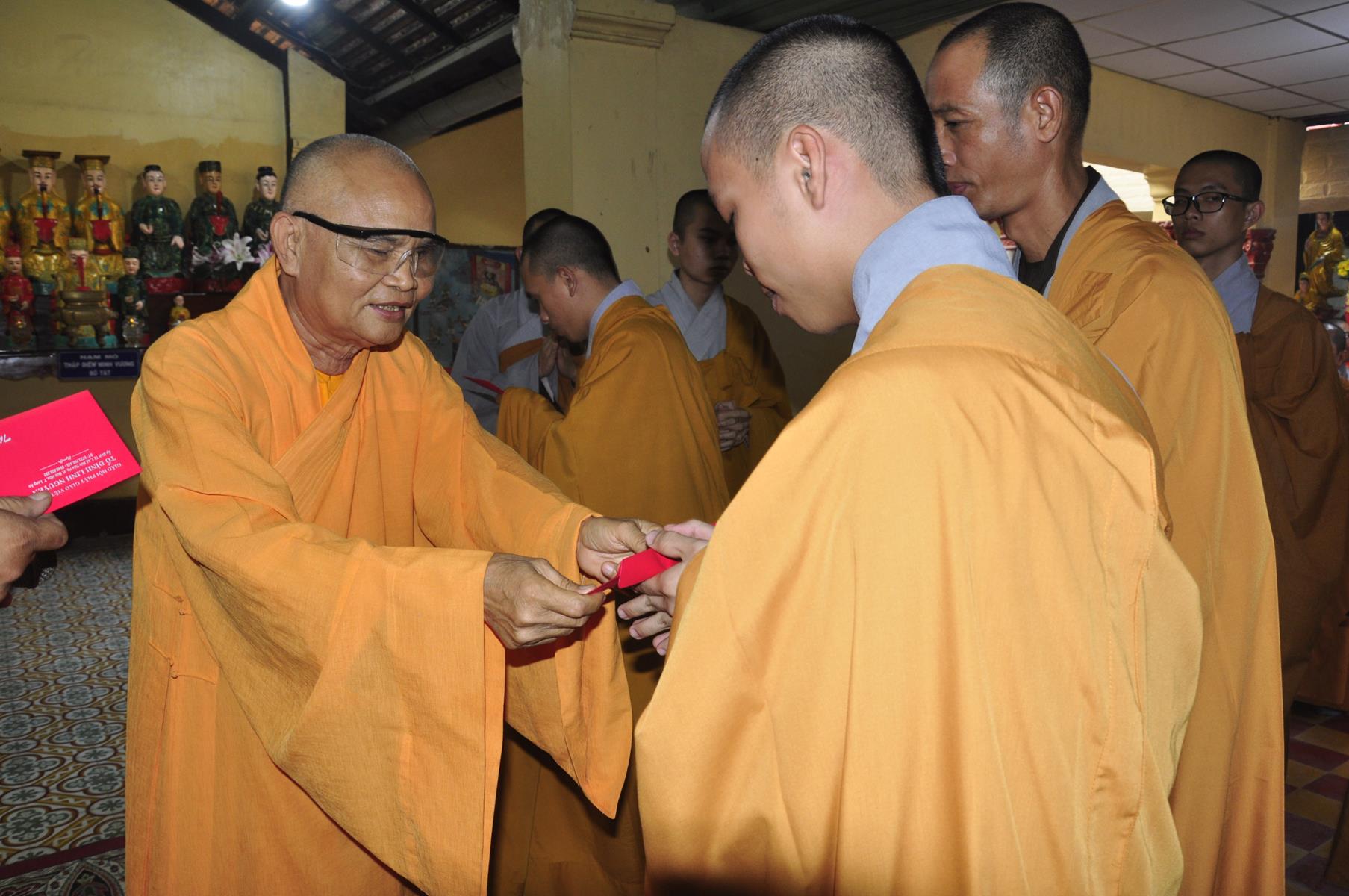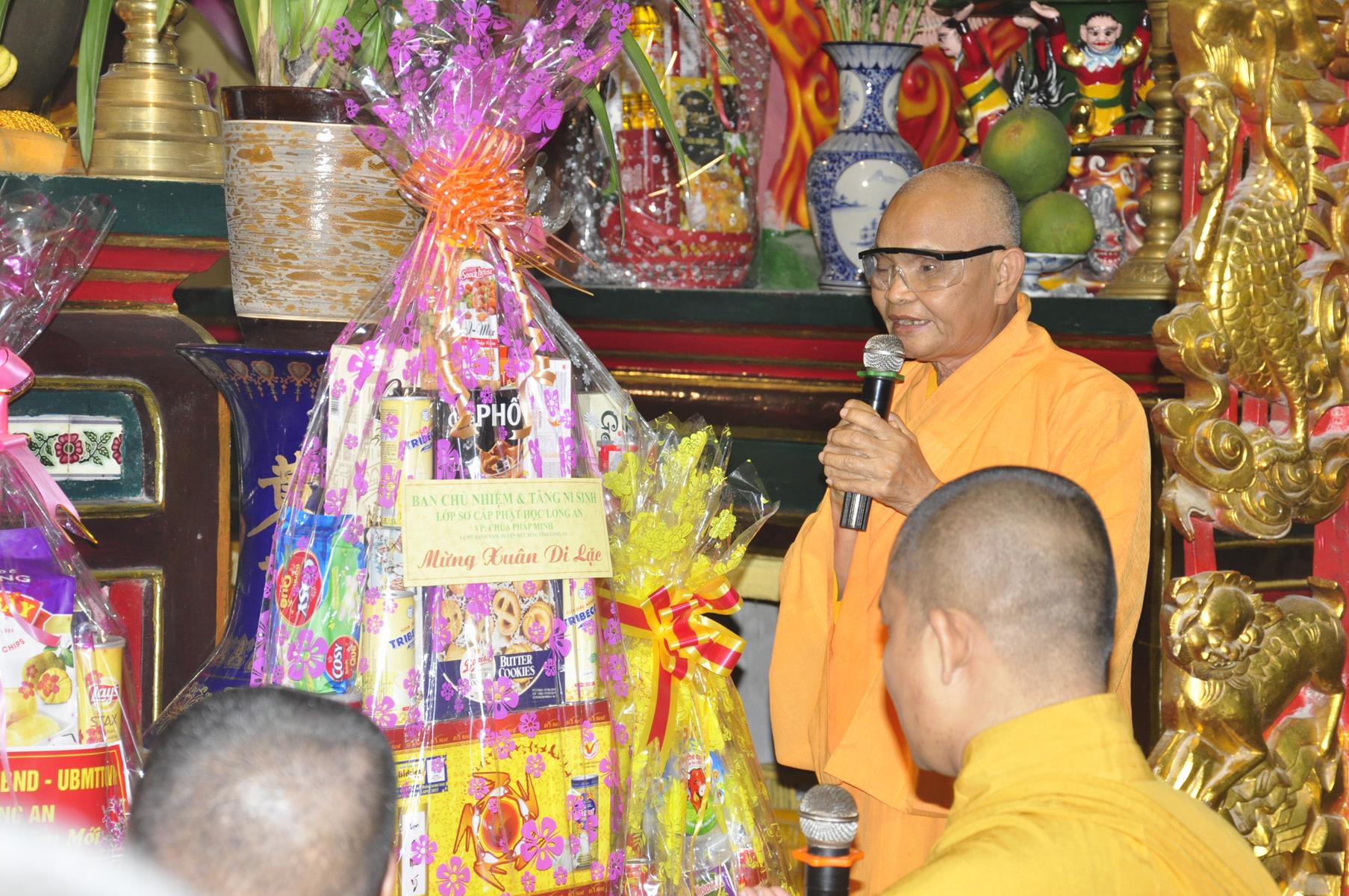 Hòa Thượng Chứng minh Lớp Sơ cấp Phật học tỉnh Long An cũng đã có những lời giáo huấn vô cùng cao quý đến với Ban chủ nhiệm và Tăng Ni sinh Lớp Sơ cấp Phật học tỉnh Long An. Và như một lời gởi gắm tốt đẹp trao đến những người học trò nhỏ của mình quý Hòa Thượng đã lần lượt trao những phong bao màu đỏ của ngày tết gọi là Lì xì Lộc Phật, trong niềm hân hoan, tràn đầy an lạc của tình Thầy trò.