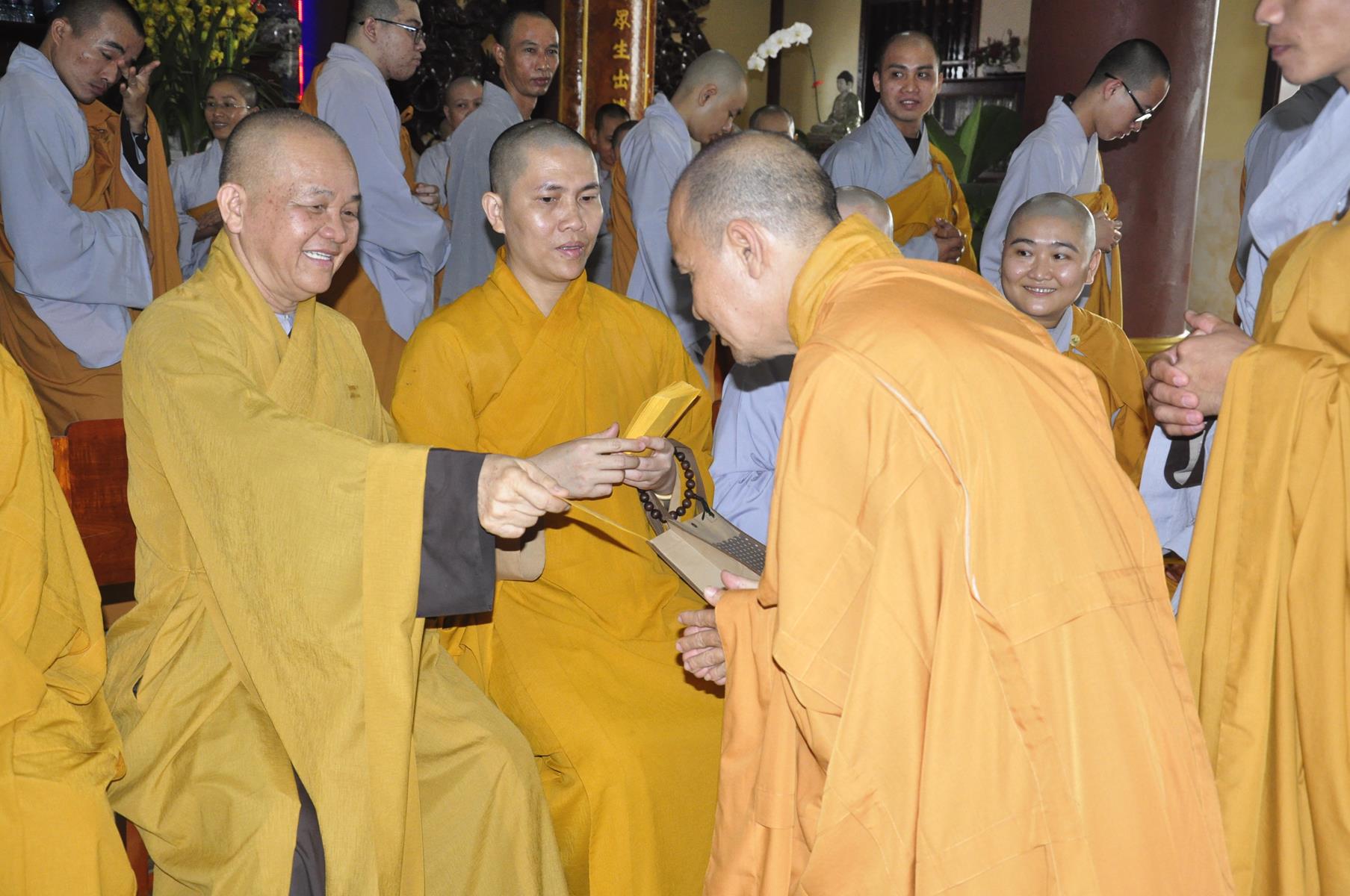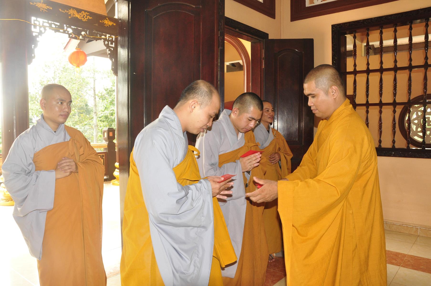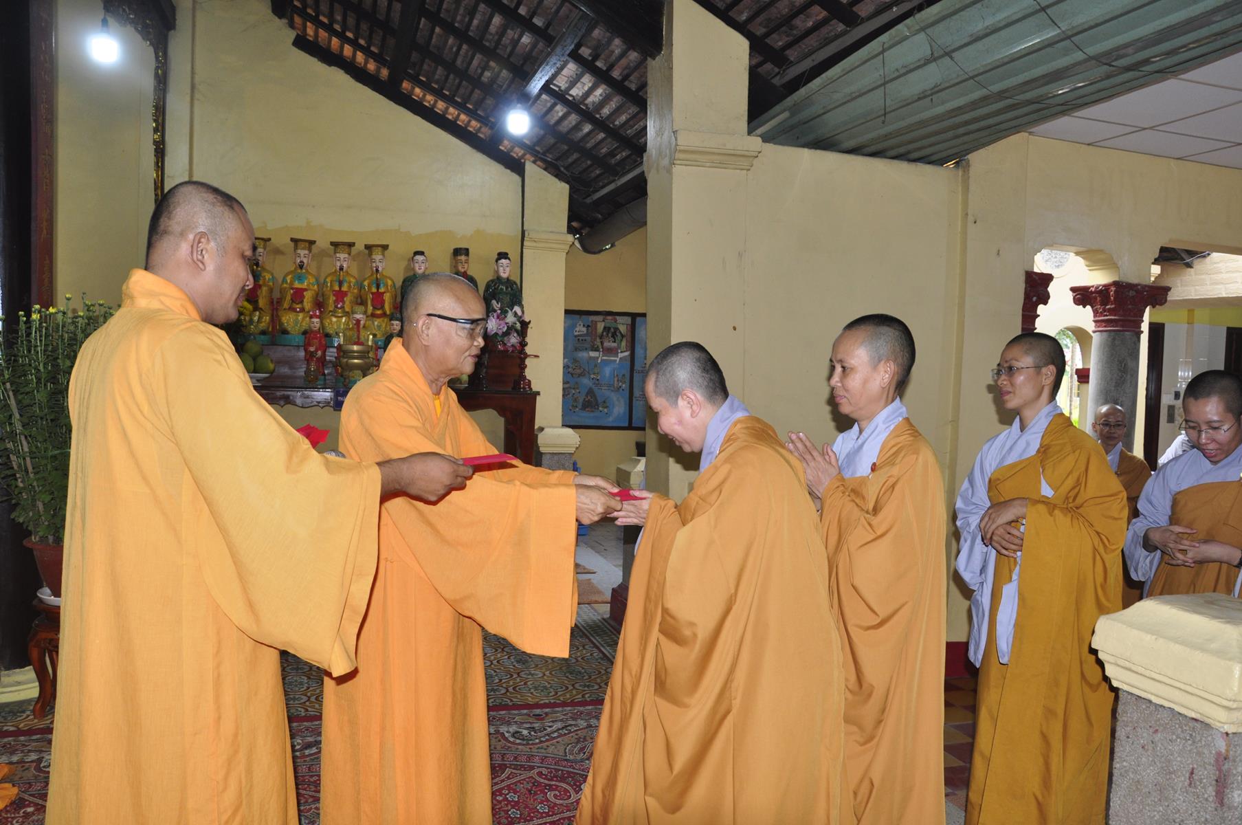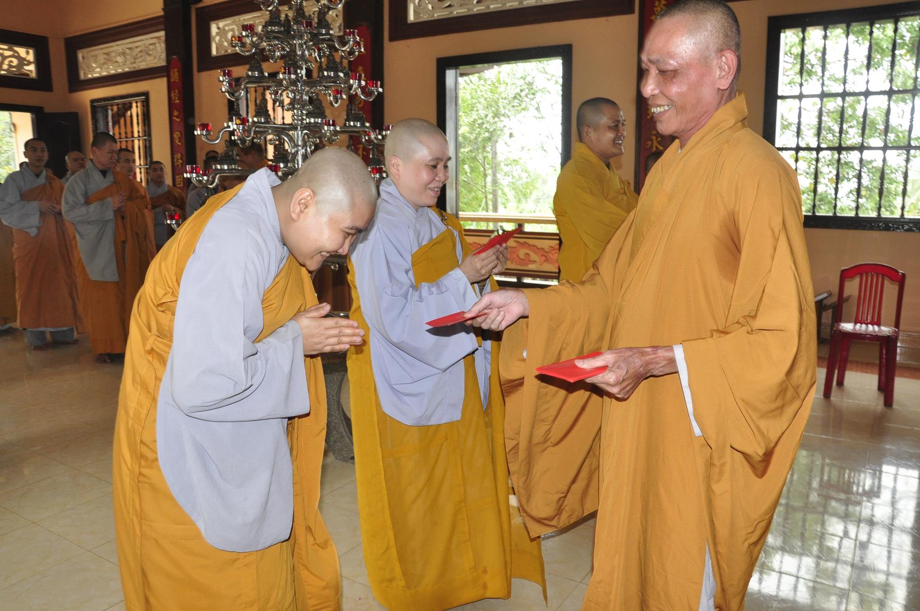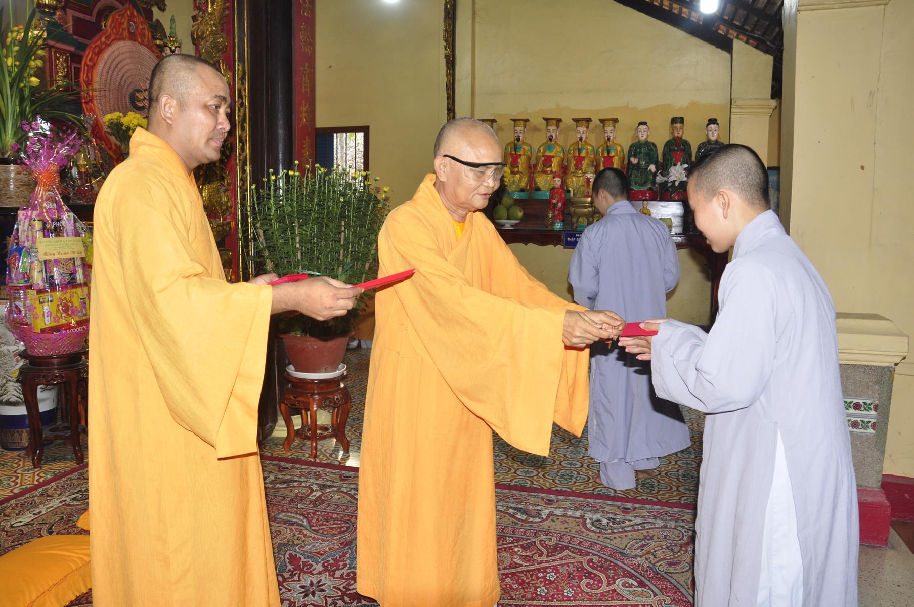 Hòa Thượng Chứng minh Lớp Sơ cấp Phật học tỉnh Long An cũng đã có những lời giáo huấn vô cùng cao quý đến với Ban chủ nhiệm và Tăng Ni sinh Lớp Sơ cấp Phật học tỉnh Long An. Và như một lời gởi gắm tốt đẹp trao đến những người học trò nhỏ của mình quý Hòa Thượng đã lần lượt trao những phong bao màu đỏ của ngày tết gọi là Lì xì Lộc Phật, trong niềm hân hoan, tràn đầy an lạc của tình Thầy trò.