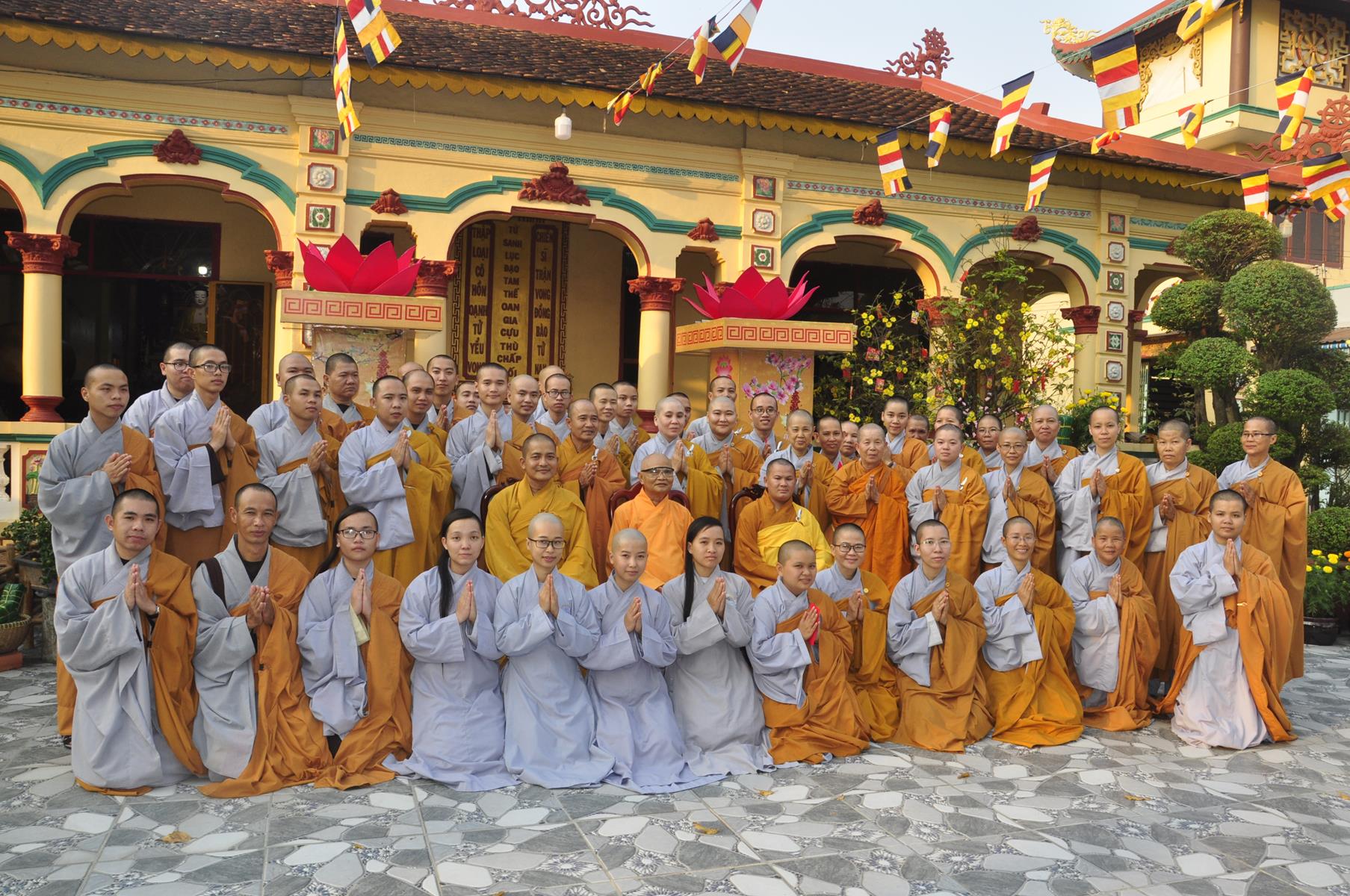 Chiều nay, ngày 29/01/2019 (nhằm ngày 24/12/Mậu Tuất) trên tinh thần tri ân báo ân của người con Phật, hòa chung không khí rộn ràng trên khắp mọi miền đất nước đón chào xuân Kỷ Hợi, ngày tết đoàn viên cổ truyền của dân tộc Việt Nam, Ban Chủ nhiệm cùng Tăng Ni sinh Lớp Sơ cấp Phật Học tỉnh Long An, tại trú xứ chùa Pháp Minh đã trở về Tổ đình Chùa Thiên Khánh thành kính đảnh lễ khánh tuế Hòa Thượng Thích Thiện Huệ: Chứng minh BTSGHPGVN tỉnh Long An, Chứng minh Trường Sơ-Trung cấp Phật Học tỉnh Long An; trở về Tổ đình chùa Thiên Châu thành kính đảnh lễ khánh tuế Hòa Thượng Thích Minh Thiện, Ủy Viên HĐTS GHPGVN, Phó trưởng Ban Hoằng pháp TW, Trưởng ban Trị sự GHPGVN tỉnh Long An, Hiệu trưởng Trường Sơ-Trung cấp Phật học tỉnh Long An; Hòa Thượng Thích Chơn Đạo: Giáo thọ Trưởng Sơ Trung cấp Phật học Long An; Tổ đình chùa Linh Nguyên đảnh lễ khánh tuế Hòa Thượng Thích Thiện Phúc: Ủy viên Ban Trị sự GHPGVN tỉnh Long An, Trưởng ban Trị sự GHPGVN Liên huyện Đức Hòa-Đức Huệ, Chứng minh Lớp Sơ cấp Phật học Long An.
