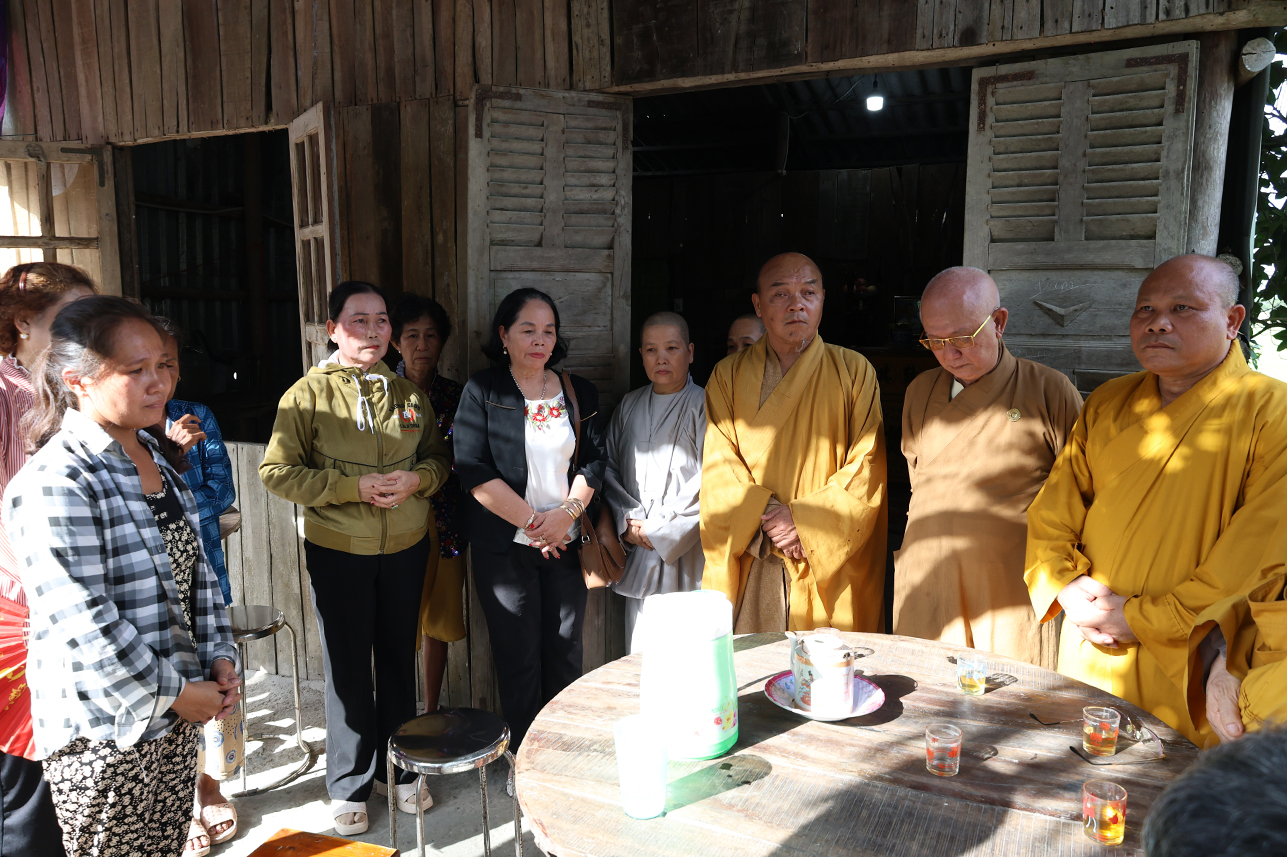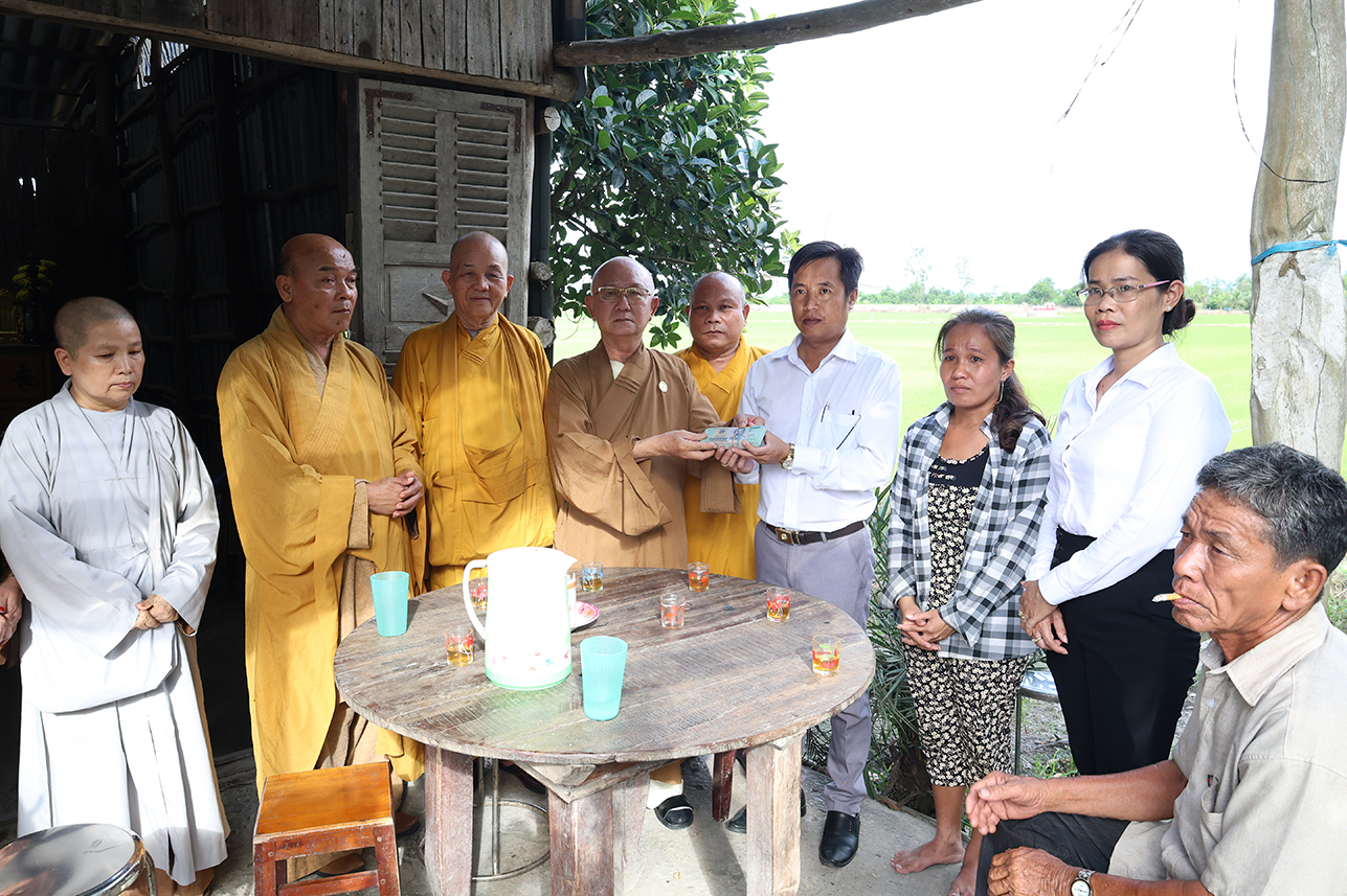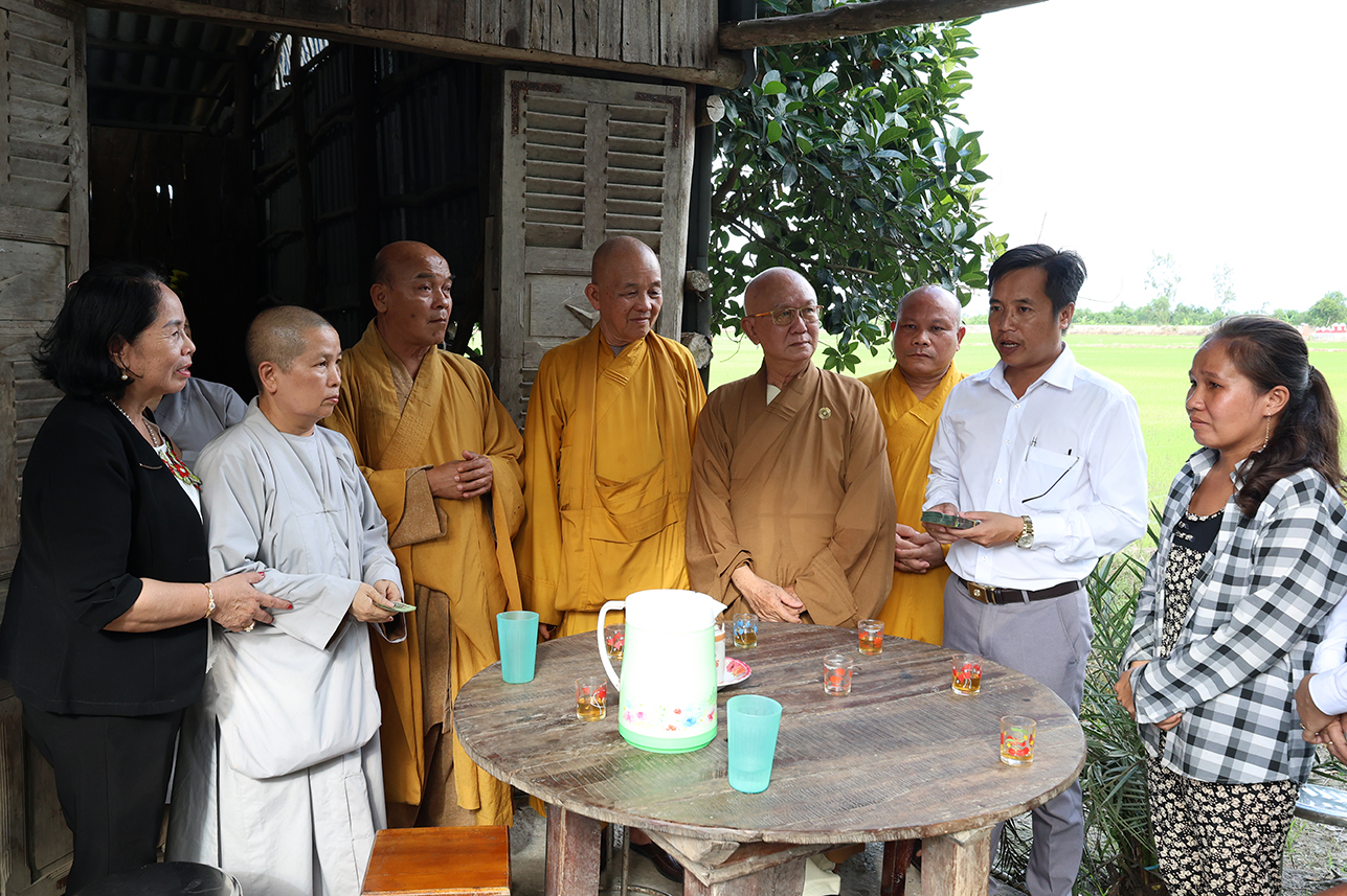 Chiều cùng ngày, Hòa thượng Thích Minh Thiện cùng chính quyền địa phương đến khảo sát xây dựng nhà đại đoàn kết cho gia đình chị Võ Thị Mỹ Trinh tại ấp 3, xã Tân Long.