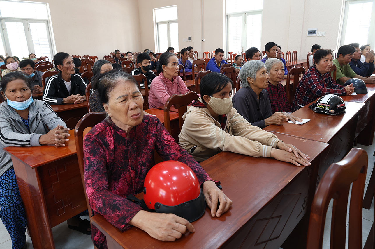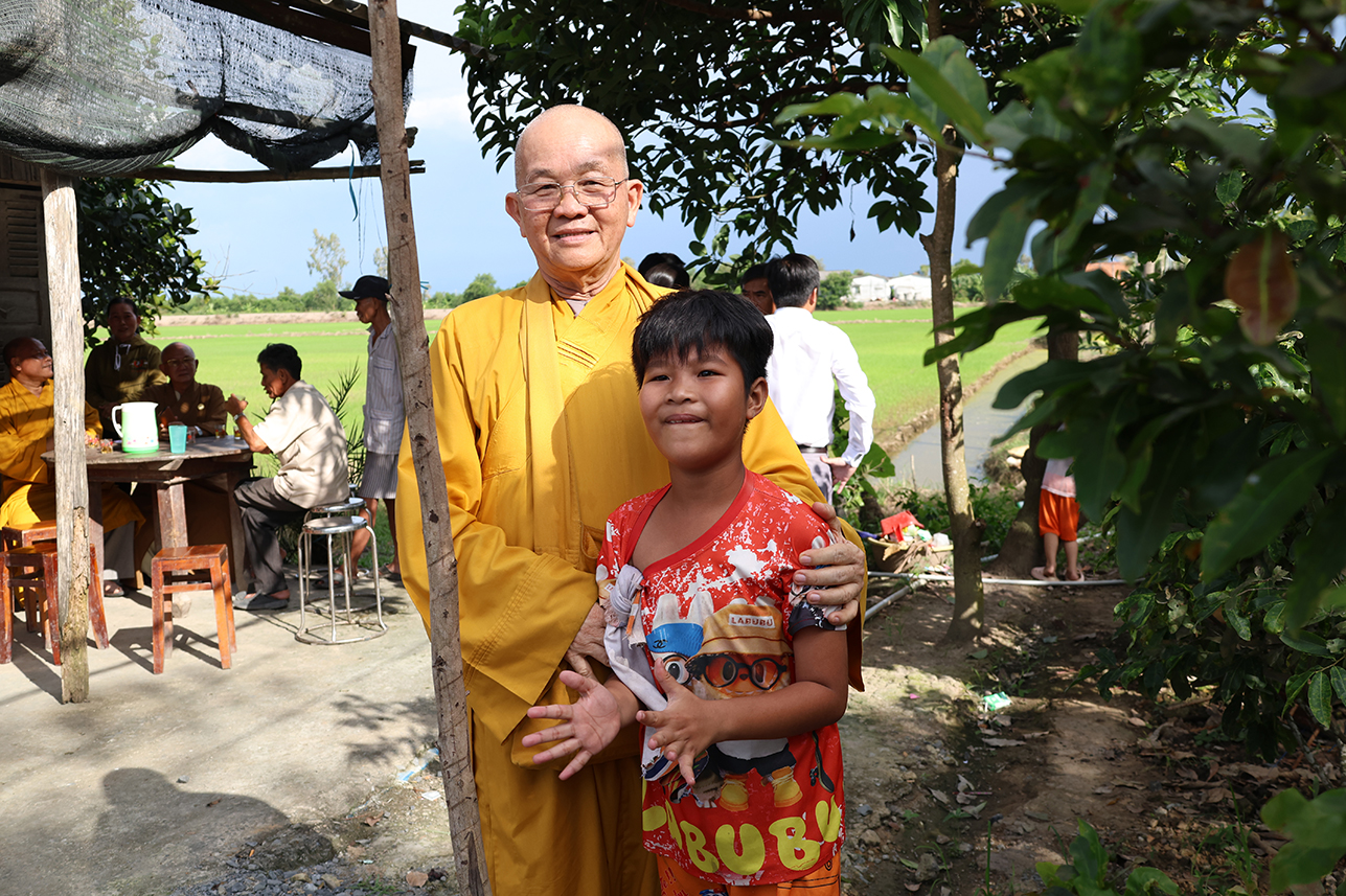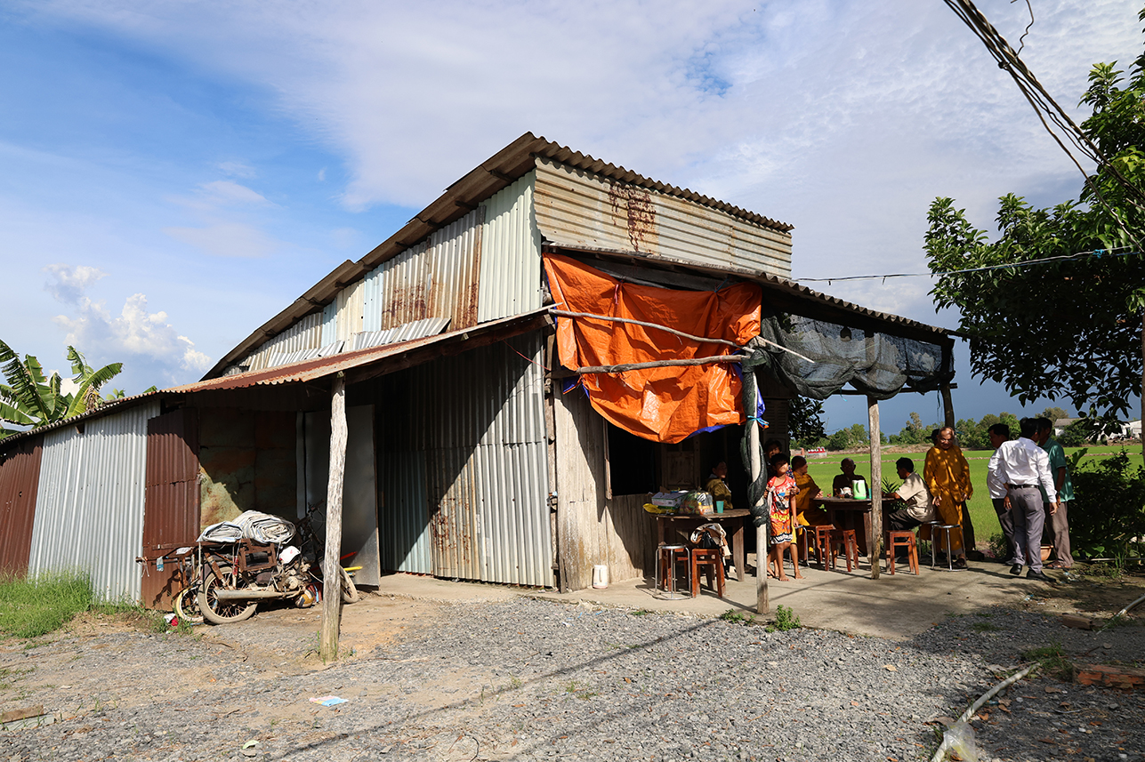 Chiều cùng ngày, Hòa thượng Thích Minh Thiện cùng chính quyền địa phương đến khảo sát xây dựng nhà đại đoàn kết cho gia đình chị Võ Thị Mỹ Trinh tại ấp 3, xã Tân Long.