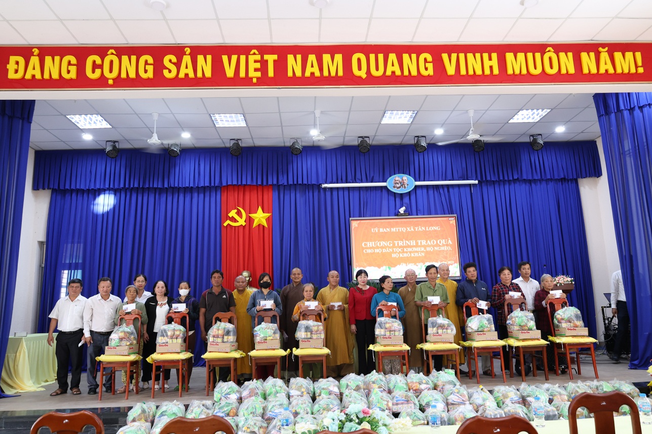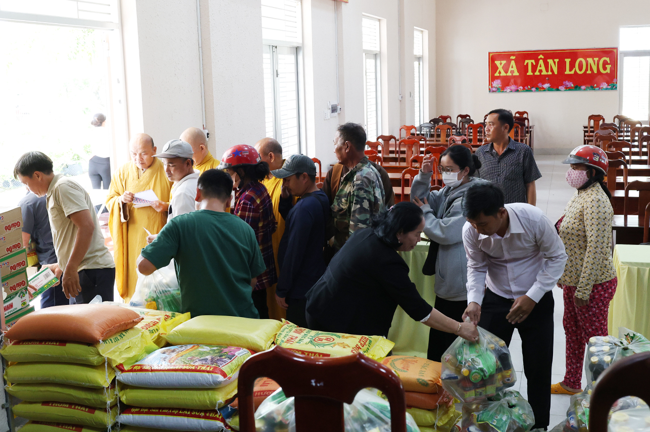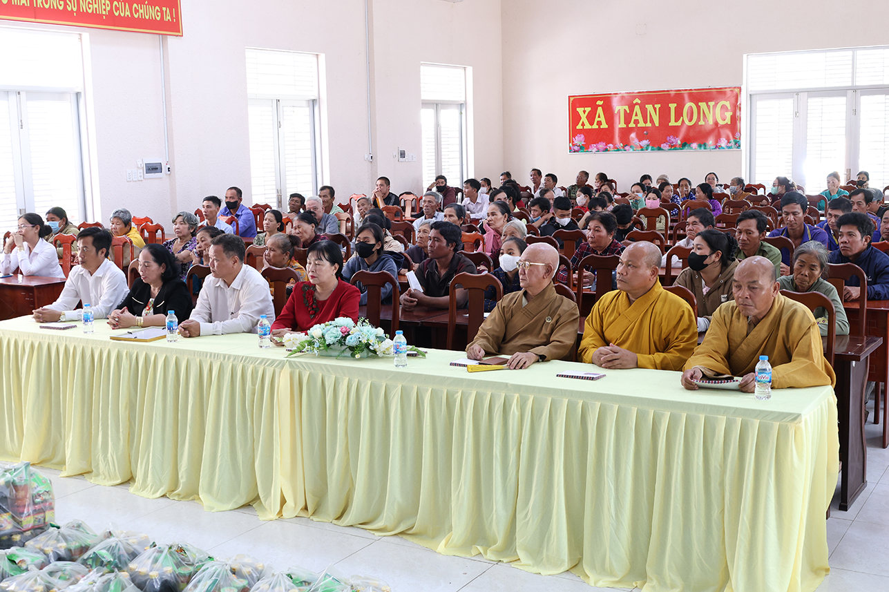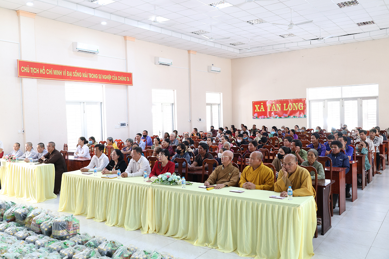 Thông qua sự vận động của Hòa thượng Thích Minh Thiện – Ủy viên Hội đồng trị sự, Phó ban Hoằng pháp Trung ương, Cố vấn Chứng minh Ban trị sự Giáo hội Phật Giáo Việt Nam tỉnh, Ban điều hành hệ thống chùa Núi Bà Tây Ninh trao tặng 100 phần quà hộ dân tộc Khmer, hộ nghèo, hộ khó khăn trên địa bàn xã Tân Long, mỗi phần trị giá 600 ngàn đồng gồm gạo, mì tôm, nhu yếu phẩm và 100 ngàn đồng tiền mặt với tổng kinh phí 60 triệu đồng.