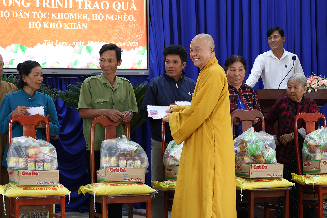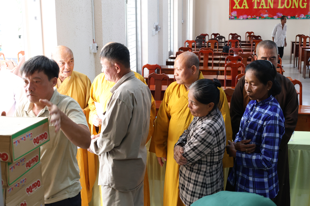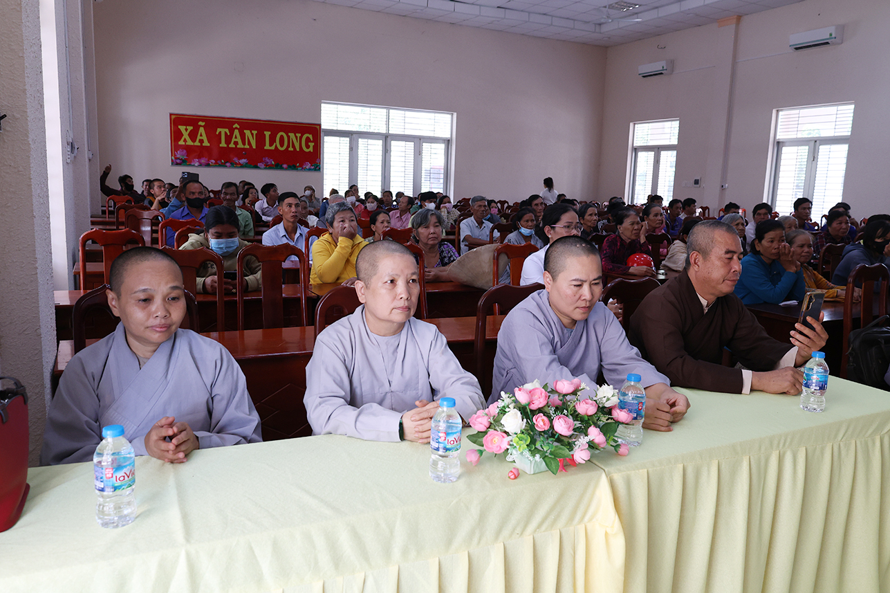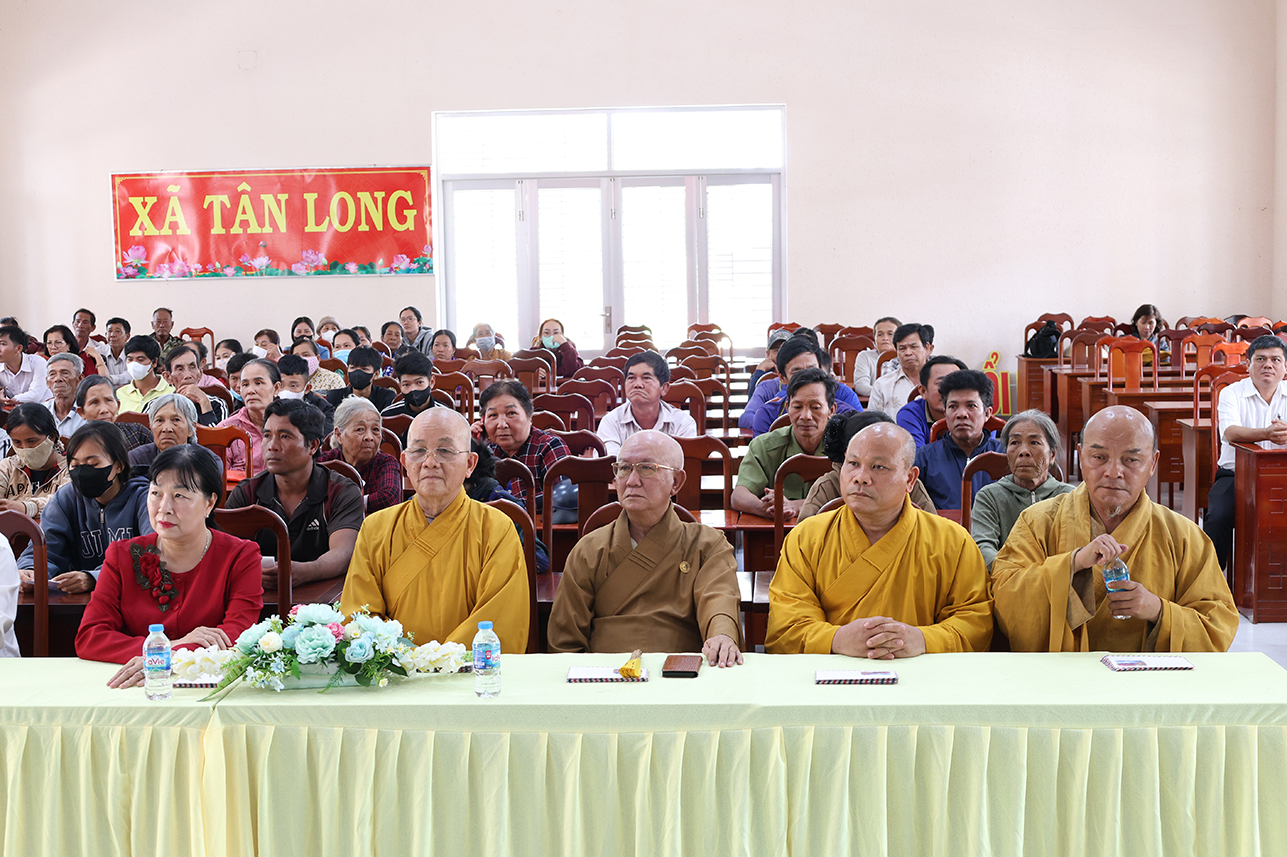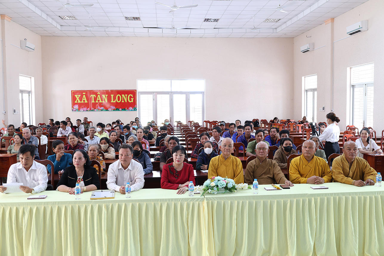 Thông qua sự vận động của Hòa thượng Thích Minh Thiện – Ủy viên Hội đồng trị sự, Phó ban Hoằng pháp Trung ương, Cố vấn Chứng minh Ban trị sự Giáo hội Phật Giáo Việt Nam tỉnh, Ban điều hành hệ thống chùa Núi Bà Tây Ninh trao tặng 100 phần quà hộ dân tộc Khmer, hộ nghèo, hộ khó khăn trên địa bàn xã Tân Long, mỗi phần trị giá 600 ngàn đồng gồm gạo, mì tôm, nhu yếu phẩm và 100 ngàn đồng tiền mặt với tổng kinh phí 60 triệu đồng.