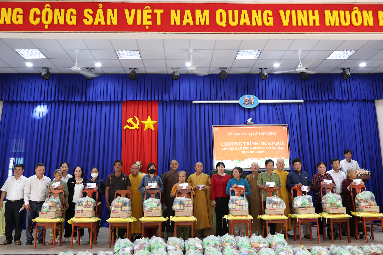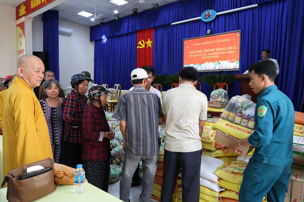 Chiều ngày 15/9/2025, UBND xã Tân Long phối hợp cùng đơn vị tài trợ tổ chức trao tặng quà cho hộ dân tộc Khmer, hộ nghèo, hộ khó khăn trên địa bàn xã.