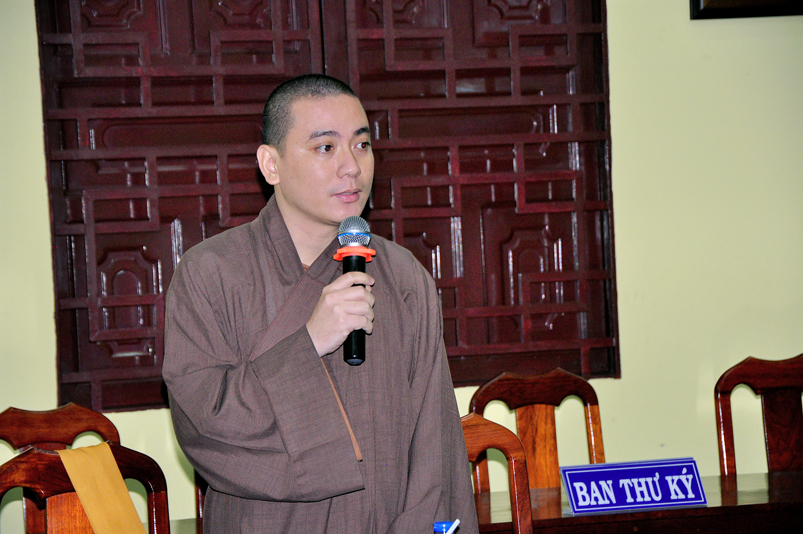 Mở đầu phiên họp ĐĐ. Thích Lệ Ngôn báo cáo sơ lược về những hoạt