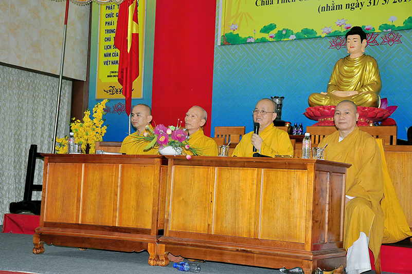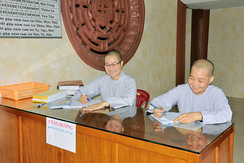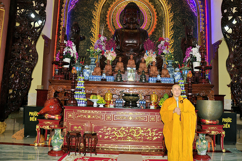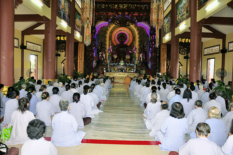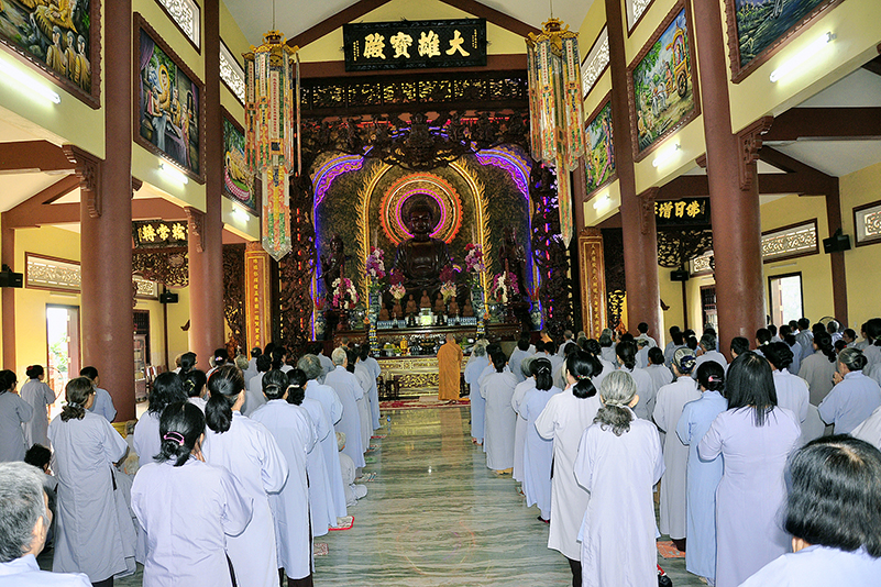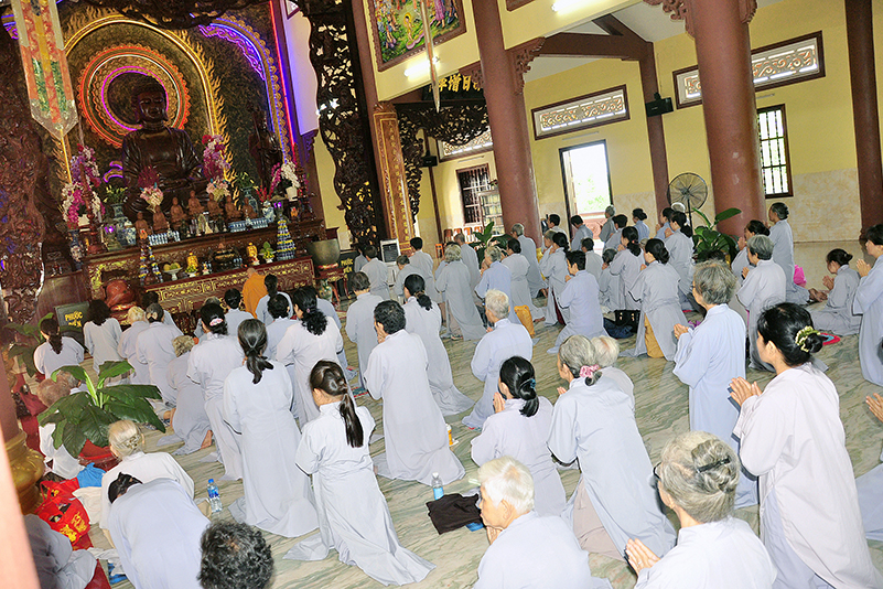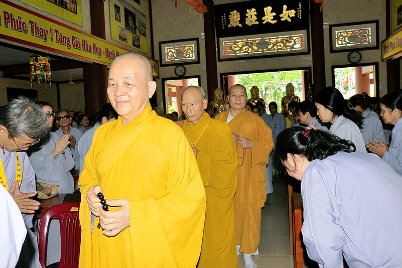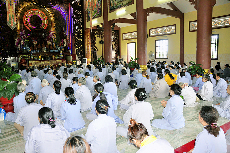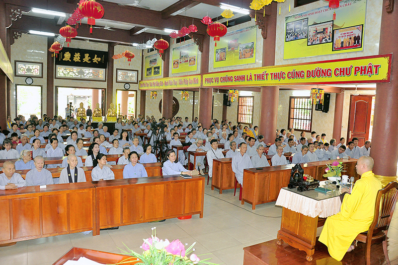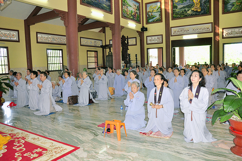 Theo chương trình được ấn định của khóa tu: 7h 30 chư Phật tử vân tập dùng điểm tâm sáng; 8h00 khóa tụng kinh cầu Quốc Thái Dân An; 9h00 nghe thuyết pháp do ĐĐ. Thích An Đạt tổ trưởng Tổ Báo Chí văn phòng II TƯ GHPGVN với chủ đề “ Hướng Về Đại Lễ Vesak Liên Hiệp Quốc” qua nội dung bài giảng Đại Đức giảng giải cho Phật tử hiểu về sự ra đời và những hoạt động của đại lễ Phật đản liên hiệp quốc. Ngoài ra, Đại Đức còn hướng dẫn cho Phật tủ phương pháp tu tập, nhằm thay đổi cuộc sống đưa đến sự an lạc, hạnh phúc. Điều chỉnh tự thân, tu sửa khẩu nghiệp, thay đổi từ thể xác đến tâm hồn cho được thanh tịnh trong sạch.