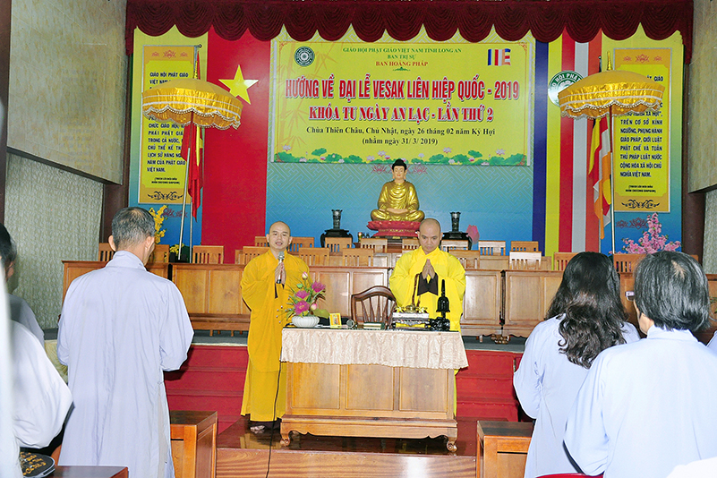 Ngày 26 tháng 2 năm Kỷ Hợi (nhằm ngày 31/3/2019) dưới sự hướng dẫn và chỉ đạo của HT. Thích Minh Thiện trưởng BTS GHPGVN tỉnh Long An, Ban Hoằng Pháp tỉnh Long An tổ chức khóa cộng tu “ Ngày An Lạc” cho Phật tử các đạo tràng trong tỉnh lần thứ 2 tại chùa Thiên Châu, số 101, đường Huỳnh Văn Nhứt, phường 3, Tp. Tân An, tỉnh Long An.