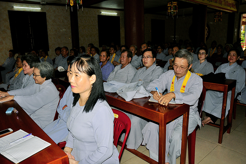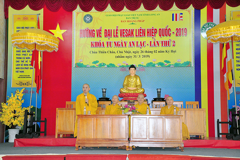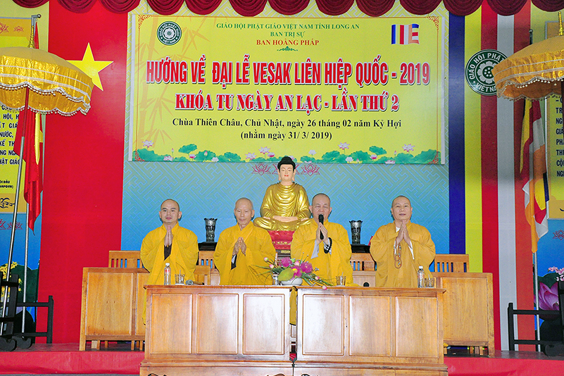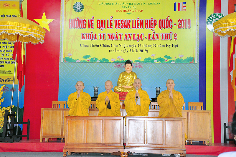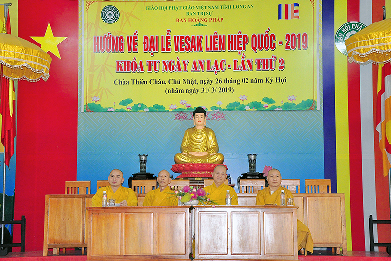 Chứng minh cho khóa tu có HT. Thích Huệ Hồng CM BTS GHPGVN tỉnh Long An; TH. Thích Minh Thiện Ủy viên HĐTS, Phó Trưởng ban Hoằng pháp TW; Trưởng Ban Trị sự GHPGVN tỉnh Long An; Cố vấn khóa tu; TT. Thích Đức Hoàng phó BTS GHPGVN tỉnh Long An; ĐĐ. Thích Lệ Ngôn trưởng Ban Hoằng Pháp tỉnh Long An; ĐĐ. Thích An Khang phó Ban Hoằng Pháp tỉnh Long An; ĐĐ. Thích Huệ Thông trưởng Ban TT-TTPG tỉnh Long An; cùng chư tôn đức Tăng Ni thành viên Ban Hoằng Pháp, Tăng Ni trụ trì các tự viện đồng hướng dẫn đạo tràng và khoản 300 Phật tử về tham dự.