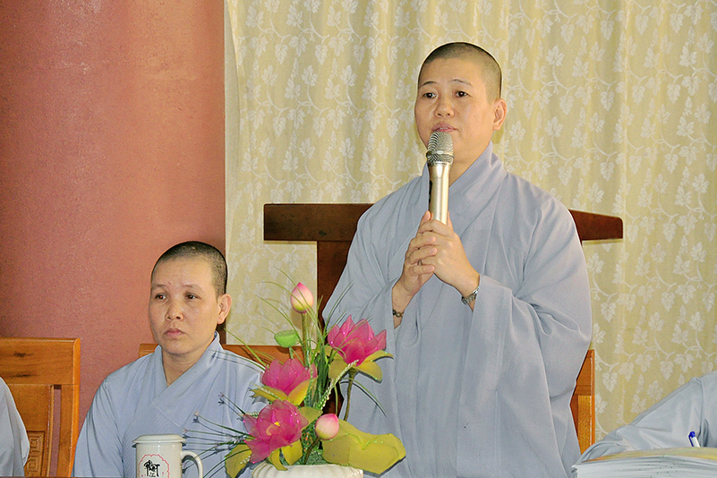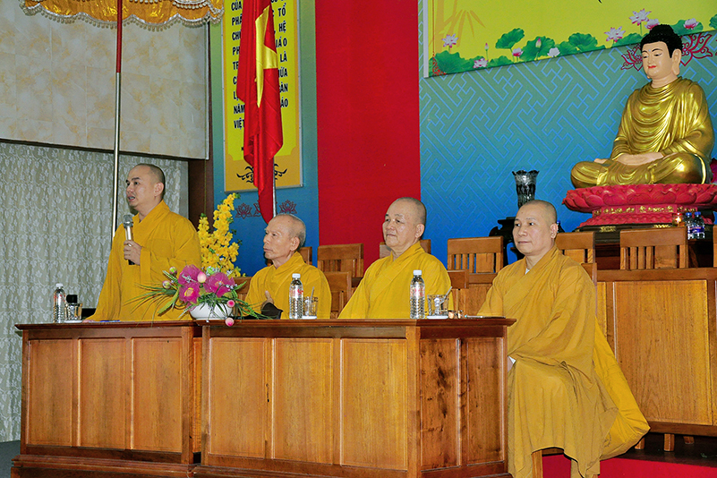 Trước khi kết thúc buổi tọa đàm HT. Thích Minh Thiện đúc kết lại nội dung của buổi tọa đàm và tinh thần của khóa tu. Qua đây, Hòa thượng khen gợi và khuyến tấn tinh thần tu học của quý Phật tử, Hòa thượng vẫn không quên định hướng tư tưởng cho Phật tử trong lúc làng sóng ngược chiều của thông tinh truyền thông mạng xã hội, có phần làm ảnh hưởng đến uy danh của Phật giáo như hiện nay. Hòa Thượng dạy: bất kỳ là tăng hay tục, nam hay nữ đều nên lấy sự tu tập Giới Định Tuệ làm gốc, tin vào Phật pháp, làm những điều lợi mình, lợi người, lợi chúng sanh, không làm những điều hại mình, hại người và hại chúng sanh, đó là cái gốc cũng là pháp môn tu tập của tự thân………..” lời dạy của Ngài như những viên “ định tâm hoàn” được trao tay cho từng Phật tử uống vào đưa đến tác dụng thân an tâm lạc. Bên cạnh đó, nhằm tạo điều kiện cho những Phật tử khó khăn, vùng sâu vùng xa, ít có điều kiện tu học Phật pháp được về tham dự khóa tu hàng tháng, Hòa thượng đã có những phần quà khuyến khích và hứa sẽ đài thọ tất cả những phương tiện đi lại. Chỉ bấy nhiêu thôi, đủ nói lên được tấm lòng thương tưởng của Hòa thượng đối với hàng Tăng Ni cũng như Phật tử.
