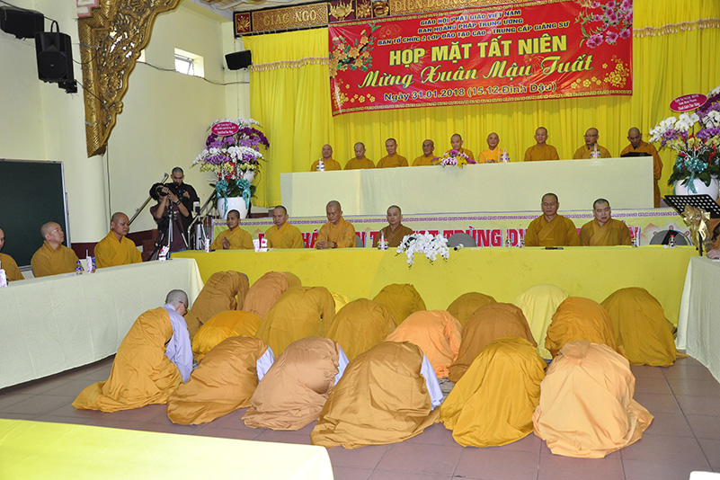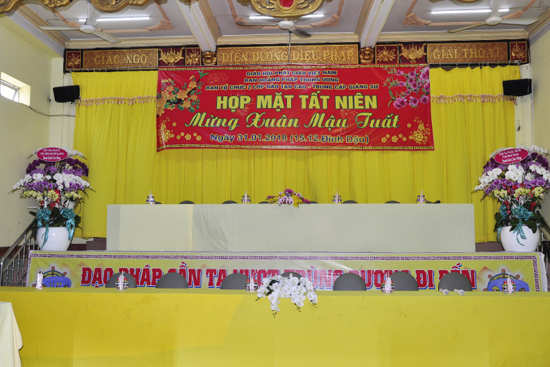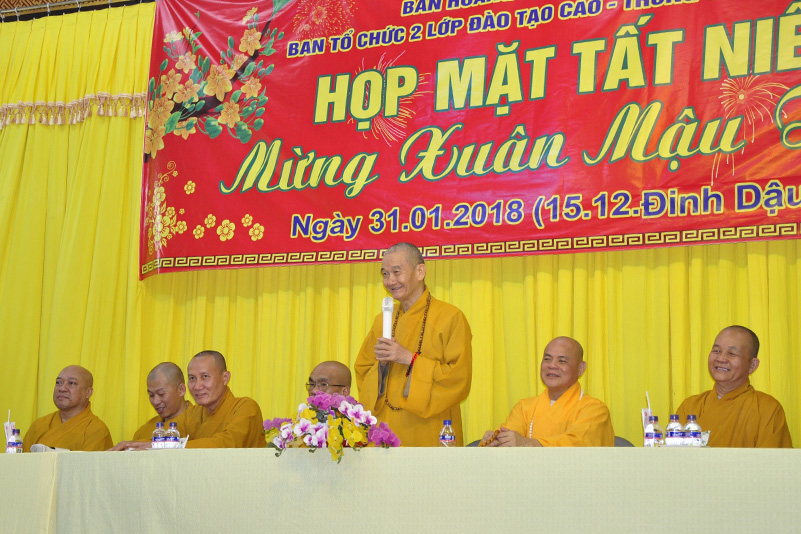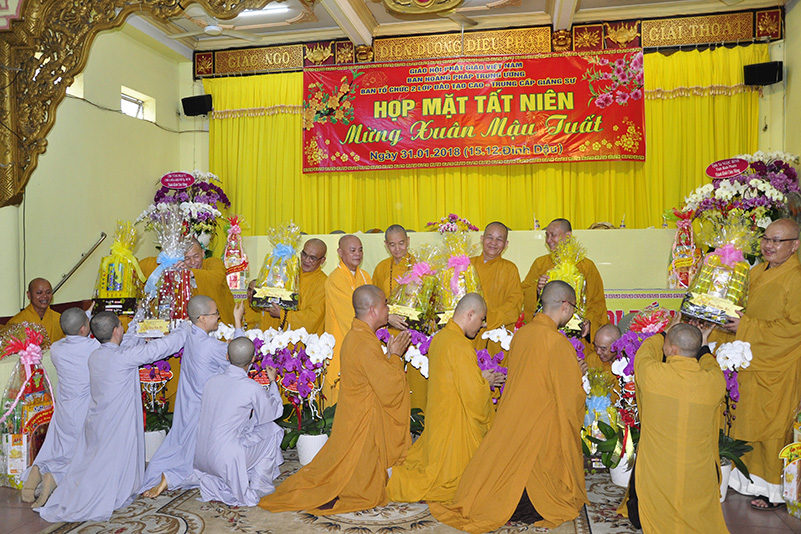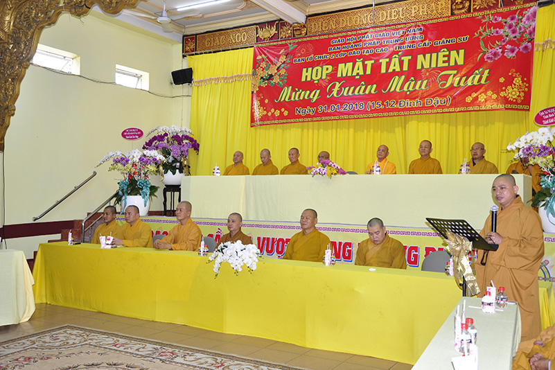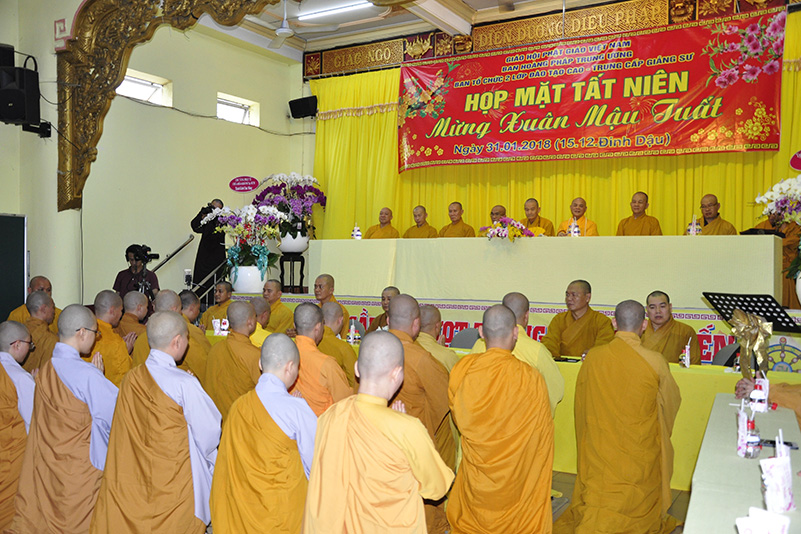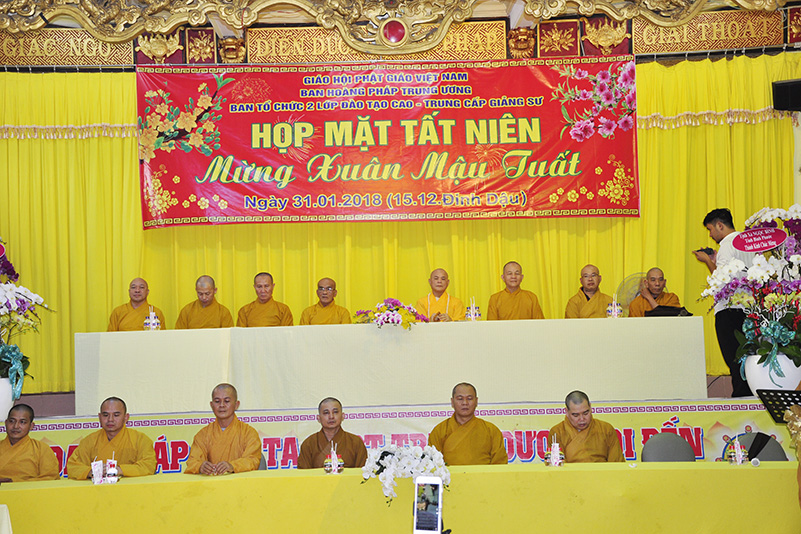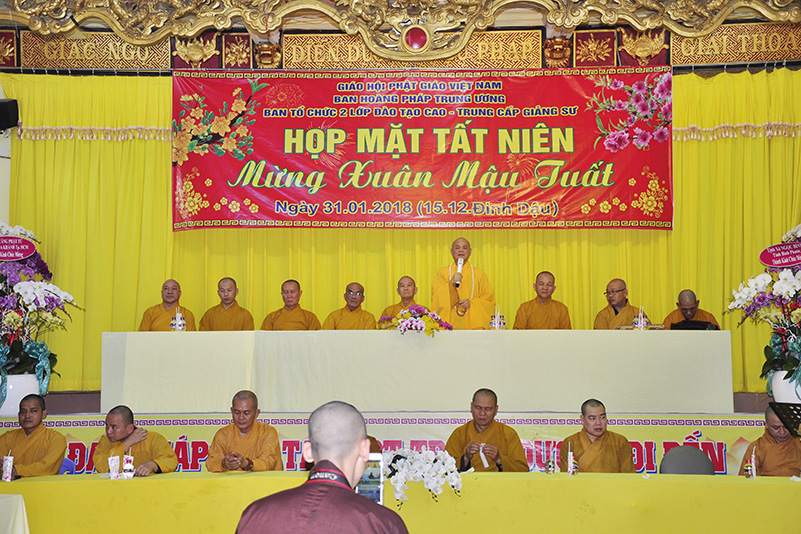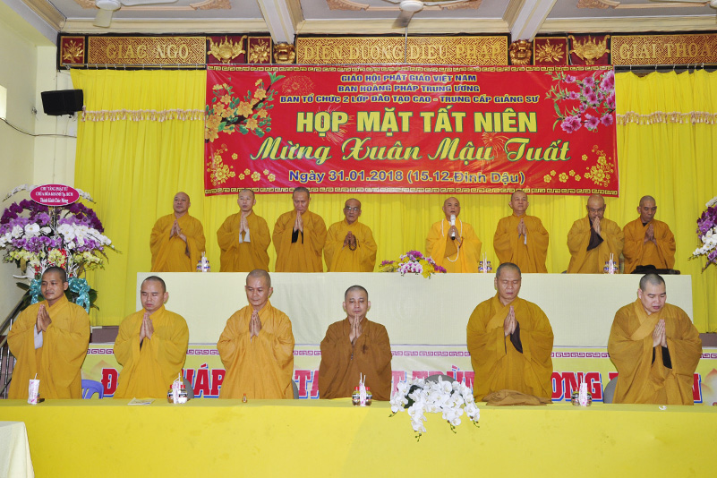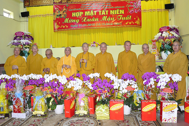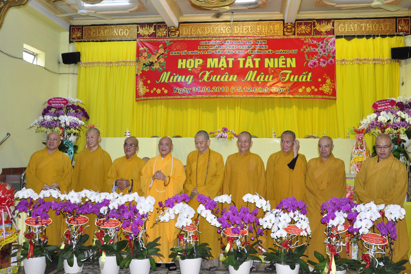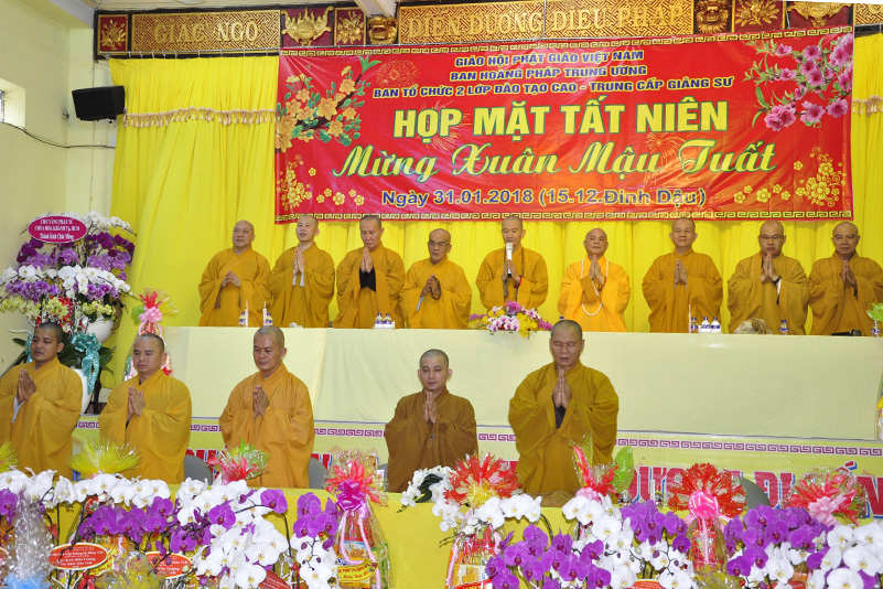 Chiều nay, ngày 31/01/2018(15/12/ Ất Mùi) tại chùa Hoà Khánh, quận Bình Thạnh, TP.HCM cơ sở đào tạo 2 lớp Cao – Trung cấp giảng sư, trọng thể tổ chức buổi hợp mặt tất niên, mừng xuân Mậu tuất