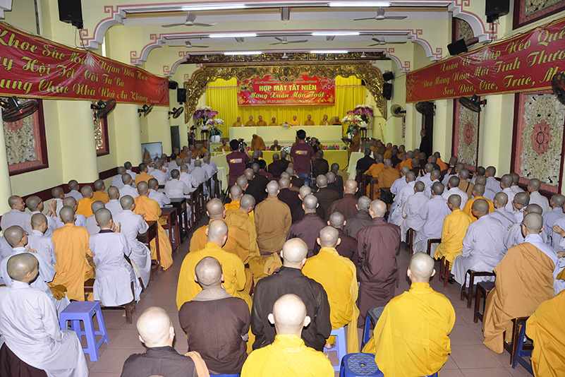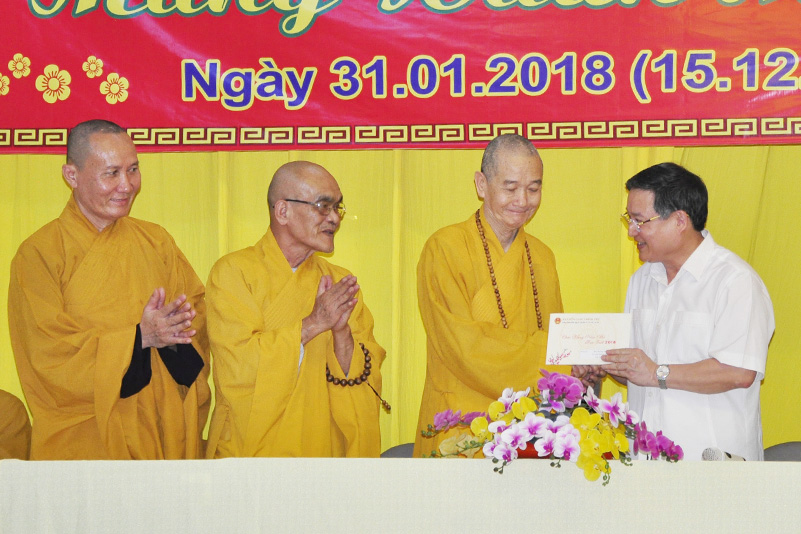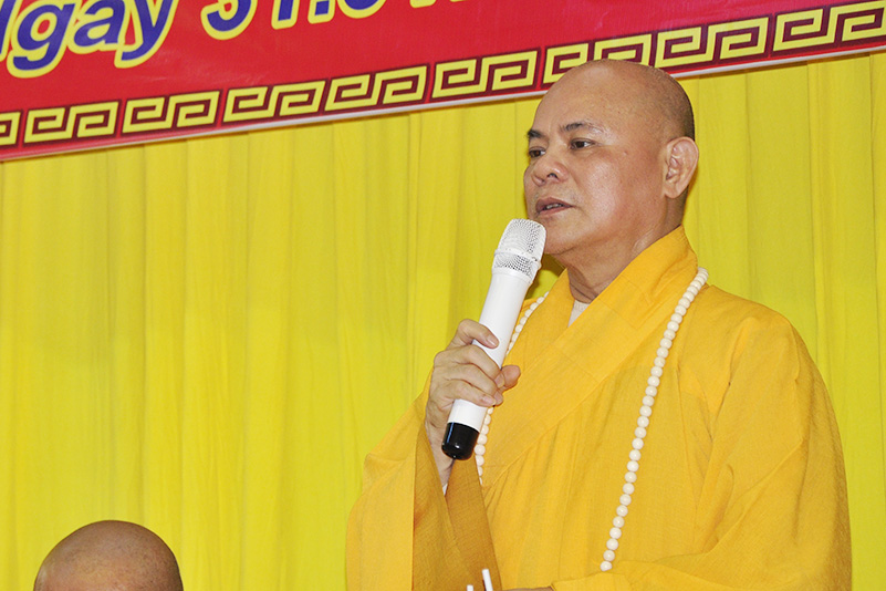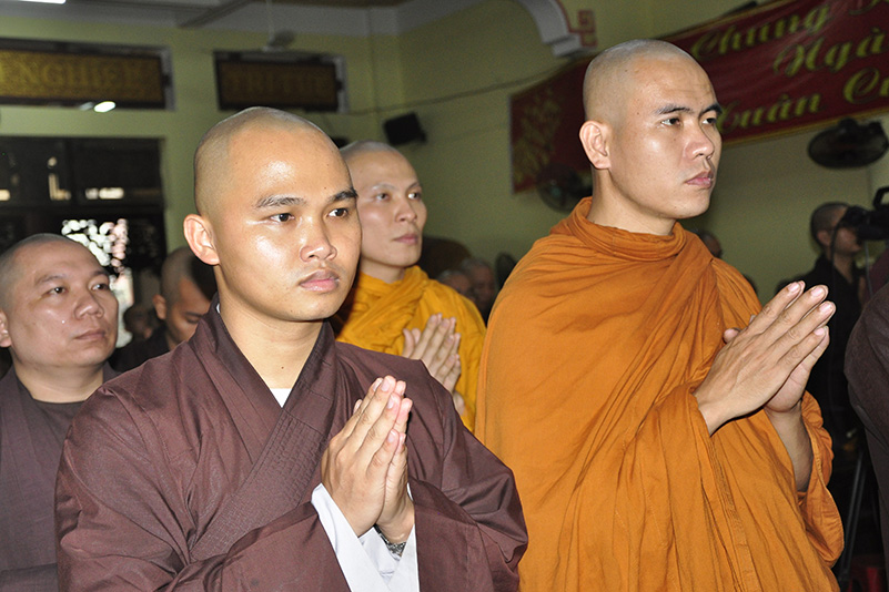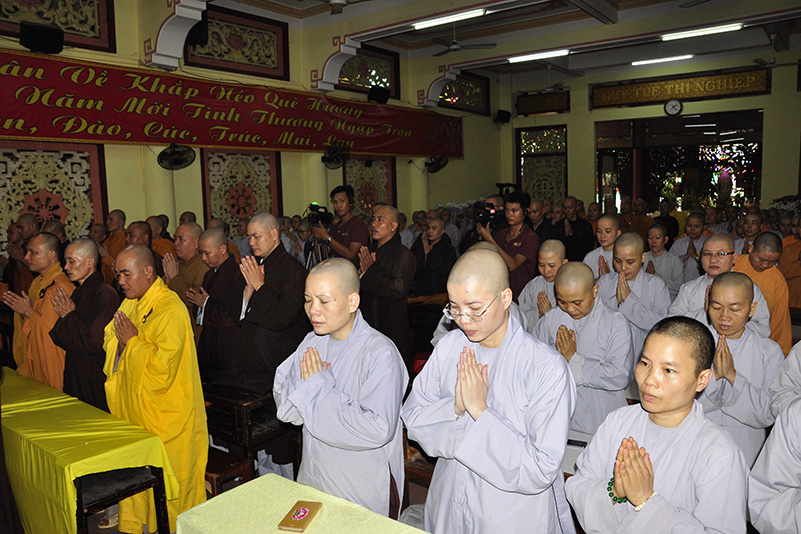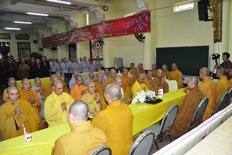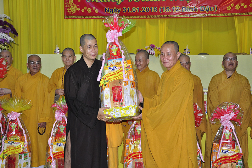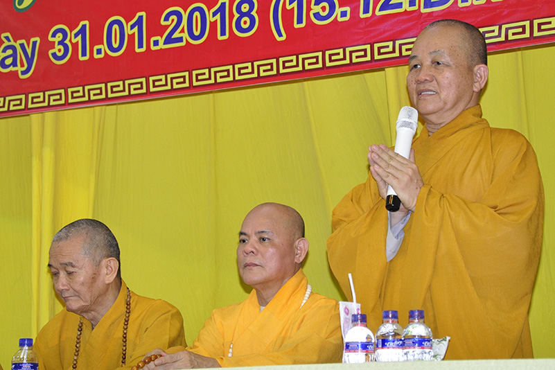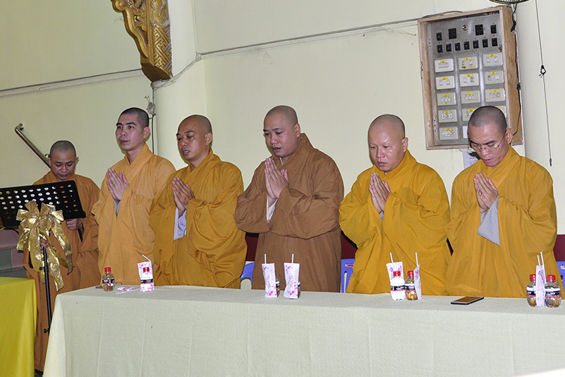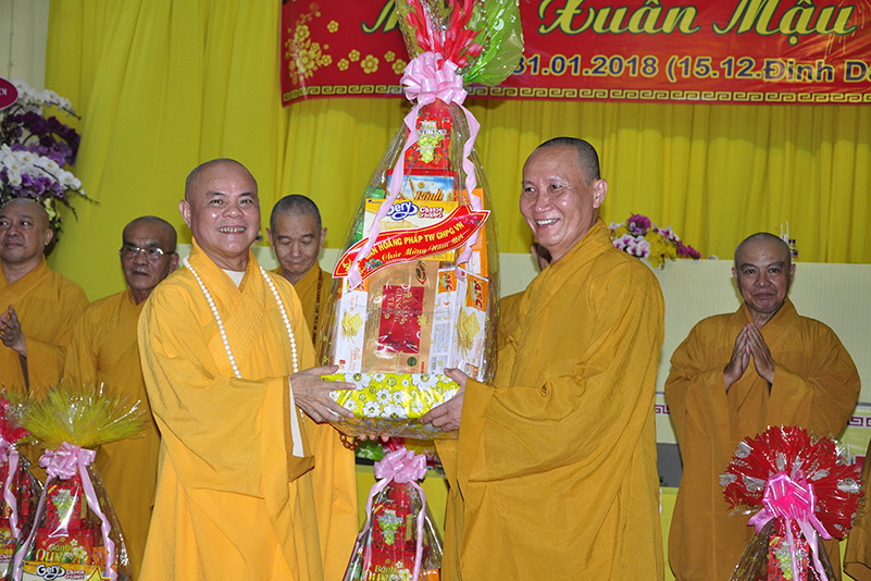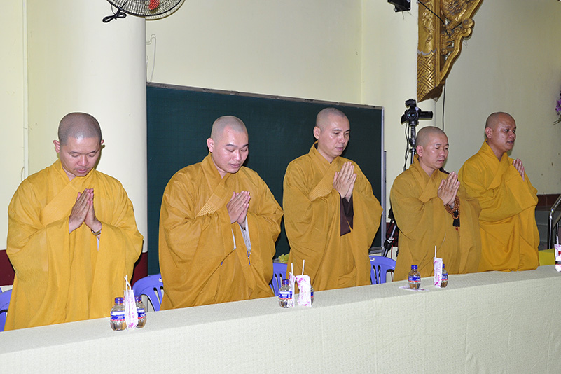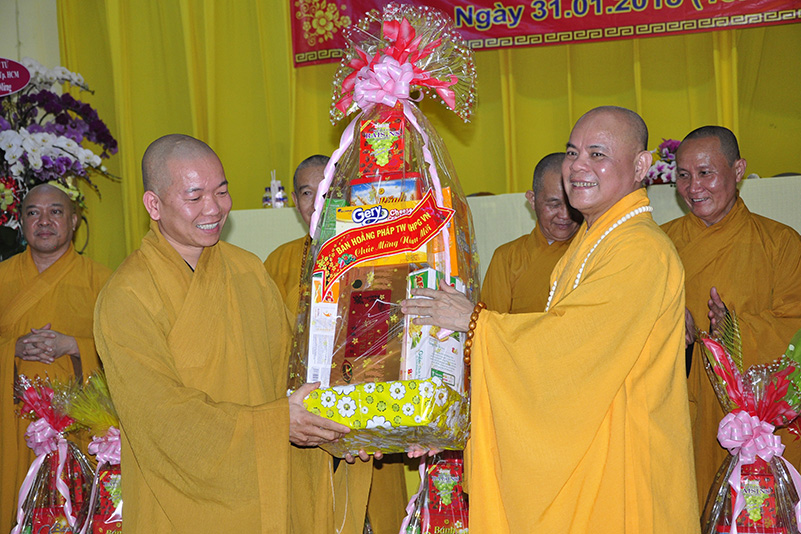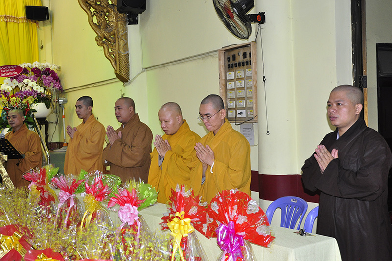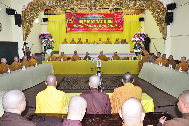 Thay mặt Tăng – Ni giảng sinh ĐĐ. Thích Huệ Tâm cùng một số vị cán bộ 2 lớp giảng sư đối trước chư tôn đức lãnh đạo trong Ban hoằng pháp, 2 lớp đào tạo Cao – Trung cấp giảng sư dâng lên lời tác bạch khánh tuế chúc xuân.