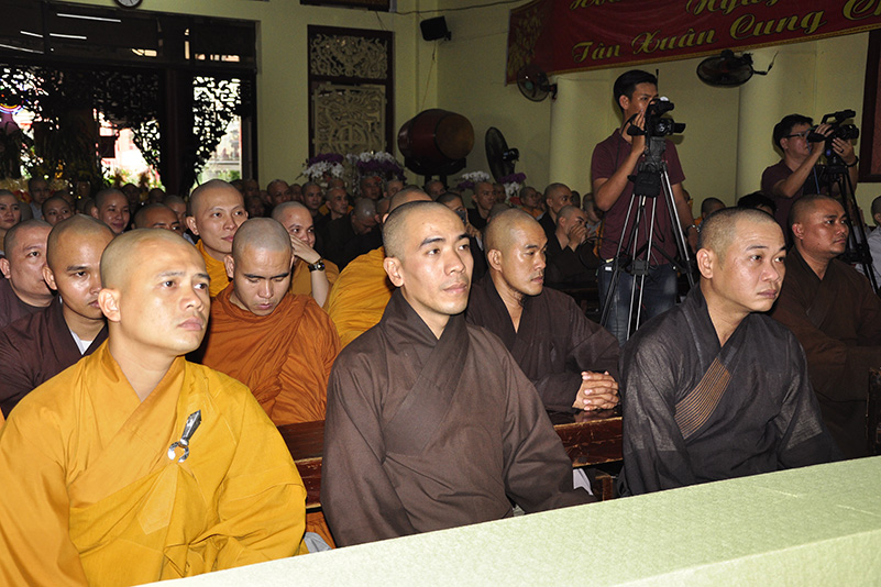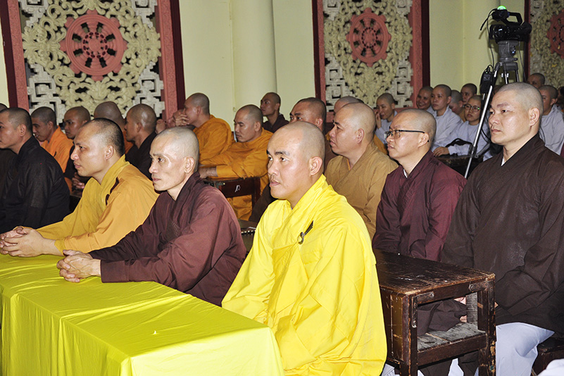 Chứng minh và tham dự có: HT. Thích Thanh Hùng – UVTT HĐTS GHPG VN; Trưởng ban Hướng dẫn gia đình Phật tử TW, HT. Thích Tấn Đạt – UV Ban thư ký Ban thường trực HĐTS GHPG VN, Phó Văn phòng II, Phó trưởng ban TT Ban hoằng Pháp TW, Phó trưởng ban kiêm chánh thư ký ban Từ thiện xã hội TW, Phó trưởng ban TT lớp đào tạo Cao – Trung cấp giảng sư, HT. Thích Minh Thiện – UV HĐTS GHPG VN; Phó ban Hoằng Pháp TW, Trưởng ban TS GHPG VN tỉnh Long An; Hiệu trưởng trường Trung cấp Phật học tỉnh Long An, HT. Thích Giác Liêm – UVTT HĐTS GHPG VN, Phó Ban TT ban Nghi lễ TW, cùng chư tôn đức trong Ban giảng huấn, giáo thọ, giám thị 2 lớp Cao – Trung cấp giảng sư và hơn 200 Tăng- Ni sinh đồng tham dự. Và đặc biệt có sự tham dự của ông Bùi Hữu Dược – Vụ trưởng vụ Phật giáo Ban Tôn Giáo Chính Phủ.