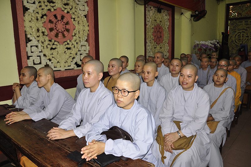 Sau giây phút cao đẹp và ý nghĩa của Tăng – Ni giảng sinh dâng lên chư tôn đức giáo phẩm là lời sách tấn của Hoà thượng Thích Minh Thiện. Hoà thượng chia sẻ, biển Phật pháp mênh mông, vô lượng pháp môn tu. Nhưng anh em Tăng -Ni trẻ hãy luôn nhớ đến và giữ gìn tâm niệm lúc ban sơ phủi mái tóc xanh ” Huỷ hình thủ khí tiết, cát ái từ sở thân, xuất gia hoằng thánh đạo, thệ độ nhất thiết nhân”. Với kinh nghiệm hơn 40 năm tu học và phụng sự hoà thượng chia sẻ muốn làm tròn tâm nguyện, lý tưởng phụng sự chúng sanh đem ánh sáng Phật pháp vào đời anh em hãy