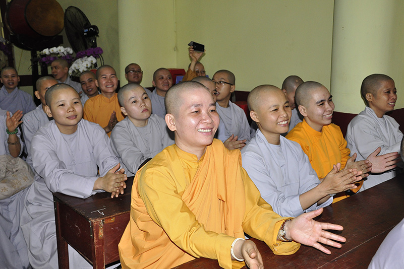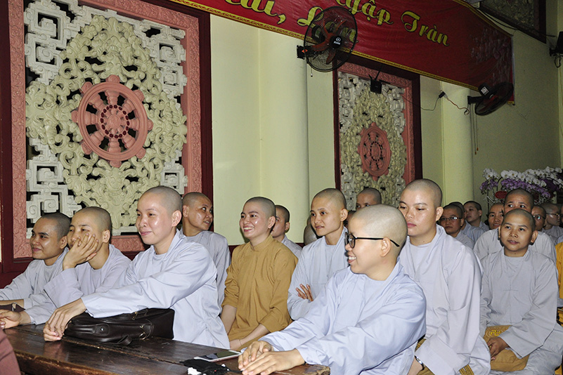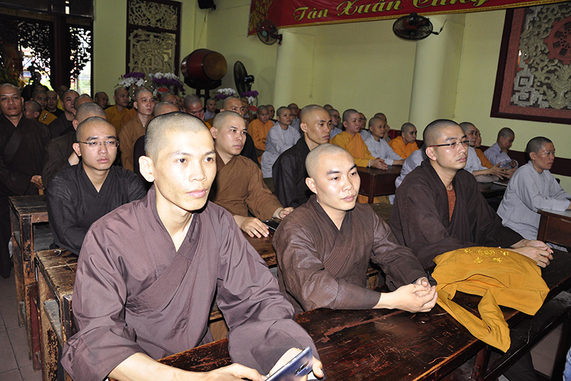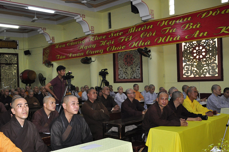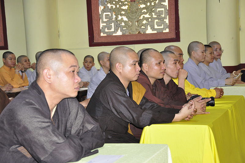Tiếp theo lời sách tấn của hoà thượng là TT. Thích Minh Nhẫn. TT cũng nhắn nhủ huynh đệ giảng sinh rằng trong xã hội hiện đại, chúng ta phải biết vận dụng công nghệ thông tin truyền thông, đặc biệt là công nghệ 4.0 trong công cuộc hoằng pháp. Phải đặc biệt chú ý trong vấn đề hình ảnh của chúng ta đăng trên các trang mạng xã hội có đáp ứng được điểm thứ 8 trong chương trình hoạt động Phật sự đề ra của đại hội Phật giáo toàn quốc thành công tốt đẹp vừa qua là đẩy mạnh truyền thông Phật giáo như một kênh hoằng pháp. Không nên đăng tải những hình ảnh những lúc vui chơi, ăn uống không phục vụ trong việc hoằng pháp. Để cho một số cá nhân, tổ chức bất hảo lợi dụng xuyên tạc, bôi nhoạ hình ảnh đẹp của Phật giáo.