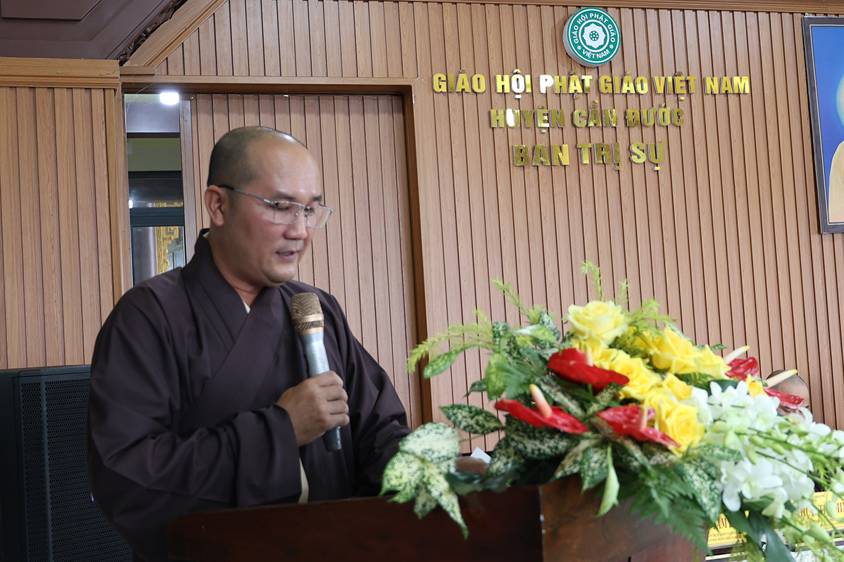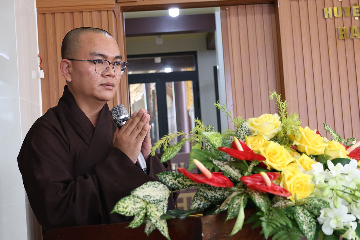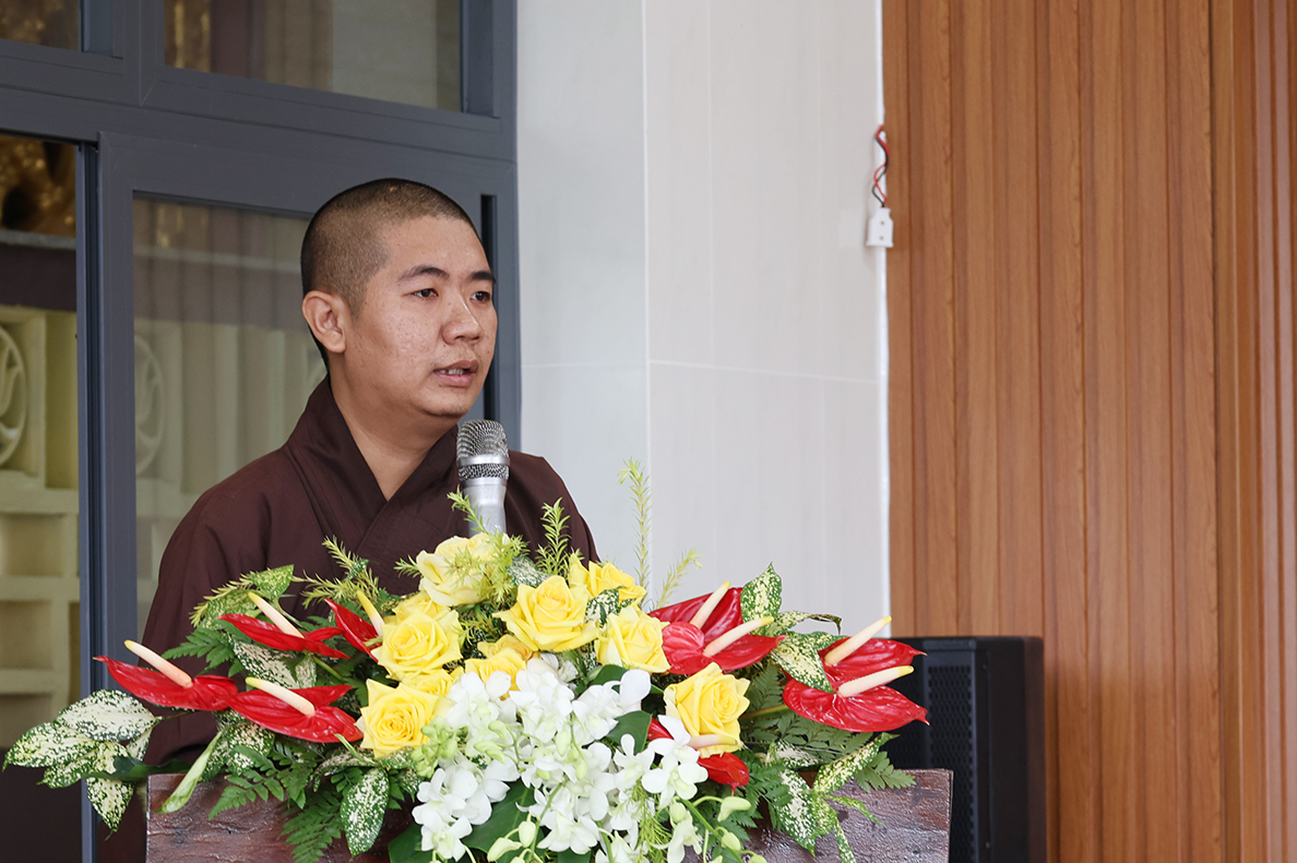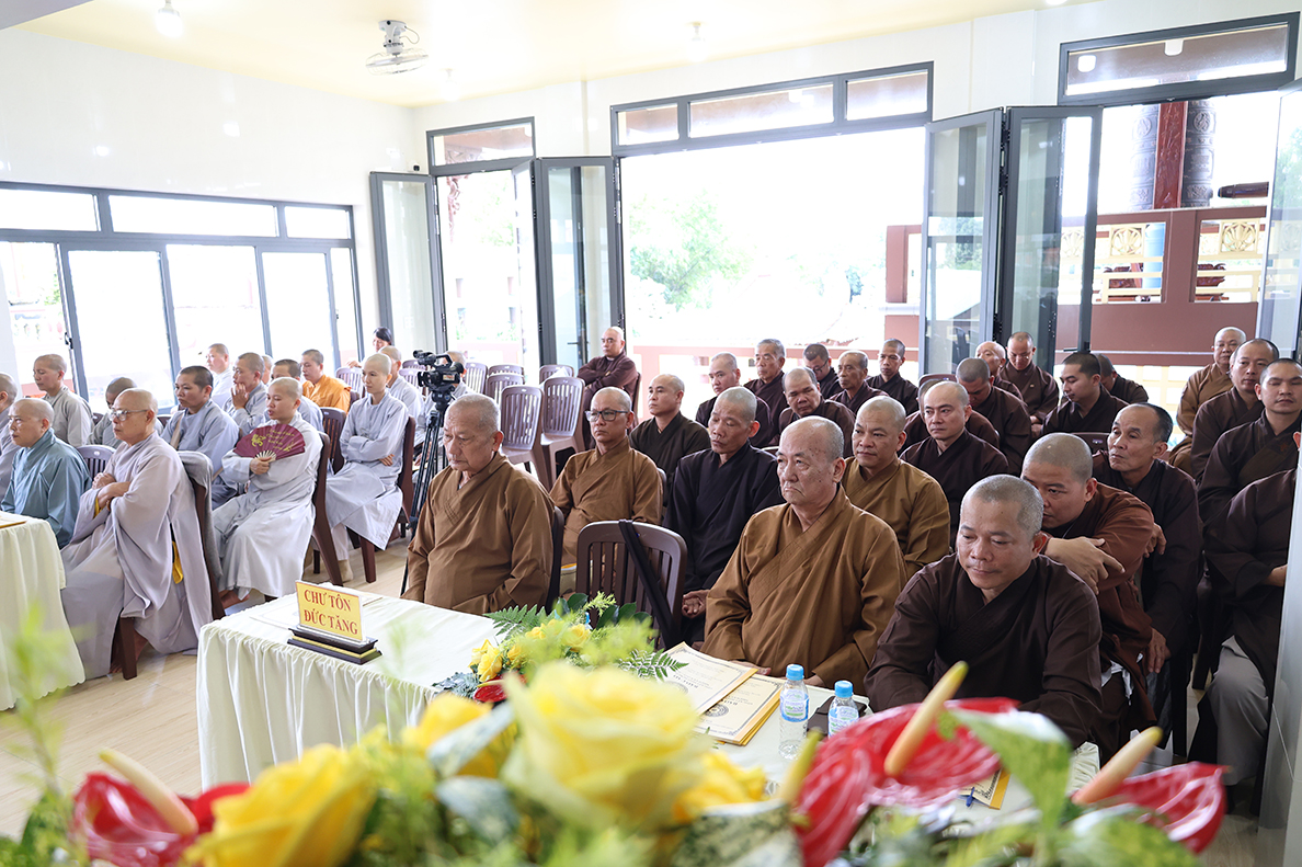 Chứng minh buổi lễ, HT. Thích Minh Thiện – Trưởng BTS GHPGVN tỉnh Long An đã ban lời đạo từ, khơi gợi nguồn cội tâm linh phát triển Phật giáo đồng hành cùng dân tộc, đề cao giá trị của việc hoằng pháp, giáo dục Tăng Ni trẻ học tập, tu học, kế nghiệp thầy tổ làm xương minh Phật giáo, xây dựng củng cố tổ chức Giáo hội ổn định, luôn đúng với tinh thần dân tộc, phát luật Nhà nước, hiến chương GHPGVN.