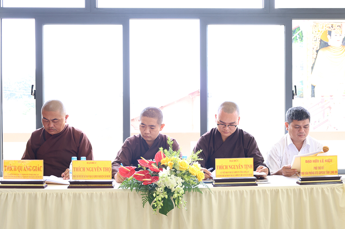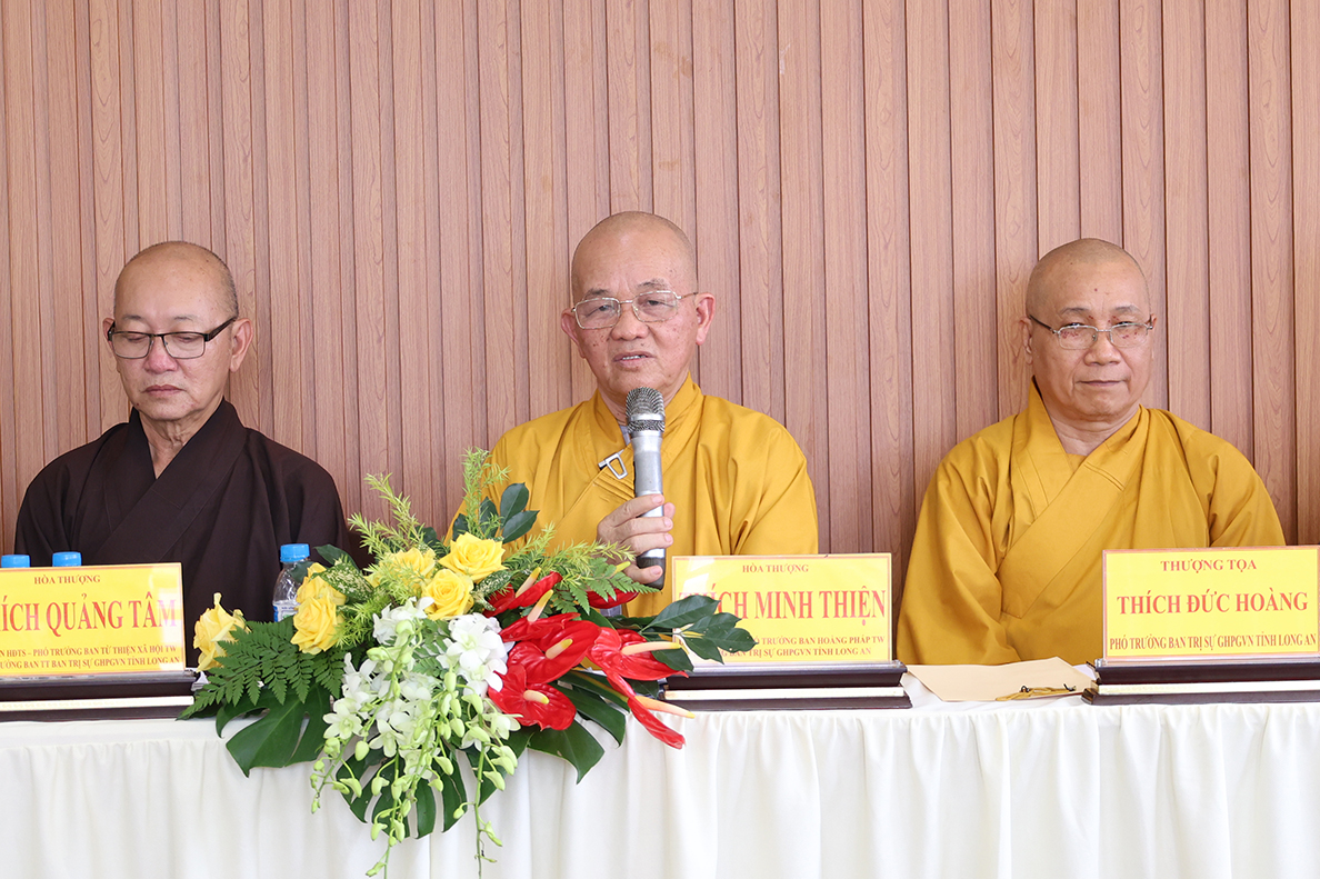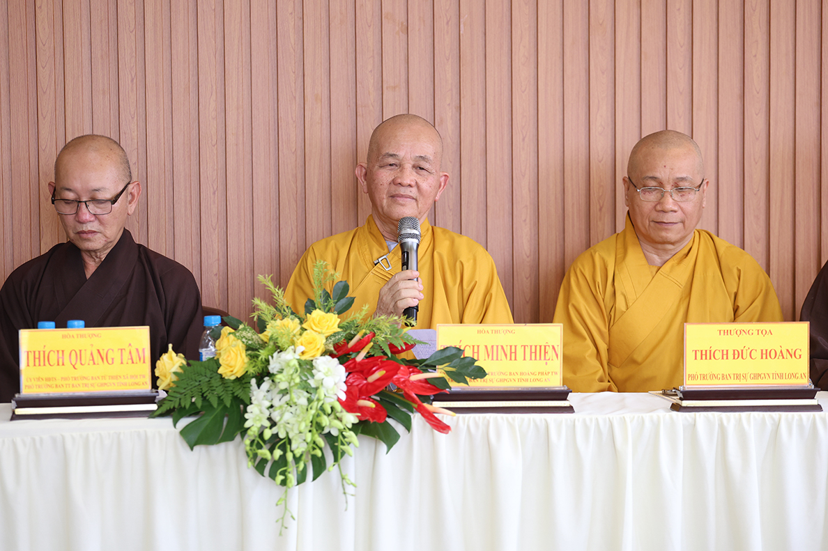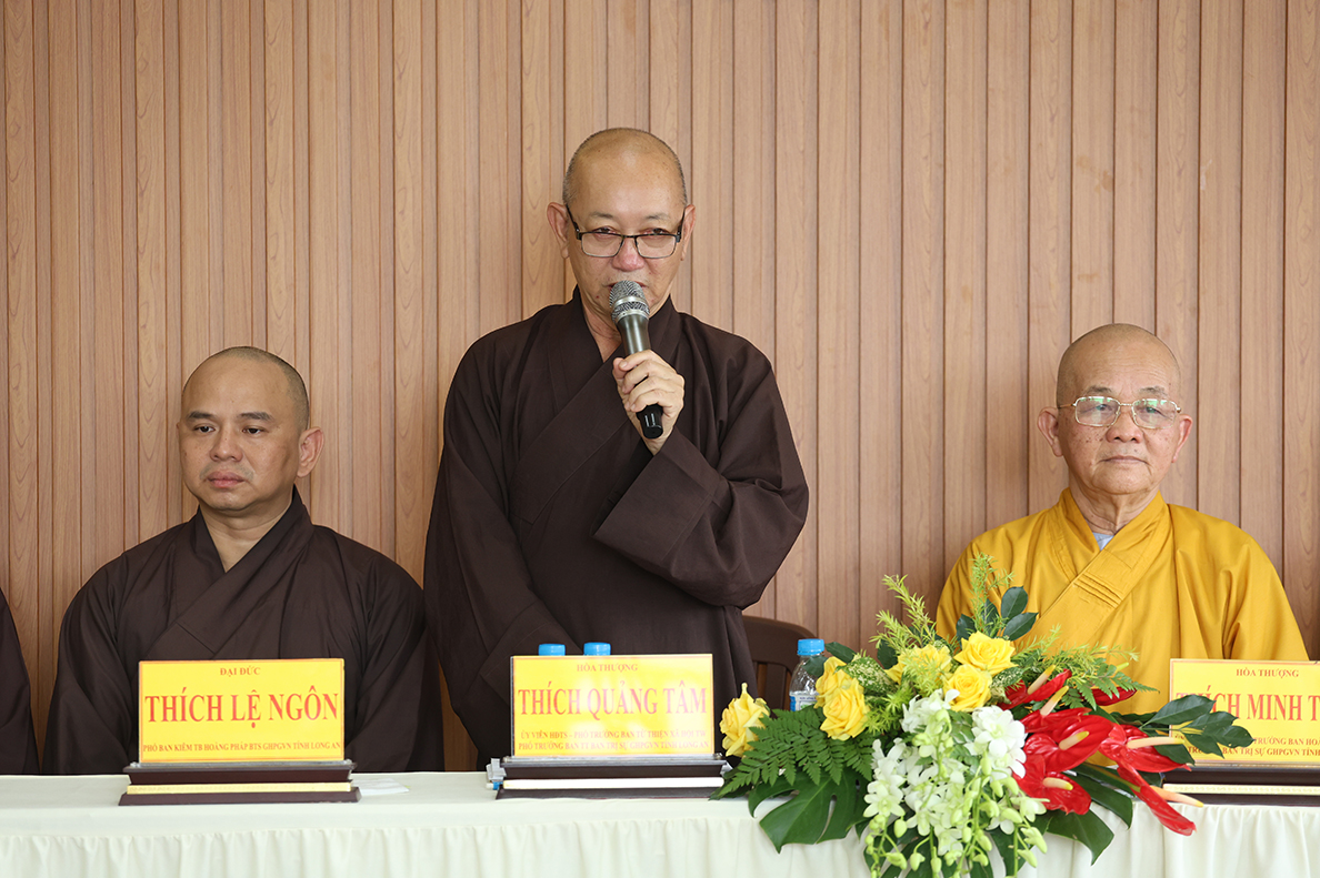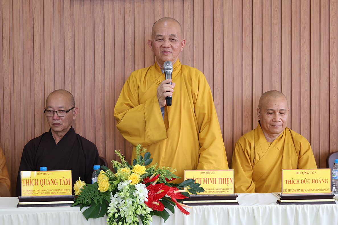 Quang lâm tại buổi lễ, được cung nghinh HT. Thích Minh Thiện – Ủy viên HĐTS, Phó ban Hoằng pháp Trung Ương, Trưởng BTS GHPGVN tỉnh Long An – chủ trì buổi làm việc. Tháp tùng phái đoàn có: TT. Thích Quảng Tâm – Ủy viên HĐTS, Phó Trưởng ban Thường trực BTS GHPGVN tỉnh; ĐĐ. Thích Lệ Duyên – Phó Trưởng ban kiêm Chánh Thư ký BTS GHPGVN tỉnh; ĐĐ. Thích Lệ Ngôn – Phó Trưởng ban kiêm Trưởng ban Hoằng pháp BTS GHPGVN tỉnh; TT. Thích Đức Hoàng – Phó trưởng BTS GHPGVN tỉnh.