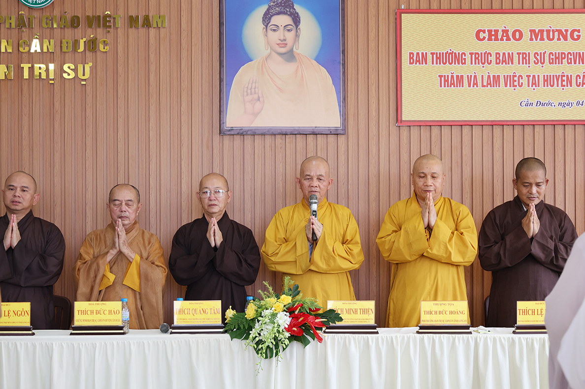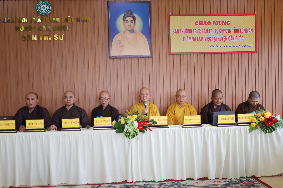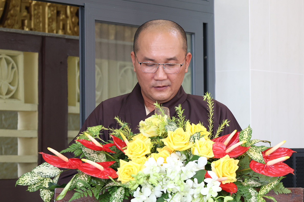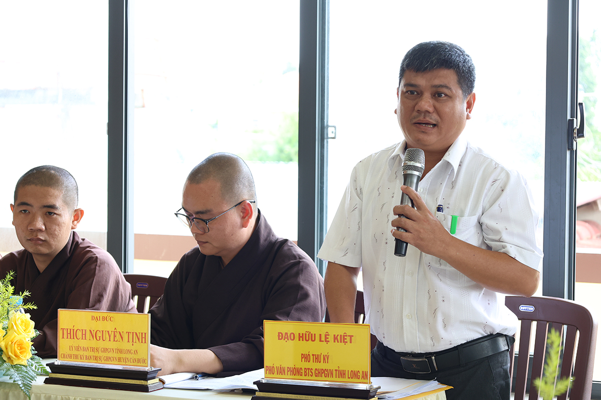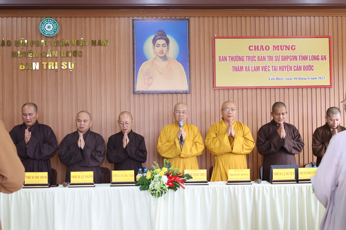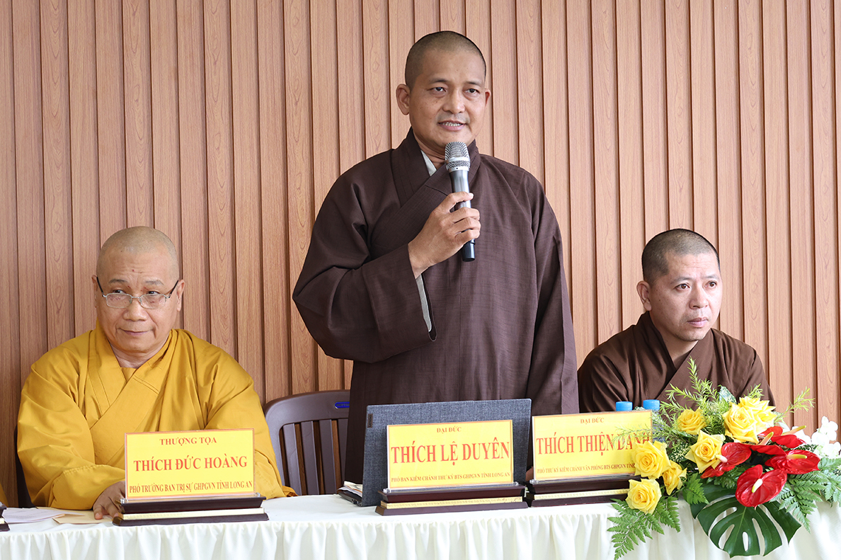 Quang lâm tại buổi lễ, được cung nghinh HT. Thích Minh Thiện – Ủy viên HĐTS, Phó ban Hoằng pháp Trung Ương, Trưởng BTS GHPGVN tỉnh Long An – chủ trì buổi làm việc. Tháp tùng phái đoàn có: TT. Thích Quảng Tâm – Ủy viên HĐTS, Phó Trưởng ban Thường trực BTS GHPGVN tỉnh; ĐĐ. Thích Lệ Duyên – Phó Trưởng ban kiêm Chánh Thư ký BTS GHPGVN tỉnh; ĐĐ. Thích Lệ Ngôn – Phó Trưởng ban kiêm Trưởng ban Hoằng pháp BTS GHPGVN tỉnh; TT. Thích Đức Hoàng – Phó trưởng BTS GHPGVN tỉnh.