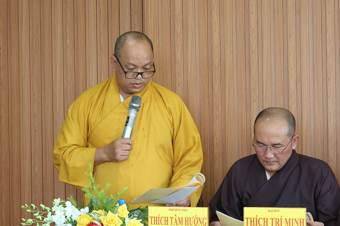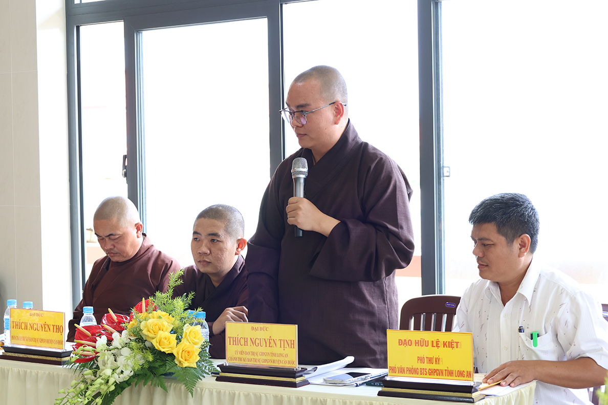 Mở đầu phiên làm việc, ĐĐ. Thích Trí Minh – Trưởng BTS GHPGVN huyện Cần Đước đã thông qua báo cáo hoạt động Phật sự năm 2025 và báo cáo tổng kết nhiệm kỳ X (2021 – 2026) với kết quả tốt đẹp về mọi mặt Phật sự, đặc biệt là việc góp phần giữ gìn an ninh trật tự về tôn giáo trong khu vực, chung tay trong vấn đề an sinh xã hội, đồng hành cùng chính quyền các cấp để xây dựng xã hội tốt đẹp, đời sống tín đồ, nhân dân Phật tử được phát triển ổn định.