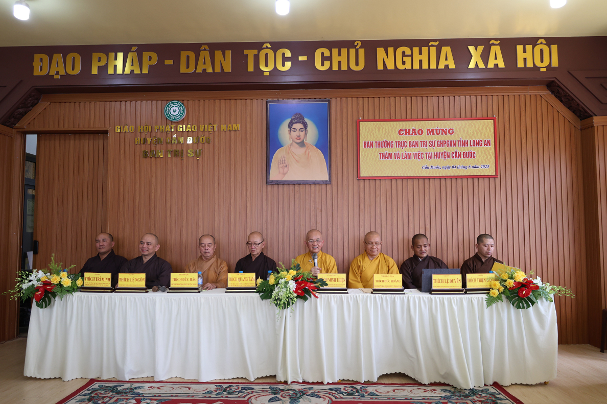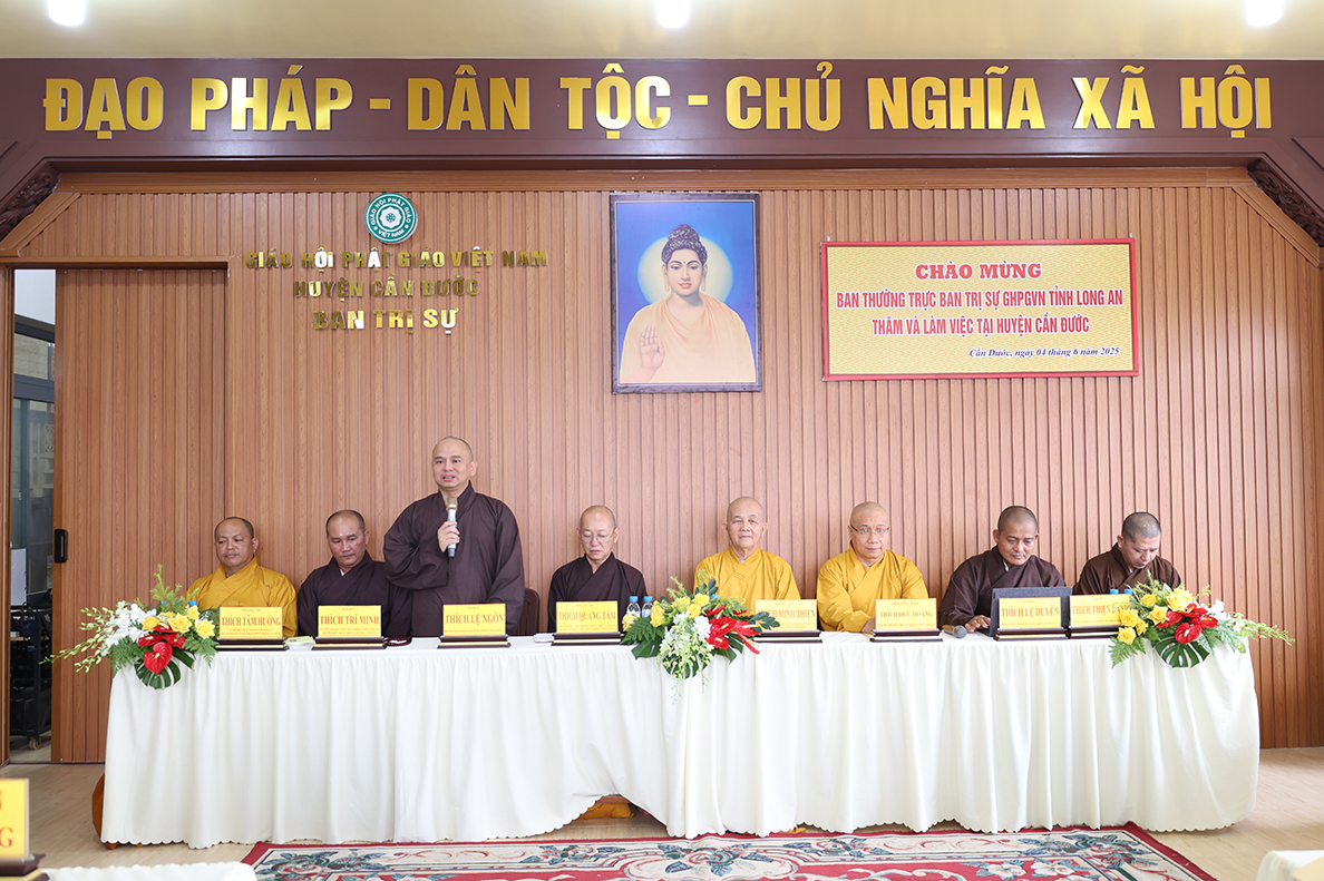 Sáng ngày 04/06/2025 (nhằm ngày 09/05/Ất Tỵ), tại Văn phòng BTS GHPGVN huyện Cần Đước – chùa Phổ An, xã Long Trạch, huyện Cần Đước, tỉnh Long An. Cung đón Chư tôn đức Thường trực BTS GHPGVN tỉnh Long An thăm và làm việc tại huyện Cần Đước.