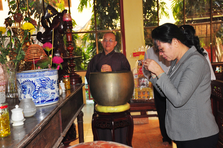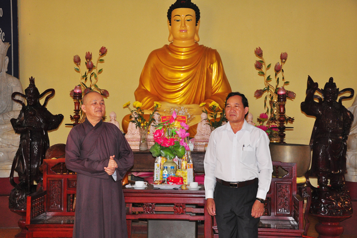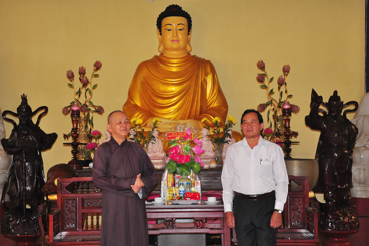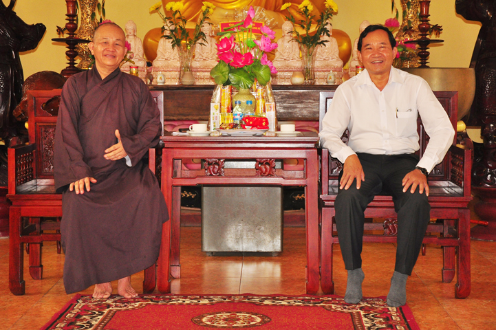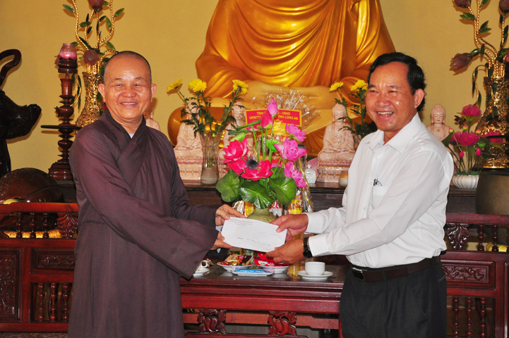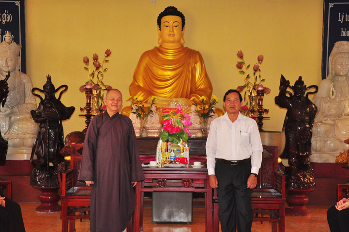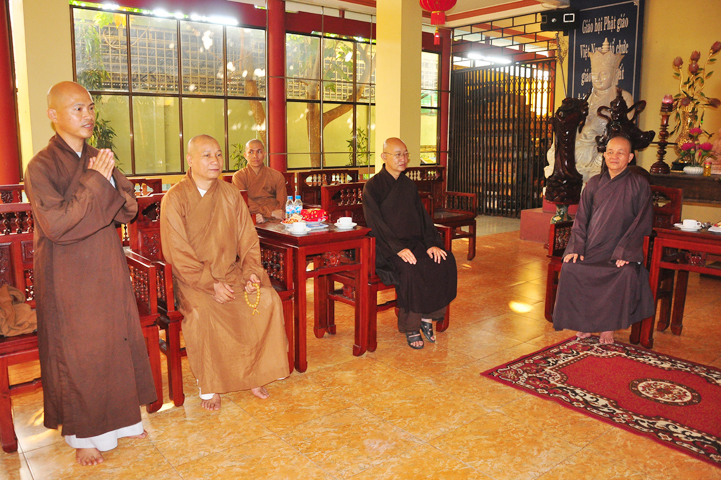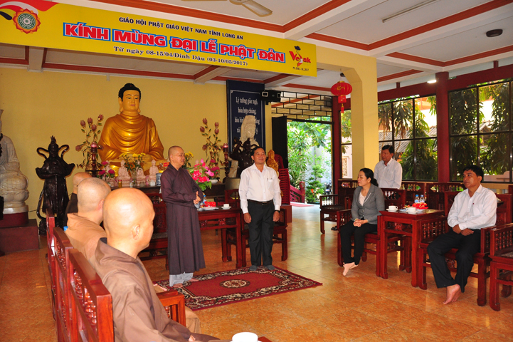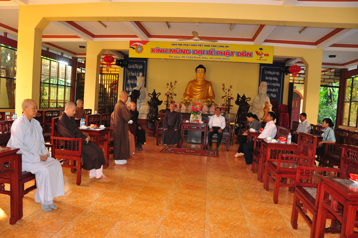 Tiếp đón phái đoàn có HT. Thích Minh Thiện- Ủy viên Hội Đồng Trị Sự trung ương, Phó Ban Hoằng pháp trung ương GHPGVN, Trưởng Ban trị sự GHPGVN tỉnh Long An; TT. Thích Quảng Tâm- Phó Ban trị sự kiêm trưởng Ban Từ Thiện xã hội GHPGVN tỉnh Long An; ĐĐ. Thích Lệ Trí- UVHĐTSTƯ, Chánh thư ký BTS. GHPGVN tỉnh Long An cùng Chư tôn đức Tăng, Ni trong thường trực Ban trị sự GHPGVN tỉnh Long An.