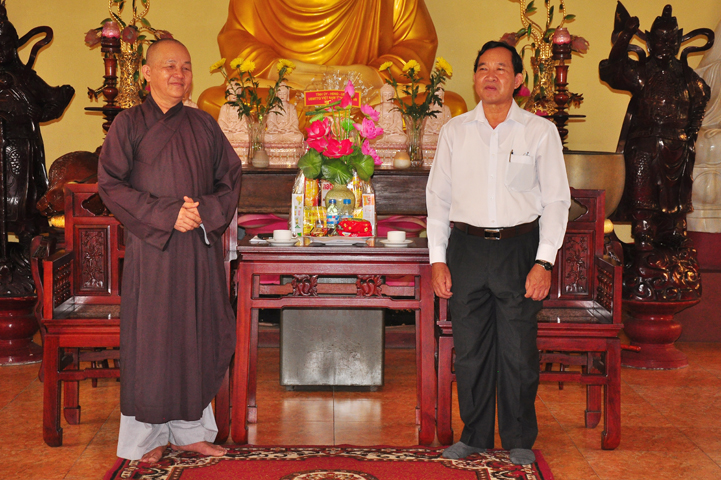 Tại buổi thăm viếng chúc mừng Ông Huỳnh Văn Thừng đại diện phái đoàn gửi đến Chư tôn đức lãnh đạo Ban trị sự GHPGVN tỉnh Long An, Tăng Ni và Phật tử trong tỉnh lời chúc sức khỏe, an lành và thành tựu các công tác Phật sự theo đúng phương châm “Đạo pháp- Dân tộc – Chủ nghĩa xã hội” nhằm tốt đạo đẹp đời.