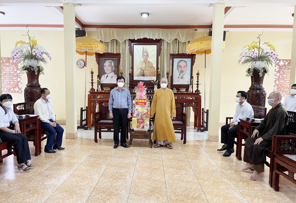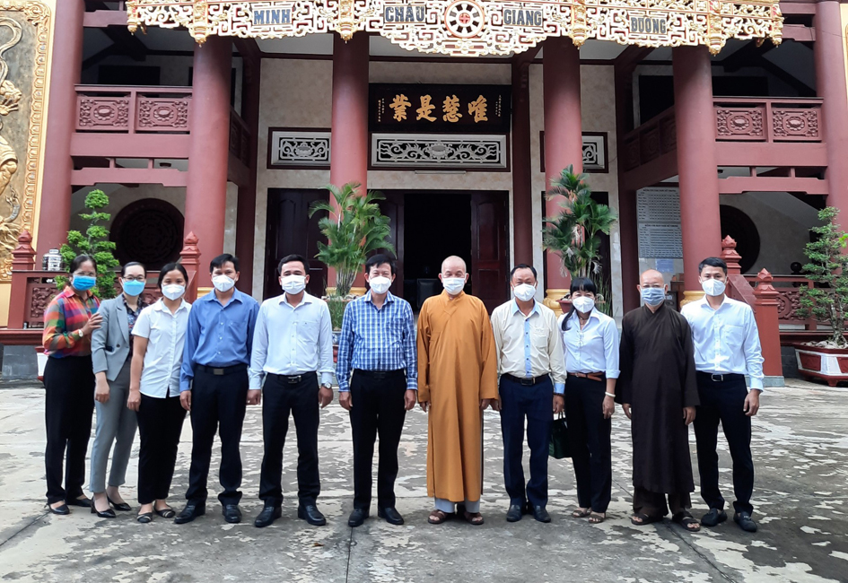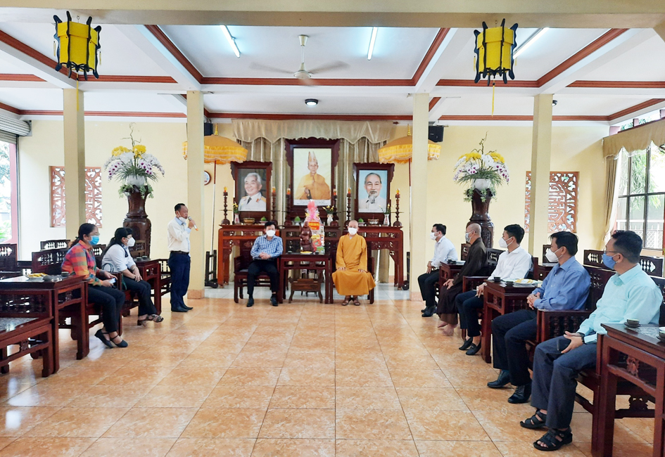 Nhằm nắm bắt tình hình hoạt động của Phật giáo tỉnh Long An trong đợt dịch lần thứ 4, ngày 19/10/2021 (nhằm ngày 14/09/tân sửu), Lãnh đạo Ban Tôn giáo Chính phủ và Ủy ban Trung ương Mặt trận Tổ quốc Việt Nam đã đến thăm Ban Trị sự GHPGVN tỉnh Long An, tại chùa Thiên Châu, số 101 đường Huỳnh Văn Nhứt, Phường 3, Tp. Tân An..