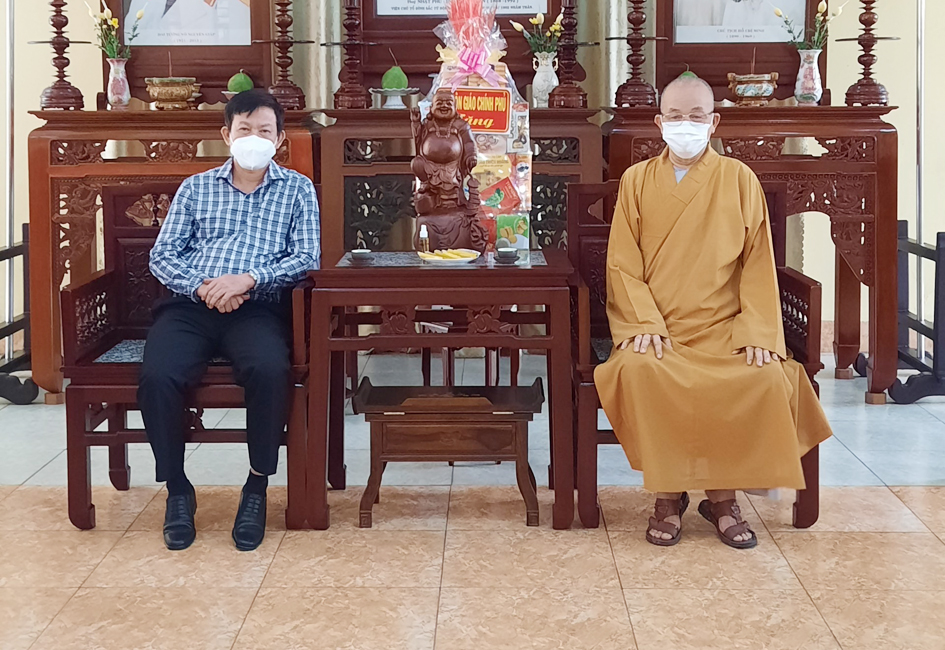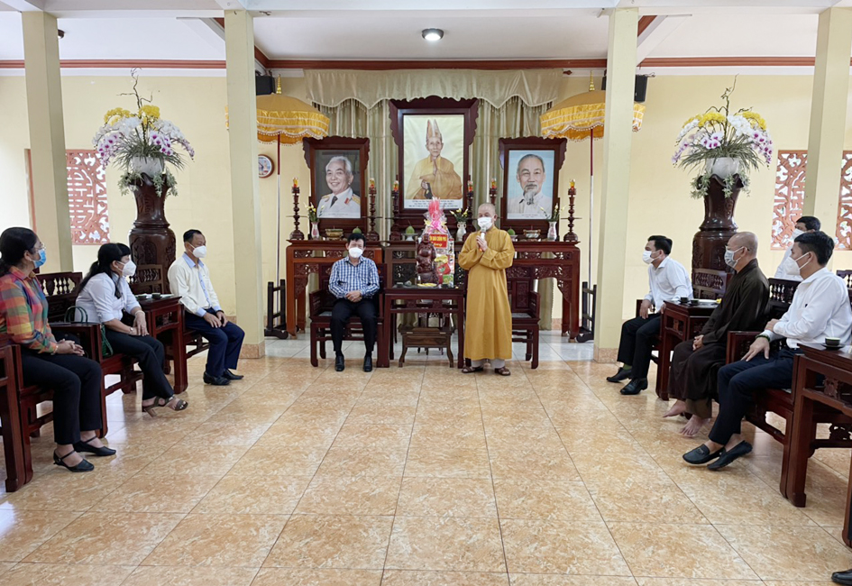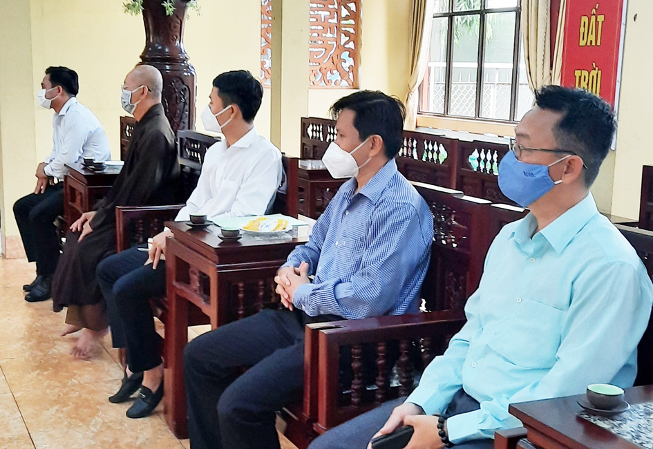 Đón tiếp phái đoàn gồm có Hòa thượng Thích Minh Thiện: Ủy viên HĐTS – Phó Ban Hoằng pháp Trung ương – Trưởng Ban Trị sự GHPGVN tỉnh Long An; Thượng tọa Thích Quảng Tâm: Ủy viên HĐTS – Phó Trưởng Ban Thường trực Ban Trị sự GHPGVN tỉnh Long An; Đại đức Thích Thiện Danh: Phó Thư ký – Chánh Văn phòng Ban Trị sự GHPGVN tỉnh Long An; và Cư sĩ Lệ Kiệt: Phó Thư ký – Phó Chánh Văn phòng Ban Trị sự GHPGVN tỉnh Long An.