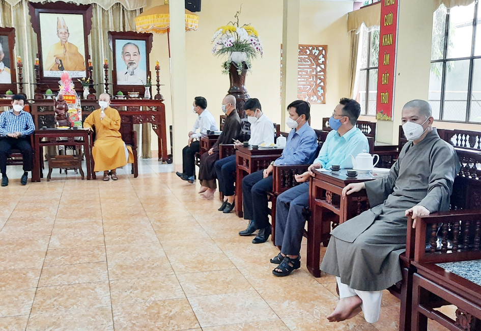Tại buổi tiếp đoàn, Hòa thượng Thích Minh Thiện đã có những chia sẻ về hoạt động Phật giáo của tỉnh trong thời gian qua. Theo đó, Tăng Ni Phật giáo tỉnh Long An luôn hoạt động tôn giáo theo sự cho phép của các ngành chức năng, đảm bảo công tác phòng, chống dịch Covid-19 trong tình hình mới. Thời gian qua, nắm bắt tình hình thực tế, Phật Giáo tỉnh luôn đoàn kết, đẩy mạnh các hoạt động an sinh xã hội bằng nhiều hình thức khác nhau như trao tặng xe cứu thương, máy thở đa năng,… chú trọng đảm bảo đời sống nhân dân, hỗ trợ lương thực, nhu yếu phẩm, khẩu trang y tế liên tục tại khu vực cách ly y tế, khu vực phong tỏa, bệnh viện dã chiến,… với tổng số tiền vận động trên 40 tỷ đồng, trong đó 665 triệu đồng dành ủng hộ quỹ vắc-xin và tuyến đầu chống dịch. Mặc dù đã bước vào giai đoạn bình thường mới, tuy nhiên Phật giáo tỉnh Long An vẫn sẽ luôn đề cao cảnh giác, nâng cao ý thức của Tăng Ni Phật tử trong công tác phòng chống dịch để ngăn chặn nguy cơ dịch bùng phát trở lại. Bên cạnh đó, hòa thượng cũng thông tin thêm về kế hoạch tổ chức Đại hội Đại biểu GHPGVN tỉnh Long An lần thứ X, nhiệm kỳ 2022-2027 sẽ diễn ra vào năm 2022. Tính đến thời điểm hiện tại, toàn tỉnh Long An đã có 11/13 đơn vị huyện, thị xã, thành phố, tổ chức thành công Đại hội Đại biểu Giáo hội Phật giáo Việt Nam theo kế hoạch đề ra.