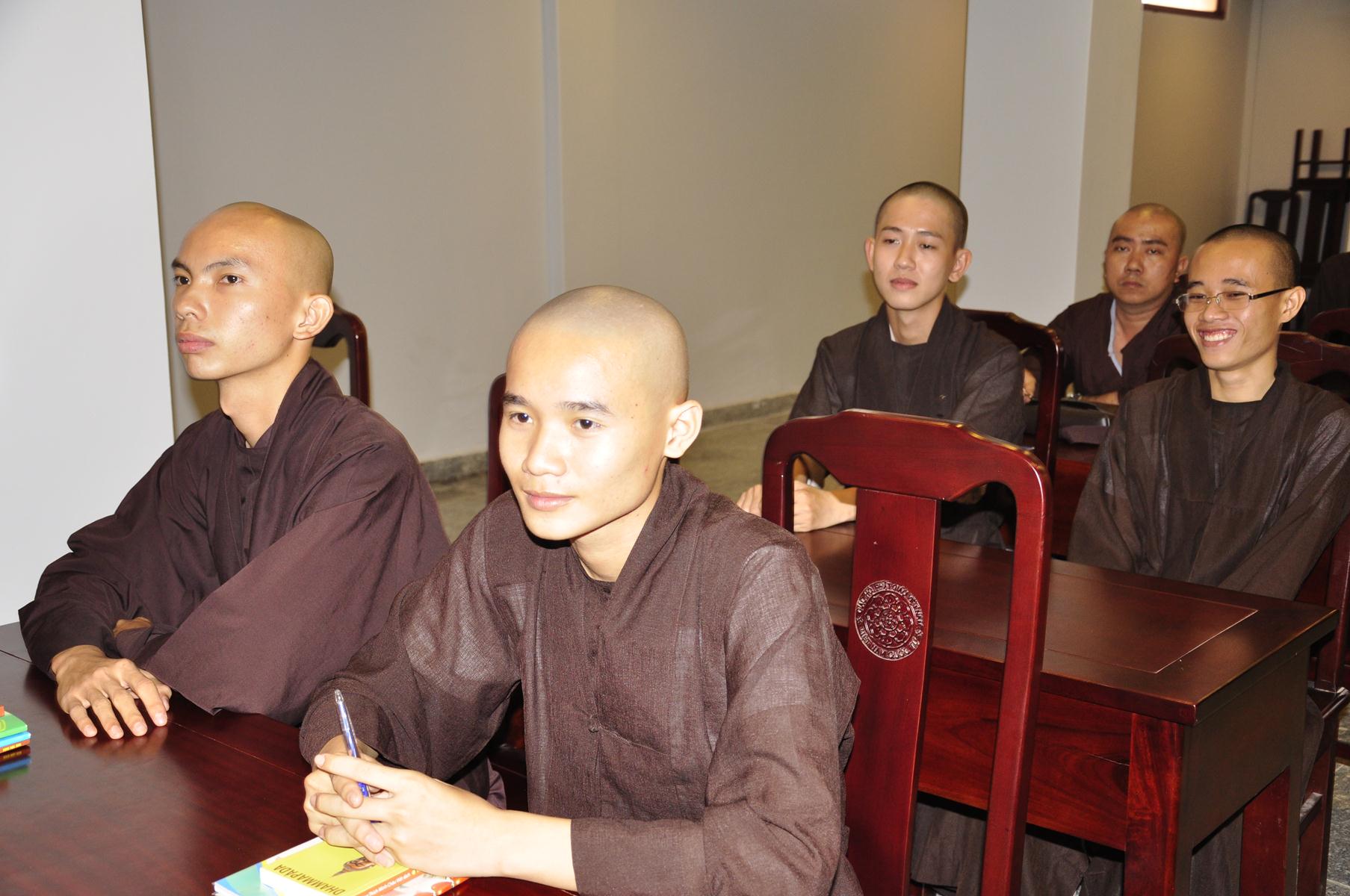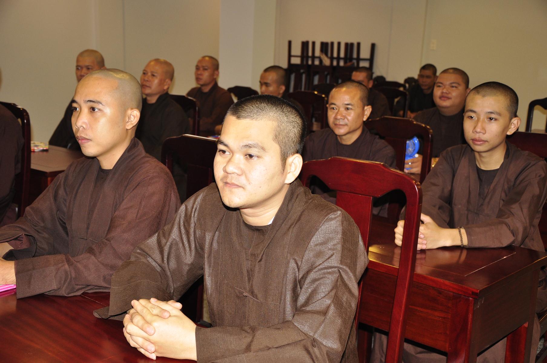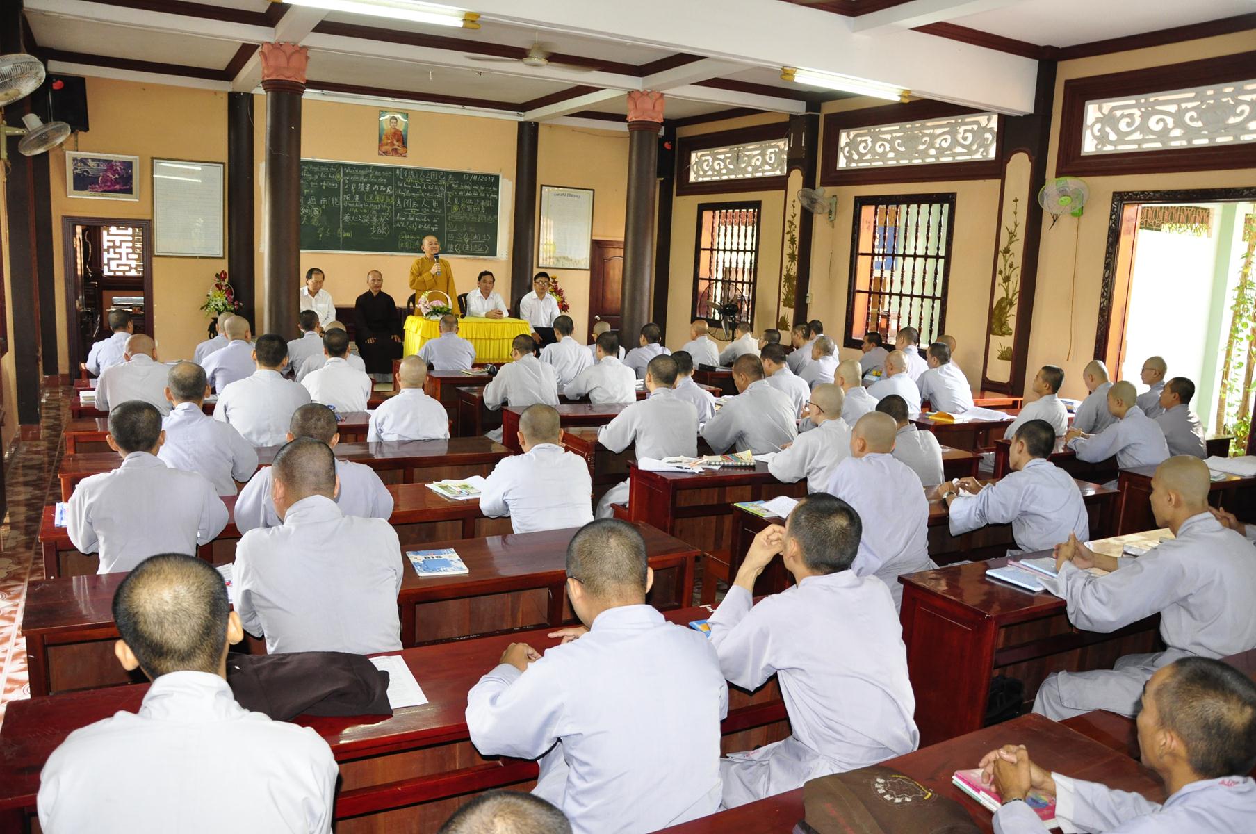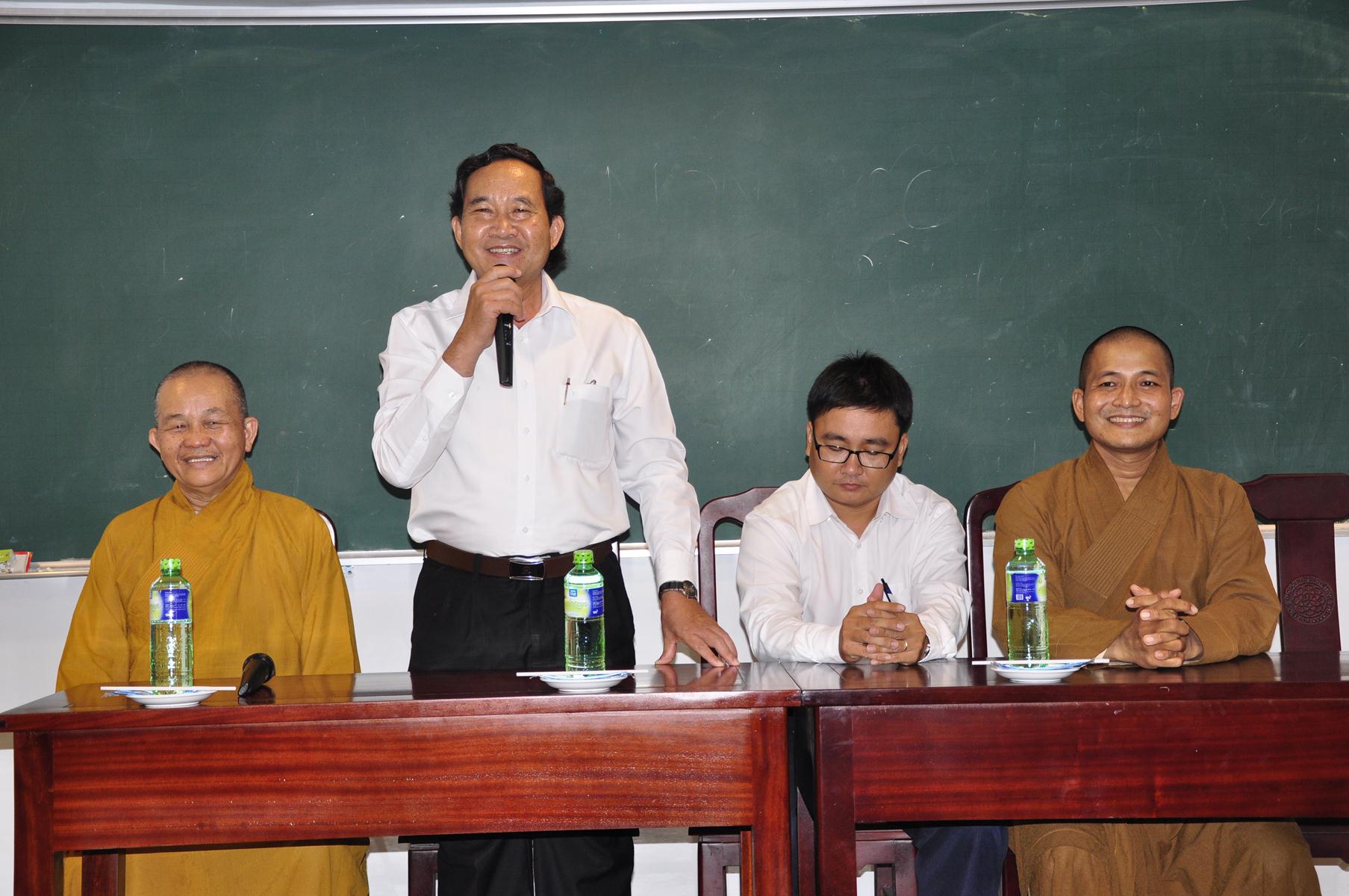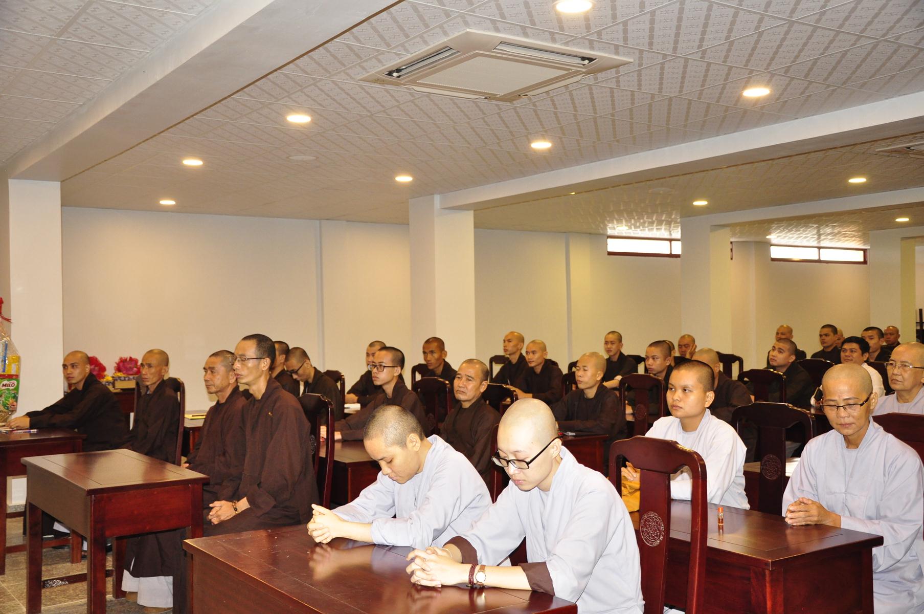 Tiếp đoàn Ban Tôn giáo tỉnh có sự hiện của HT Thích Minh Thiện: Ủy viên Hội đồng Trị sự, Phó Trưởng ban Hoằng pháp TƯ, Trưởng ban Trị sự GHPGVN tỉnh Long An, Hiệu Trưởng Trường Trung cấp Phật học Long An; TT Thích Quảng Tâm: Phó Trưởng ban Thường trực kiêm Trưởng ban TTXH GHPGVN tỉnh Long An, Chủ tịch Hội đồng Quản trị Trường Bồ đề Phương Duy; ĐĐ Thích Lệ Trí: Phó Trưởng ban kiêm Trưởng ban GDTN tỉnh, Hiệu phó Trường Trung cấp Phật học Long An; ĐĐ Thích Lệ Duyên: Chánh Thư ký BTS GHPGVN tỉnh Long An, Chủ nhiệm Lớp Sơ cấp Phật học Long An; ĐĐ Thích Trí Huệ: Thư ký Lớp Sơ cấp Phật học Long An; NS TN Diệu Phước: UV BTS GHGPVN tỉnh, Chánh văn phòng cơ sở II Trung cấp Phật học Long An; SC TN Bảo Giác: Trưởng ban Văn hóa GHPGVN tỉnh Long An; SC TN Huệ Như: Chánh văn phòng Lớp Sơ cấp Phật học Long An.