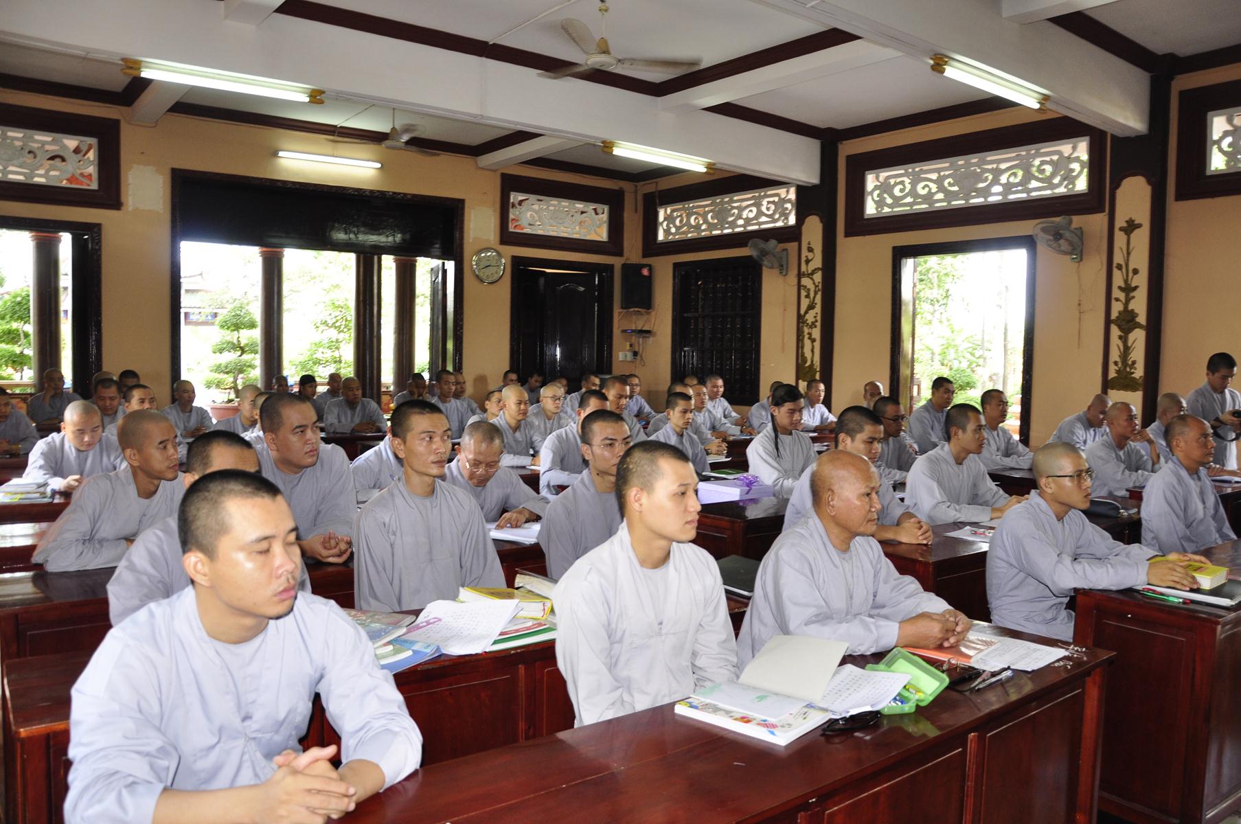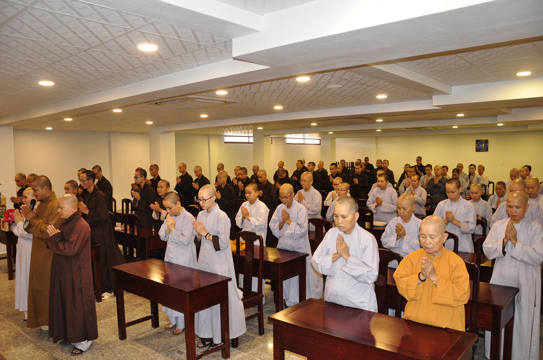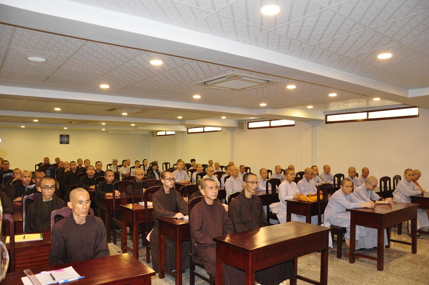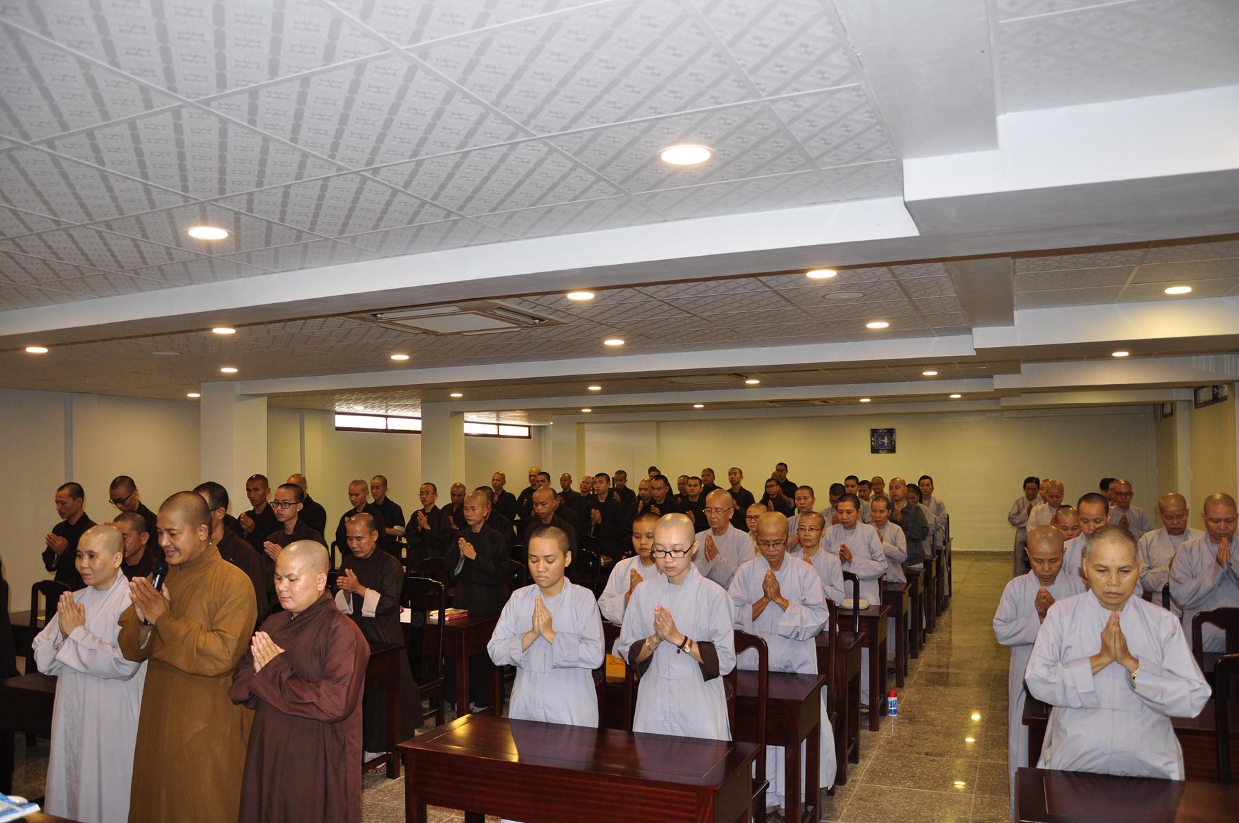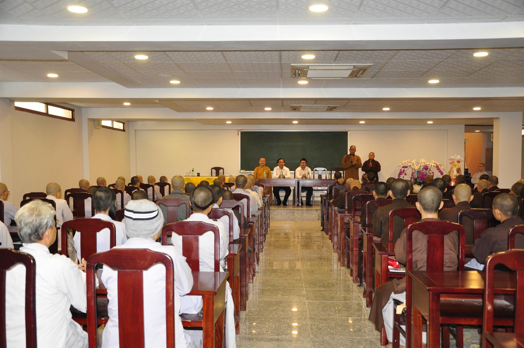 Tiếp đoàn Ban Tôn giáo tỉnh có sự hiện của HT Thích Minh Thiện: Ủy viên Hội đồng Trị sự, Phó Trưởng ban Hoằng pháp TƯ, Trưởng ban Trị sự GHPGVN tỉnh Long An, Hiệu Trưởng Trường Trung cấp Phật học Long An; TT Thích Quảng Tâm: Phó Trưởng ban Thường trực kiêm Trưởng ban TTXH GHPGVN tỉnh Long An, Chủ tịch Hội đồng Quản trị Trường Bồ đề Phương Duy; ĐĐ Thích Lệ Trí: Phó Trưởng ban kiêm Trưởng ban GDTN tỉnh, Hiệu phó Trường Trung cấp Phật học Long An; ĐĐ Thích Lệ Duyên: Chánh Thư ký BTS GHPGVN tỉnh Long An, Chủ nhiệm Lớp Sơ cấp Phật học Long An; ĐĐ Thích Trí Huệ: Thư ký Lớp Sơ cấp Phật học Long An; NS TN Diệu Phước: UV BTS GHGPVN tỉnh, Chánh văn phòng cơ sở II Trung cấp Phật học Long An; SC TN Bảo Giác: Trưởng ban Văn hóa GHPGVN tỉnh Long An; SC TN Huệ Như: Chánh văn phòng Lớp Sơ cấp Phật học Long An.