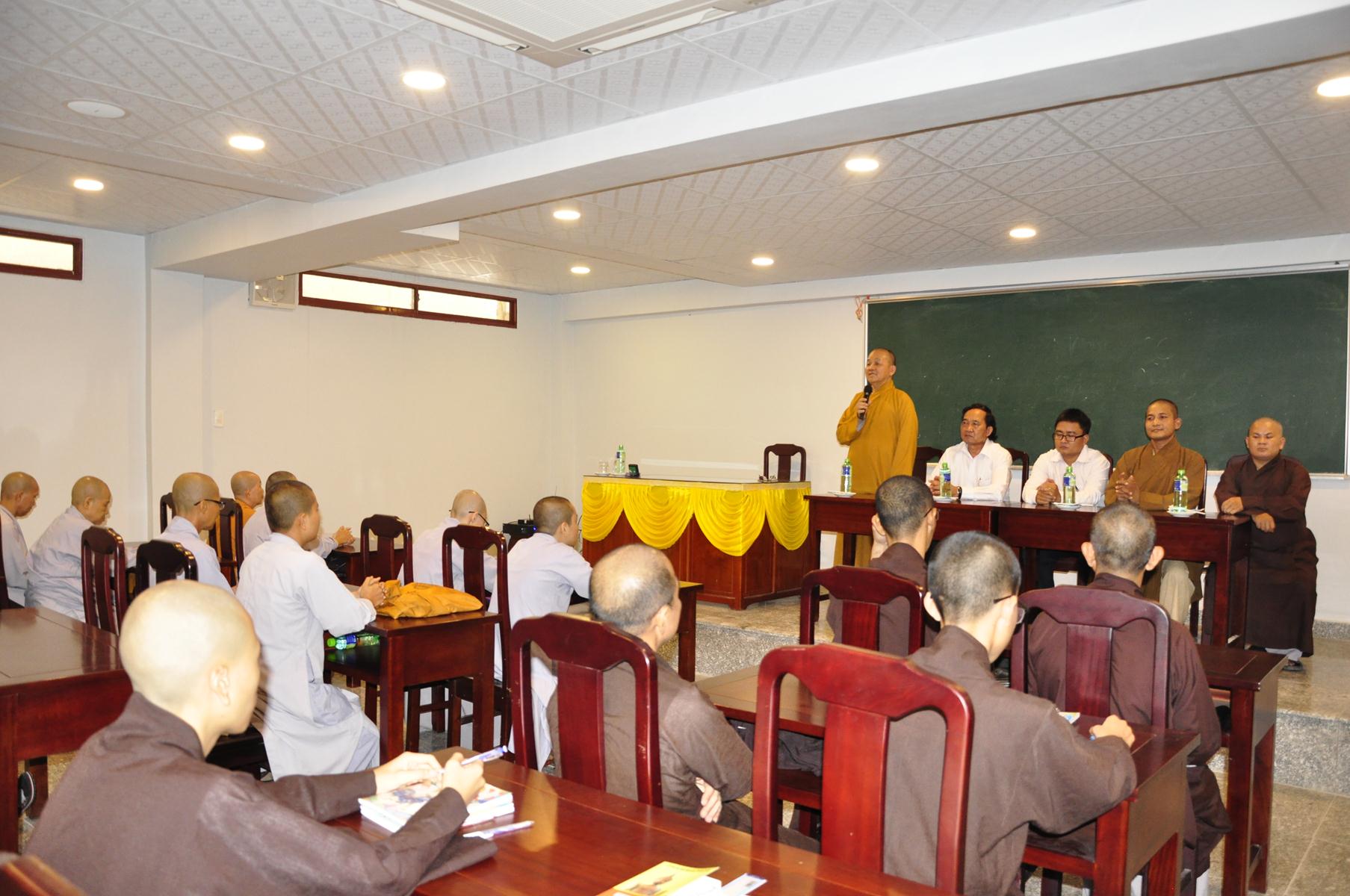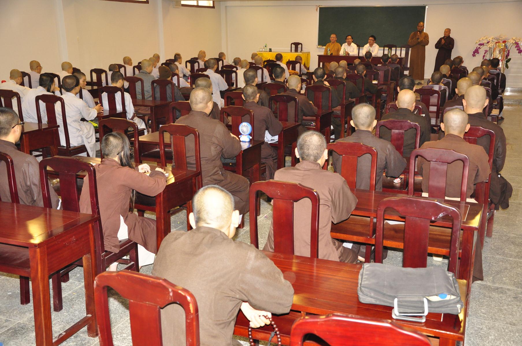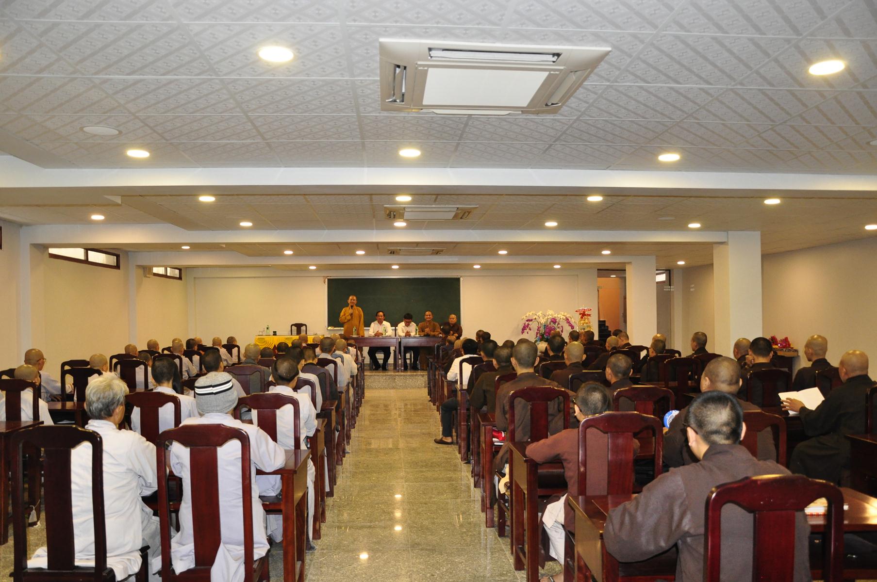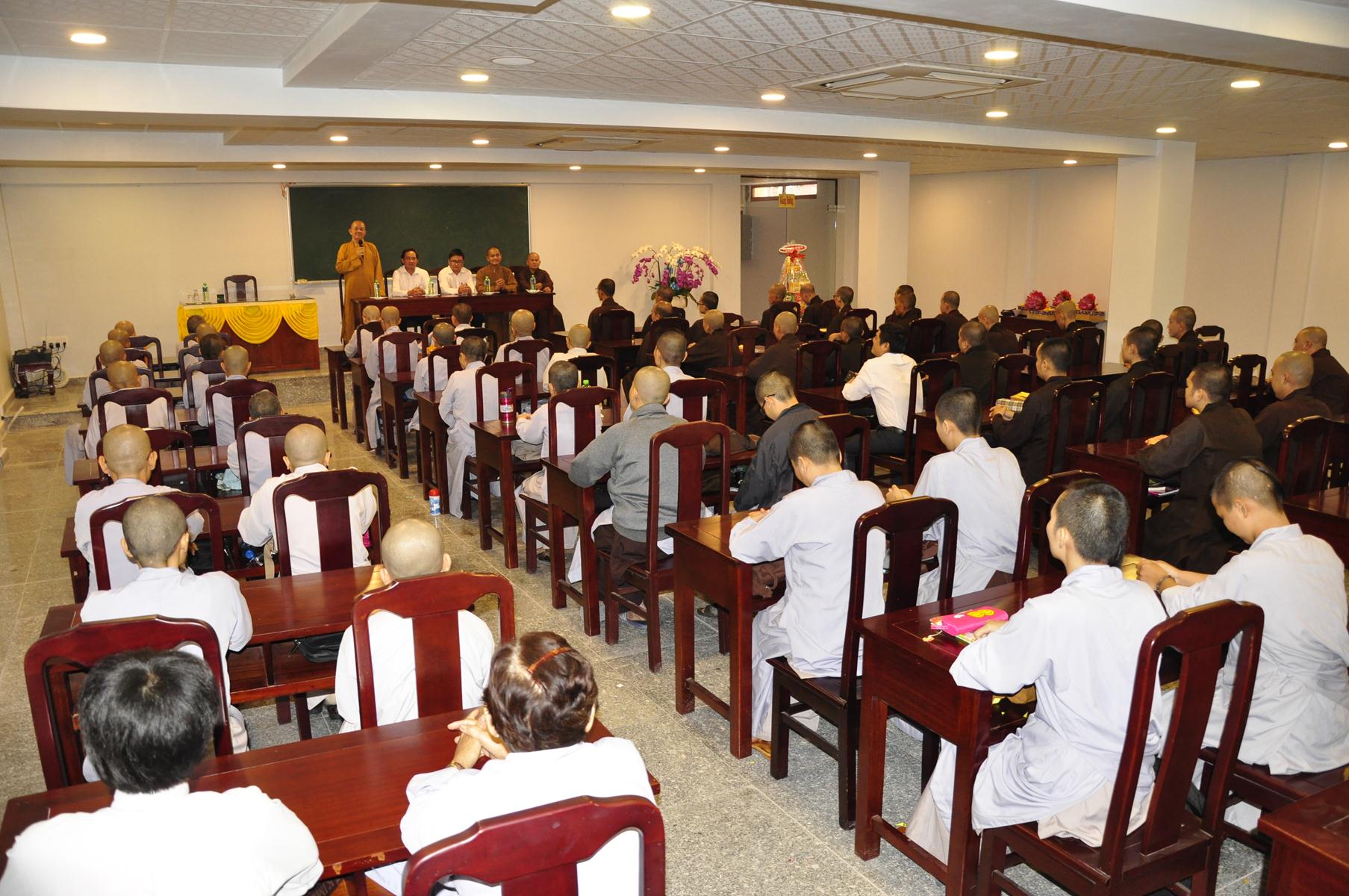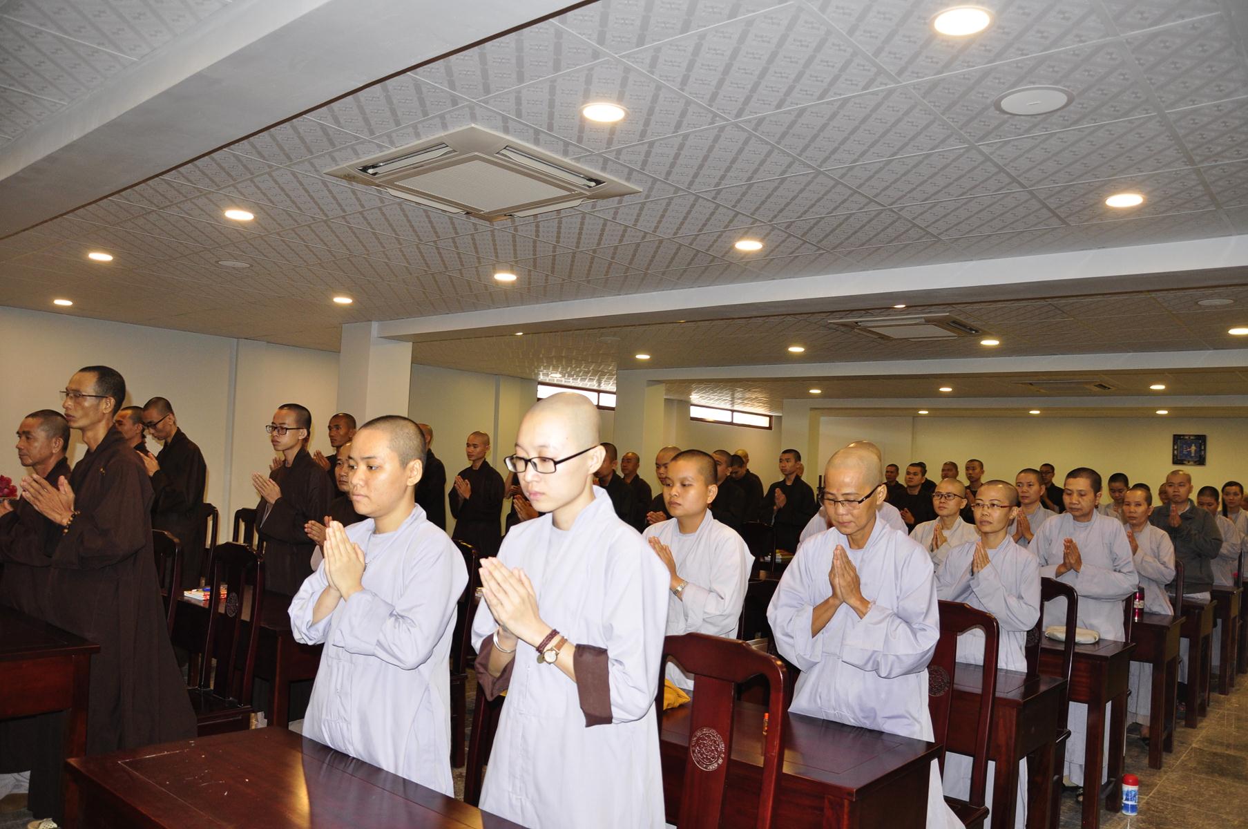 Tiếp đoàn Ban Tôn giáo tỉnh có sự hiện của HT Thích Minh Thiện: Ủy viên Hội đồng Trị sự, Phó Trưởng ban Hoằng pháp TƯ, Trưởng ban Trị sự GHPGVN tỉnh Long An, Hiệu Trưởng Trường Trung cấp Phật học Long An; TT Thích Quảng Tâm: Phó Trưởng ban Thường trực kiêm Trưởng ban TTXH GHPGVN tỉnh Long An, Chủ tịch Hội đồng Quản trị Trường Bồ đề Phương Duy; ĐĐ Thích Lệ Trí: Phó Trưởng ban kiêm Trưởng ban GDTN tỉnh, Hiệu phó Trường Trung cấp Phật học Long An; ĐĐ Thích Lệ Duyên: Chánh Thư ký BTS GHPGVN tỉnh Long An, Chủ nhiệm Lớp Sơ cấp Phật học Long An; ĐĐ Thích Trí Huệ: Thư ký Lớp Sơ cấp Phật học Long An; NS TN Diệu Phước: UV BTS GHGPVN tỉnh, Chánh văn phòng cơ sở II Trung cấp Phật học Long An; SC TN Bảo Giác: Trưởng ban Văn hóa GHPGVN tỉnh Long An; SC TN Huệ Như: Chánh văn phòng Lớp Sơ cấp Phật học Long An.