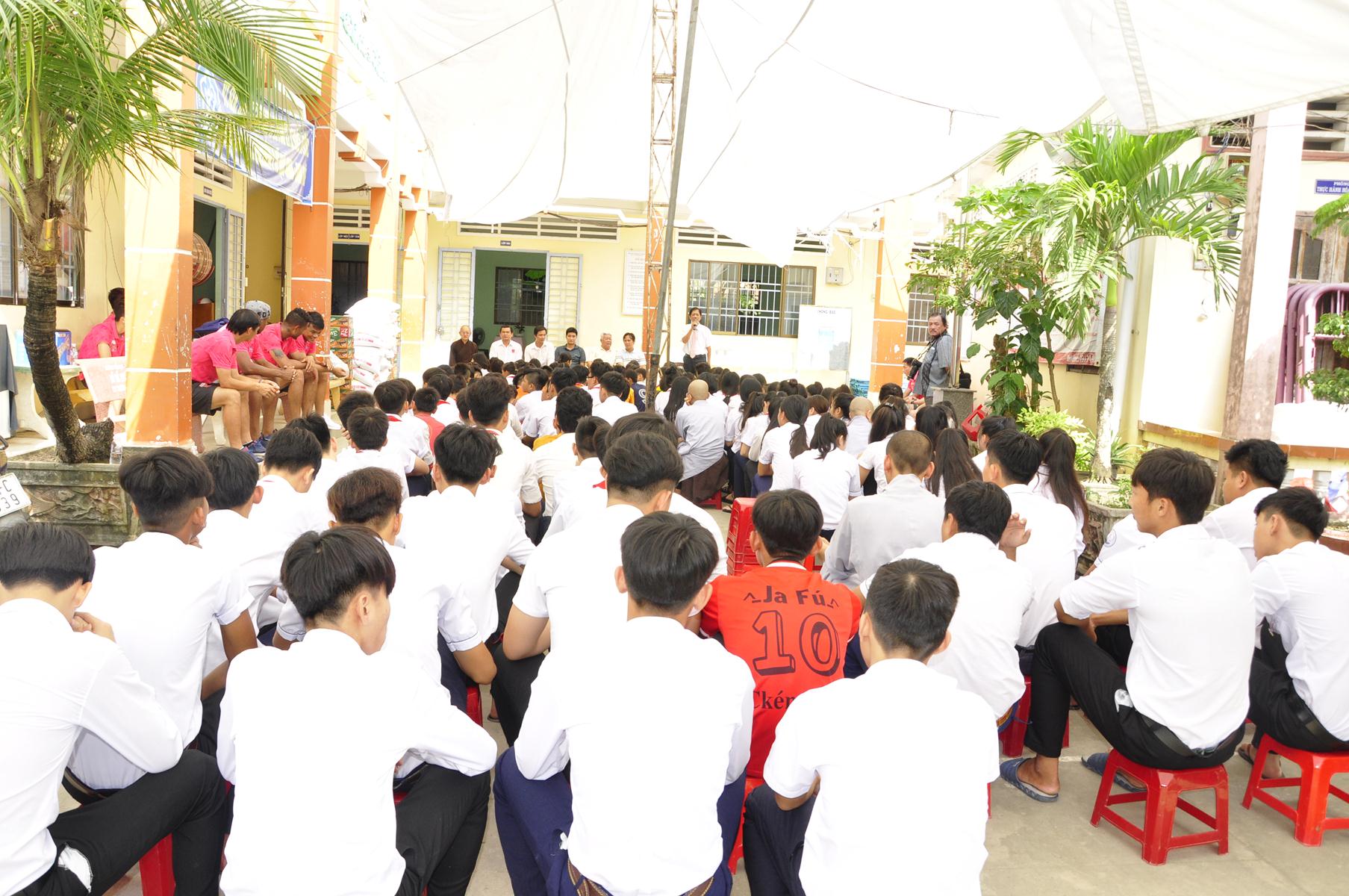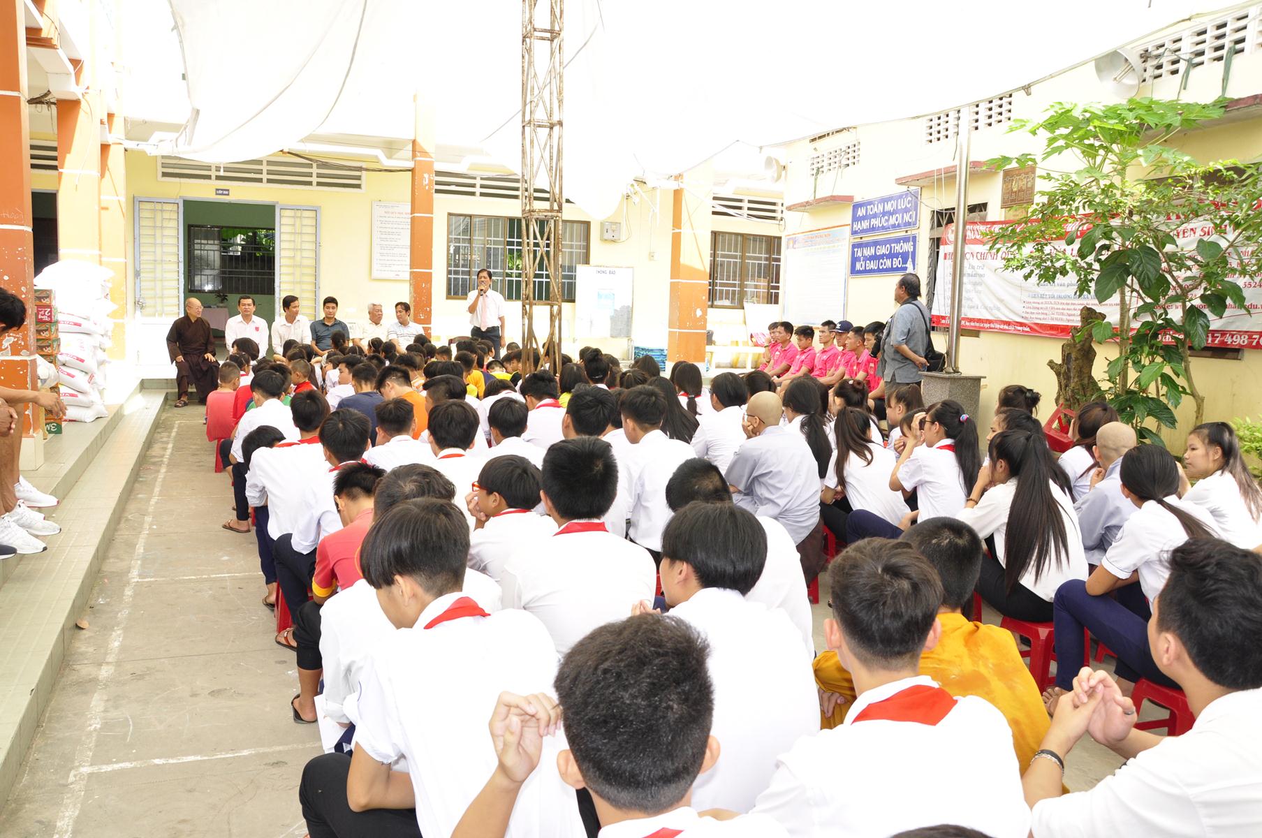 Tiếp theo phái đoàn viếng thăm Trường Bồ đề Phương Duy (tại chùa Long Thạnh, Thị trấn Thủ Thừa). Đây là ngôi trường tư thục đầu tiên trên phạm vi cả nước do Phật giáo tỉnh nhà thành lập năm 2012. Trường đào tạo với ba cấp học: tiểu học, trung học cơ sở và trung học phổ thông cho các em cơ nhở, có hoàn cảnh khó khăn. Trải qua hơn năm năm thành lập, trường đã đào tạo được rất nhiều em học sinh có đạo đức và học lực tốt. Trường nổi tiếng với tiêu chuẩn “ba không”: không học phí, không nhận lương, không trượt tốt nghiệp.