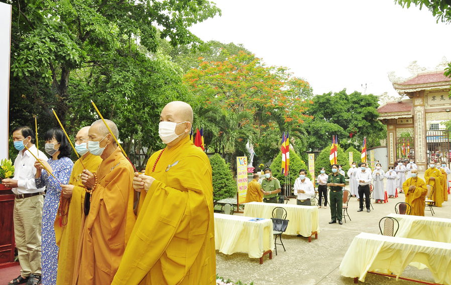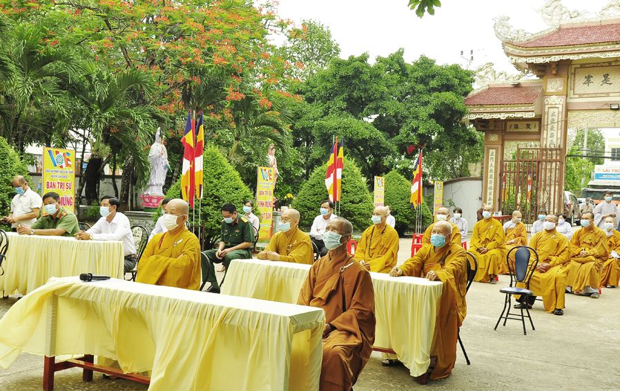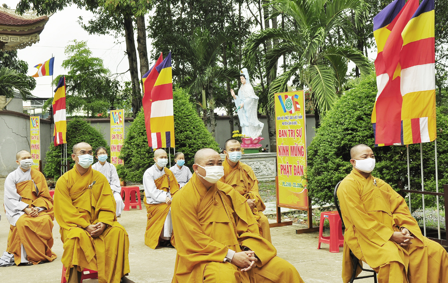 Trước tình hình dịch bệnh Covid 19 đang diễn biến rất phức tạp. Do đó Đại lễ Phật đản năm nay được cử hành trọng thể, trang nghiêm trong phạm vi nội bộ với sự tham dự của các thành viên thường trực Ban Trị sự huyện và một số đồng bào Phật tử địa phương.