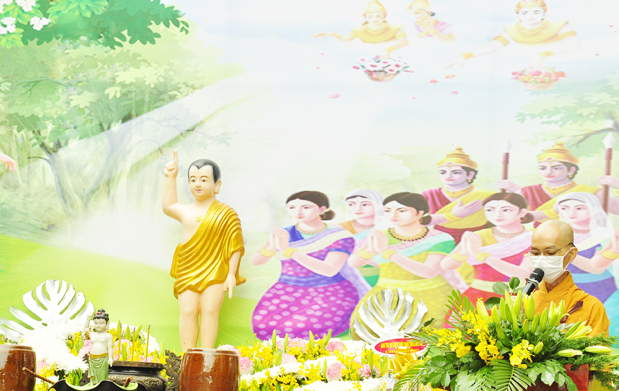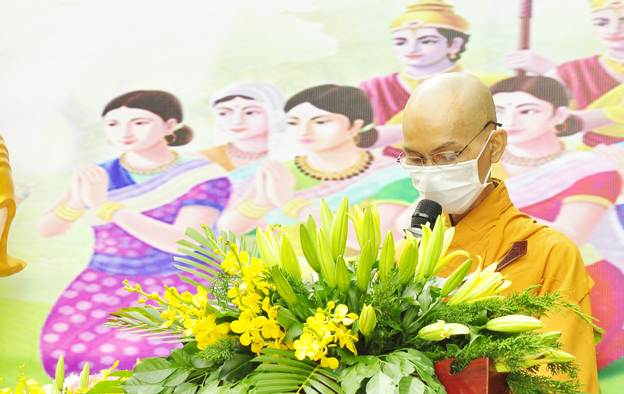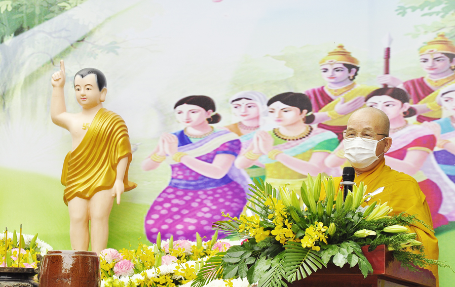Tiếp đó, Hòa thượng tuyên đọc thông điệp Phật đản của Đức Pháp chủ. Thông qua thông điệp đó, Đức Pháp chủ gởi lời chúc sức khỏe đến toàn thể Tăng ni và Phật tử trong và ngoài nước, đồng thời đề cao tinh thần phòng chống dịch bệnh CoVid 19 đang tiếp tục lây lan, kêu gọi các Tự viện chủ động ứng phó với dịch bệnh.