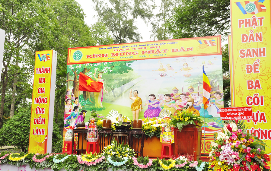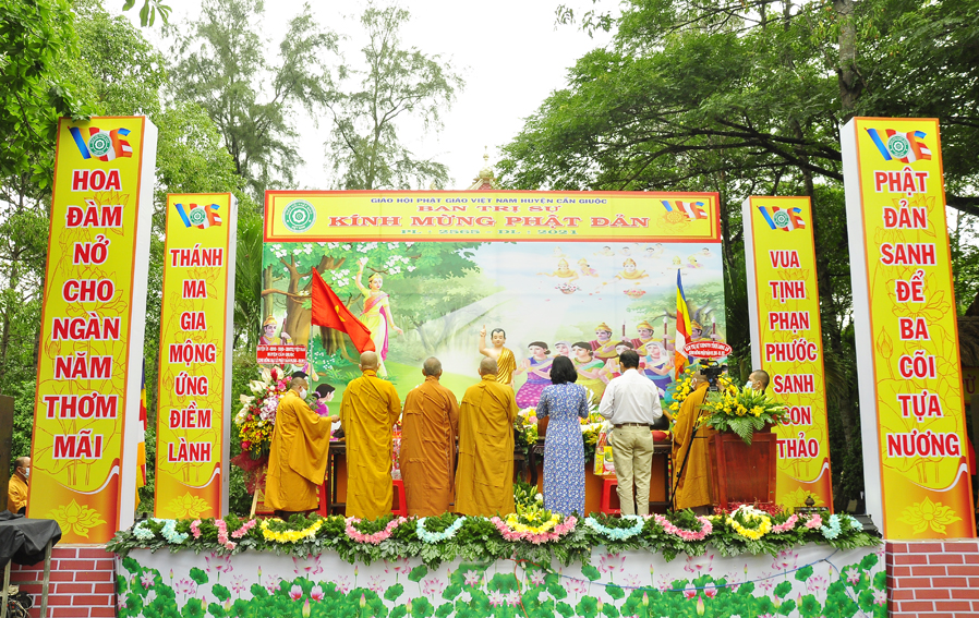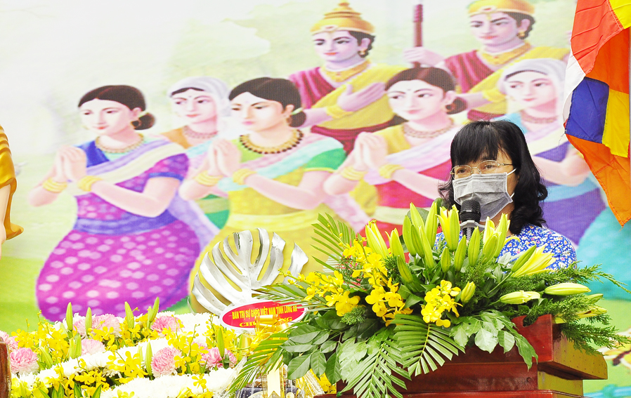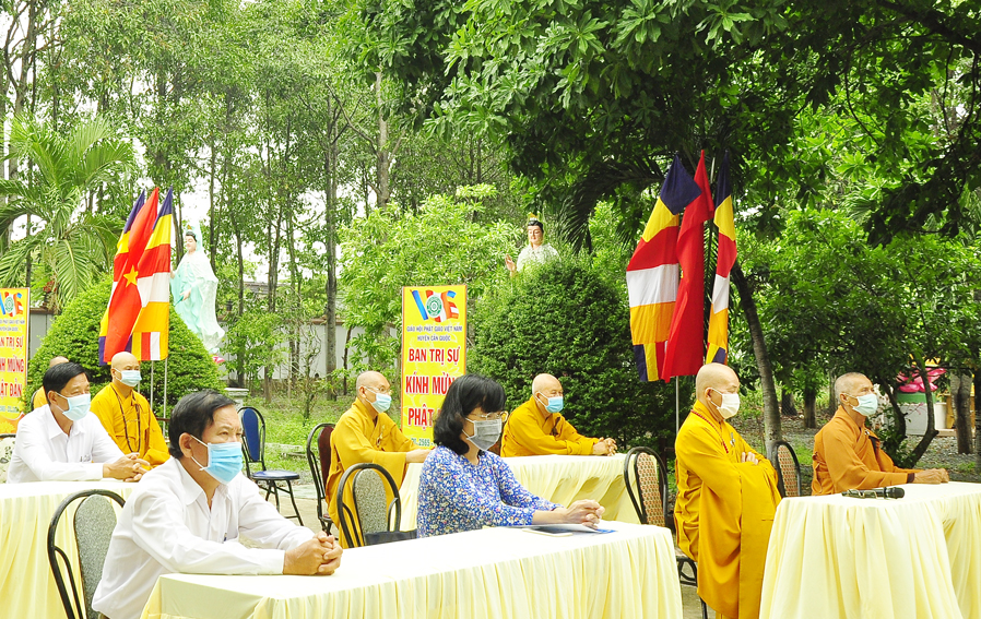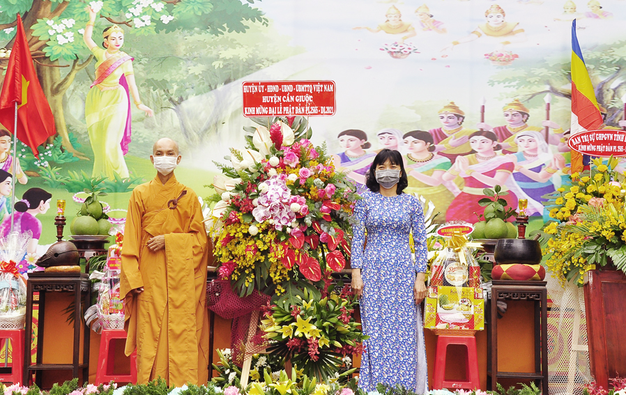 Chúc mừng Đại lễ Phật đản năm 2021, thay mặt Lãnh đạo chính quyền Tỉnh Long An và huyện Cần Giuộc, Bà Đào Thị Ngọc Vui– huyện uỷ viên, Phó Chủ tịch UBND huyện Cần Giuộc gởi lời chúc mừng Đại lễ Phật đản đến BTS. GHPGVN huyện. Bài phát biểu bà đã bày tỏ sự quan tâm đến với Phật giáo, khen ngợi những thành tích xuất sắc mà Phật giáo huyện nhà đã đạt được, đặc biệt về vấn đề phòng chống dịch bệnh Covid 19, bà kêu gọi các cơ sở tự viện trong địa bàn Phật giáo huyện tổ chức lễ phù hợp với tình hình thực tiễn và thực hiện nghiêm các biện pháp phòng, chống dịch theo khuyến cáo của nghành Y tế.