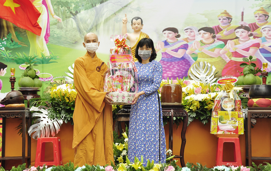 Dịp này Chư tôn đức Thường trực Ban trị sự tỉnh và lãnh đạo huyện gởi lẵng hoa, quà chúc mừng Phật đản đến BTS. GHPGVN huyện, chúc mùa Phật đản PL 2565 – DL 2021 được trang nghiêm và thành tựu tốt đẹp.