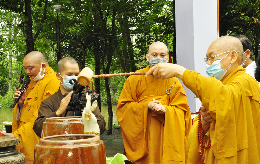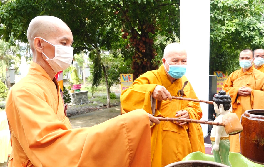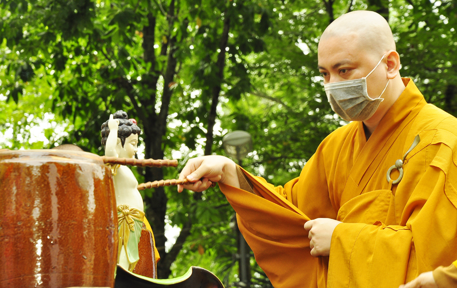Buổi lễ viên thành sau nghi thức Mộc dục, tắm Phật, cầu nguyện cho thế giới hòa bình và đại dịch Covid 19 sớm được tiêu trừ.