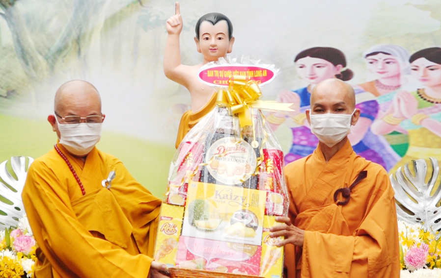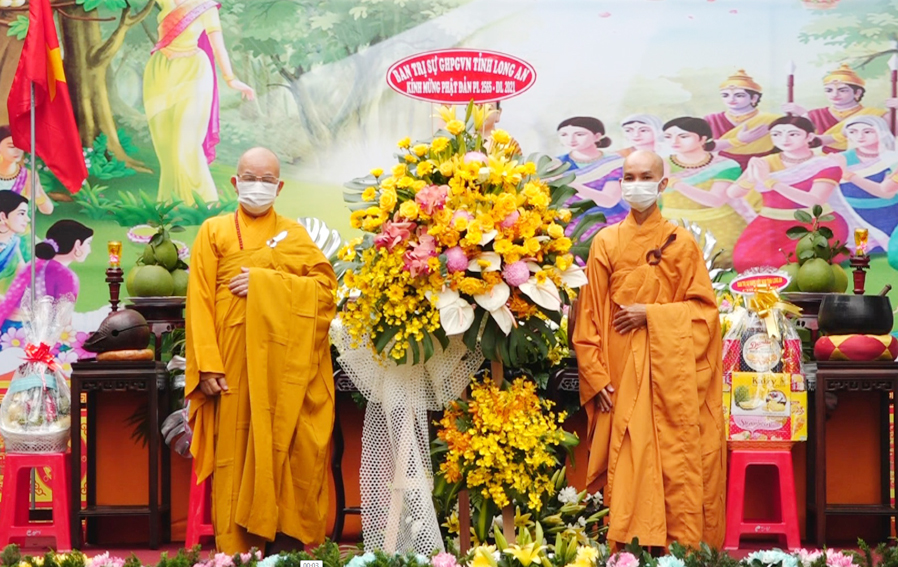 Tại buổi lễ, Hòa thượng Thích Minh Thiện – UV. HĐTS ,Trưởng BTS. GHPGVN tỉnh Long An, đã tuyên đọc thông điệp Phật đản năm 2021 của Đức Pháp Chủ Giáo hội Phật giáo Việt Nam, kỷ niệm 2645 năm ngày Đản sinh của Đức Phật, kỷ niệm 40 năm thành lập Giáo hội.