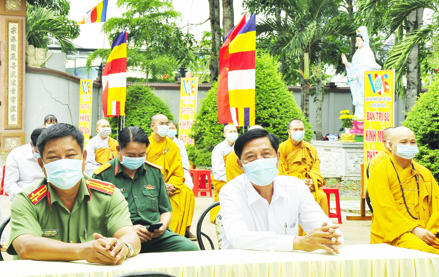 Buổi lễ được cung đón sự quang lâm chứng minh của Hòa thượng Thích Minh Thiện – UV HĐTS – Phó Ban Hoằng pháp TW – Trưởng Ban Trị sự GHPGVN tỉnh Long An; Hòa thượng Thích Tắc Nhàn, Hòa thượng Thích Huệ Bạch – Đồng chứng minh Ban Trị sự GHPGVN huyện Cần Giuộc; Đại đức Thích Tắc Nguyên – UV. BTS. GHPGVN tỉnh Long An – Trưởng BTS GHPGVN huyện Cần Giuộc – Đại đức Thích Huệ Phát – Phó Trưởng Ban BTS GHPGVN huyện Cần Giuộc; Đại đức Thích Minh An – Phó Trưởng Ban Trị sự; Đại đức Thích An Nguyên – Chánh Thư ký BTS, Sư cô Thích Nữ An Thi- Phó BTS. GHPGVN huyện cùng Chư tôn đức Thường trực BTS GHPGVN huyện Cần Giuộc đồng quang lâm tham dự.