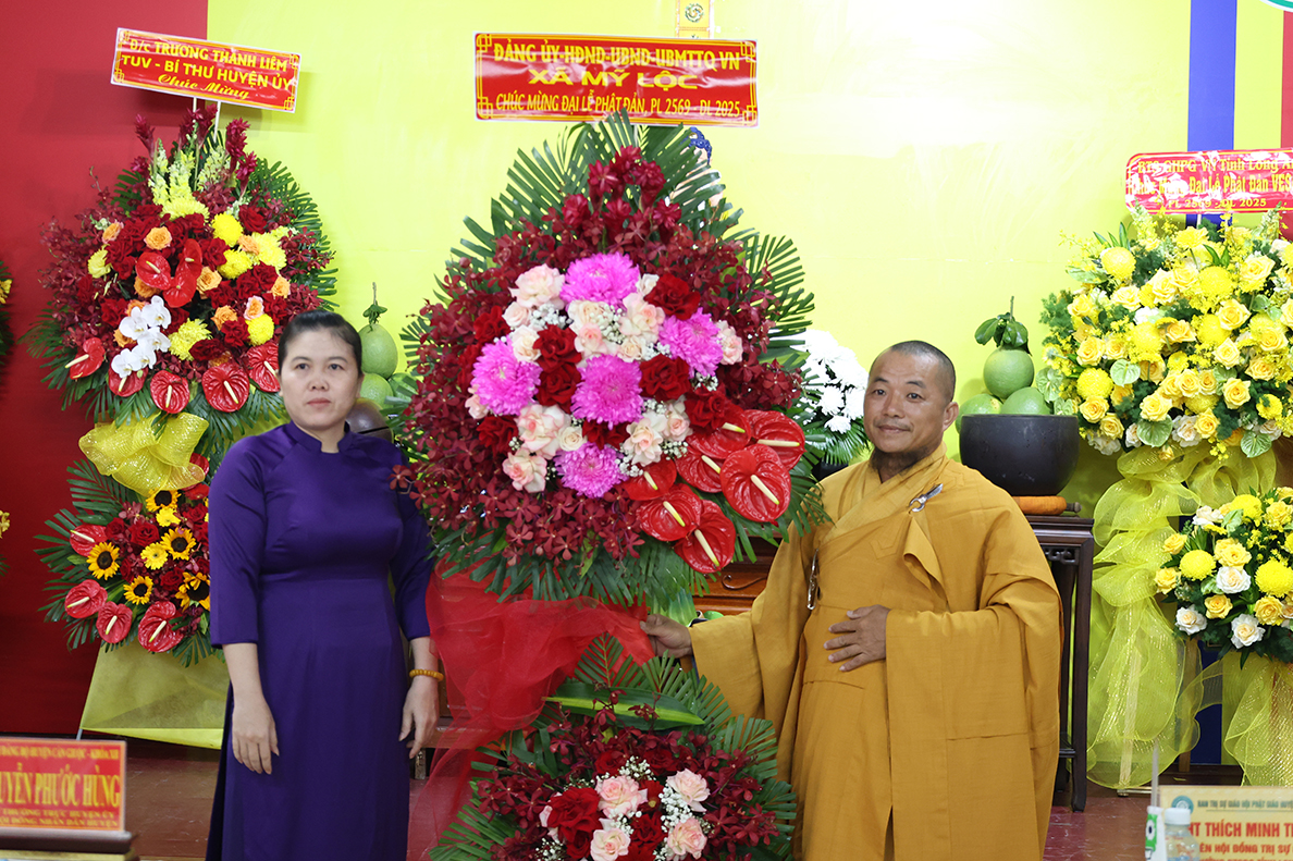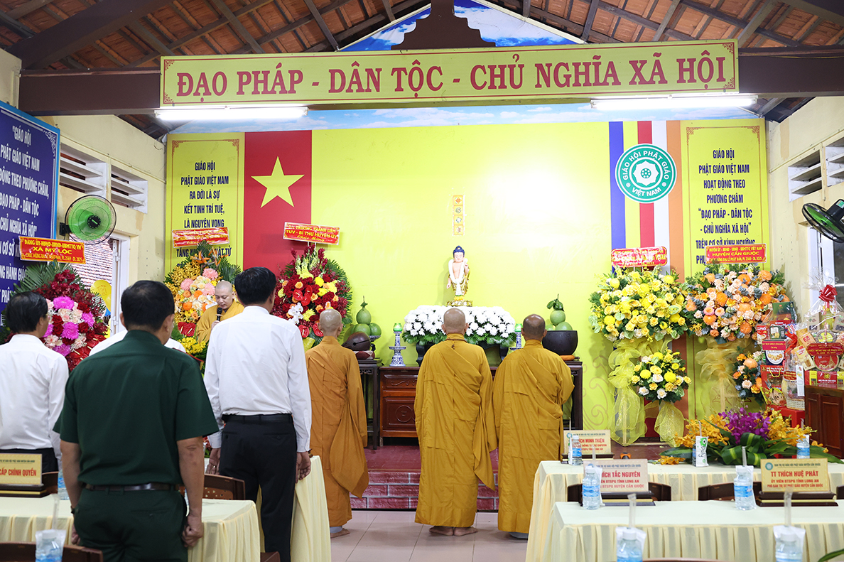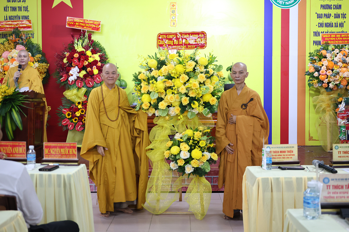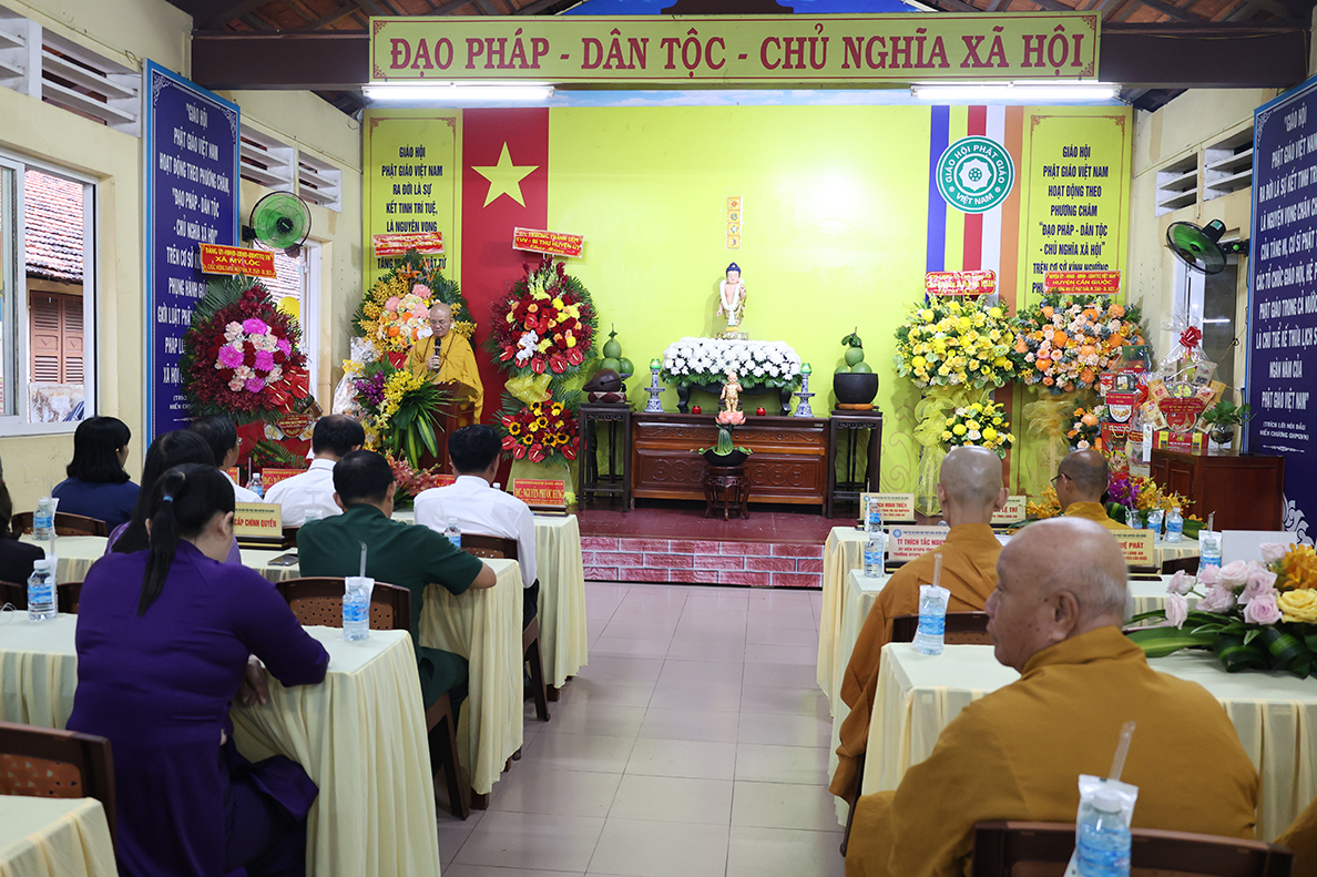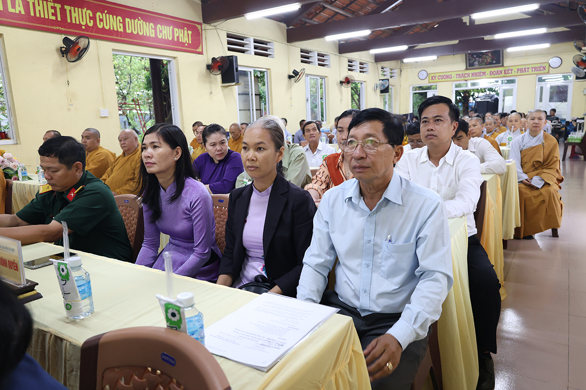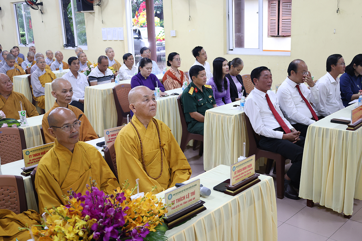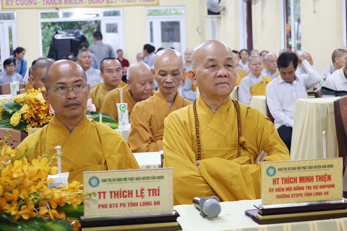 Đại diện chính quyền, ông Nguyễn Phước Hùng, Phó Bí thư Thường trực Huyện ủy, đã phát biểu chúc mừng GHPGVN huyện Cần Giuộc nhân dịp Đại lễ Vesak. Ông bày tỏ sự trân trọng đối với những đóng góp tích cực của Giáo hội trong các hoạt động từ thiện, giáo dục và xây dựng đời sống văn hóa tại địa phương. Ông cũng mong muốn GHPGVN tiếp tục đồng hành cùng chính quyền trong các phong trào thi đua yêu nước, góp phần xây dựng huyện Cần Giuộc ngày càng văn minh, giàu đẹp.
