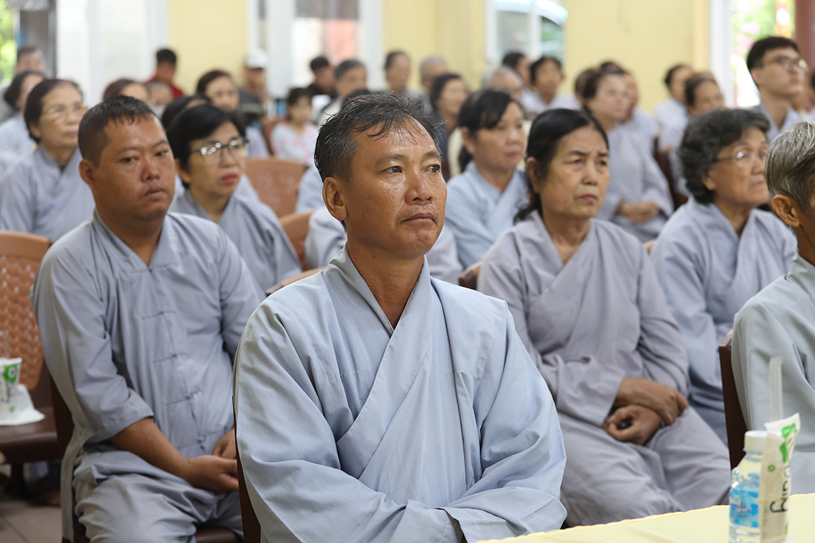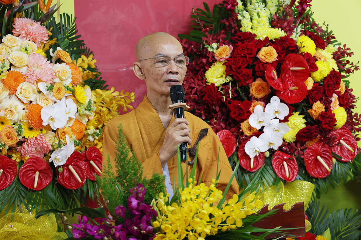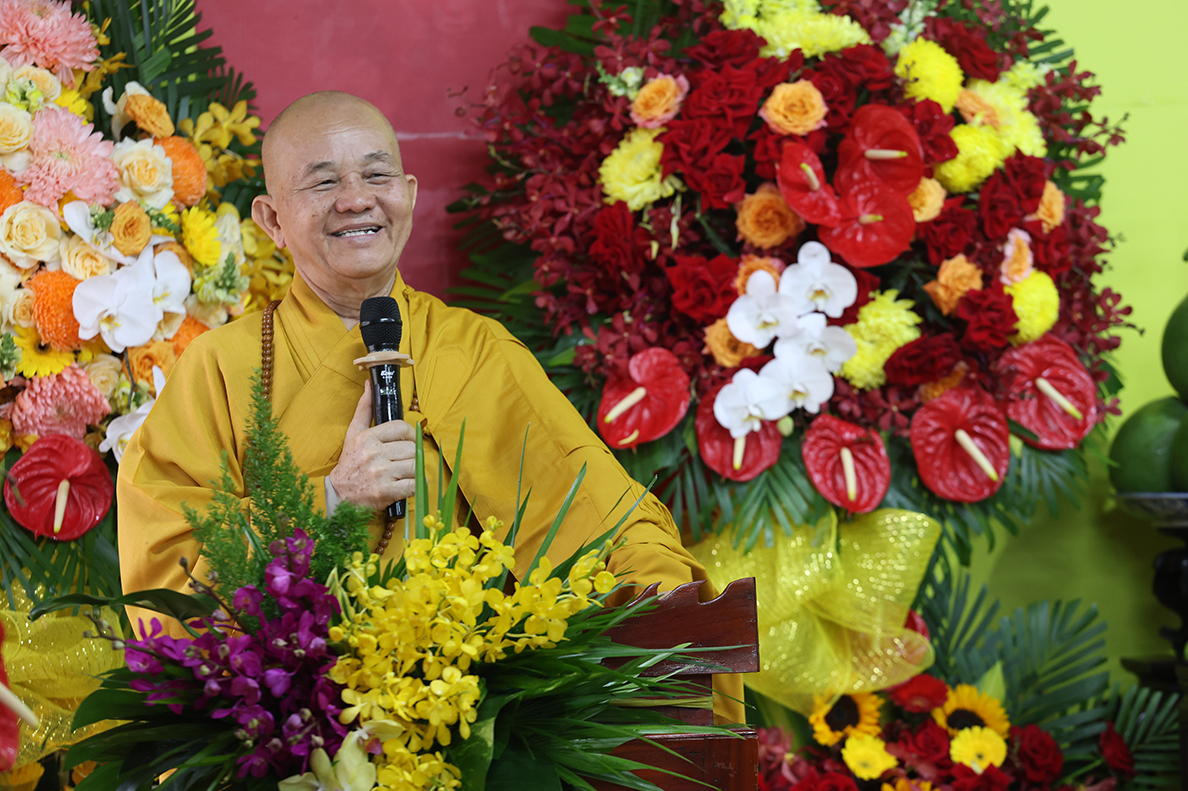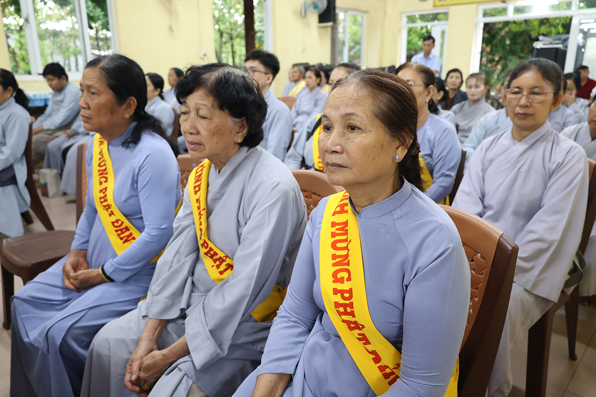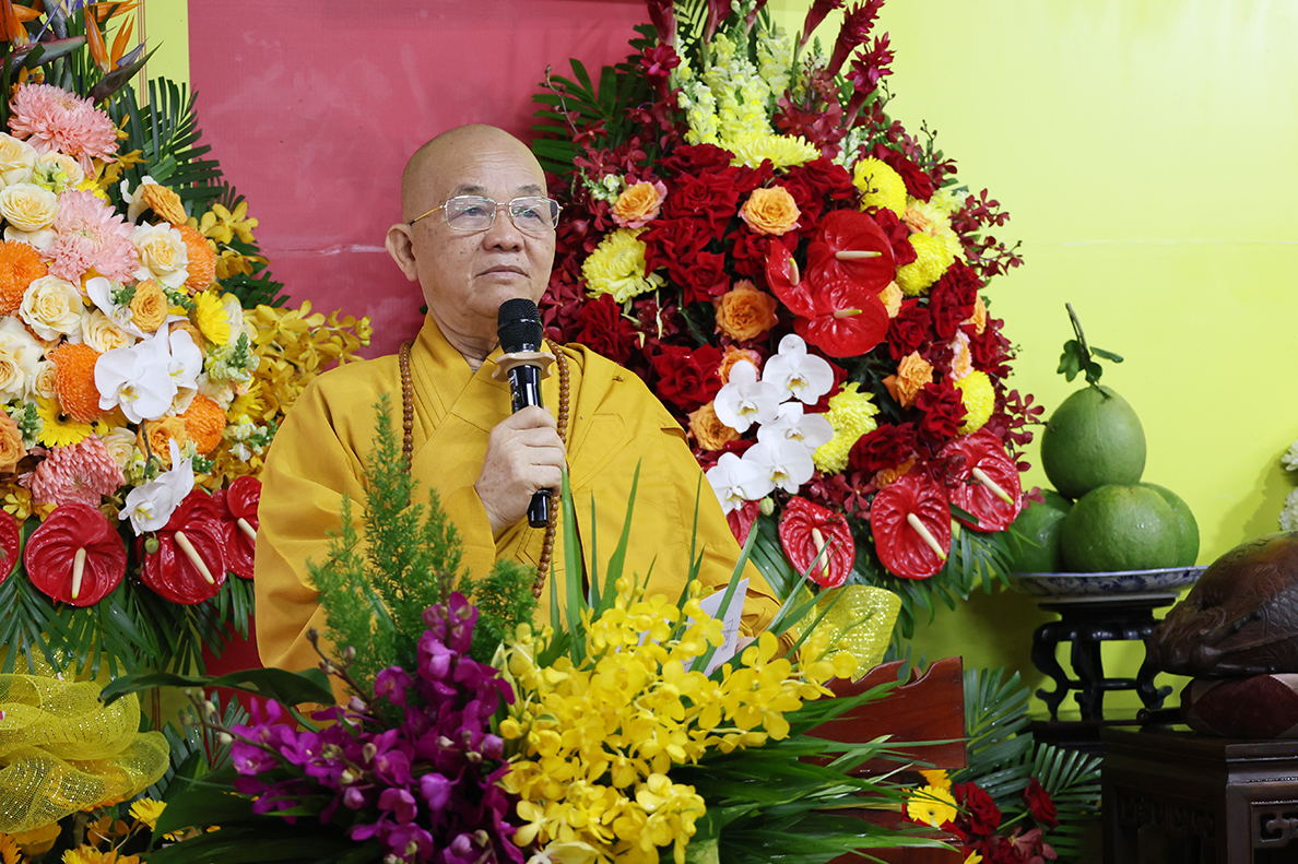 Quý vị tham gia buổi lễ được vinh dự lắng nghe lời đạo từ đầy ý nghĩa của HT. Thích Minh Thiện. Ngài đã khái quát lại sự thành công rực rỡ của Đại lễ Vesak Liên Hiệp Quốc được tổ chức tại Học viện Phật giáo Việt Nam TP.HCM vừa qua, với sự tham dự của đại diện 80 quốc gia và 5 vùng lãnh thổ, khẳng định vị thế của Phật giáo Việt Nam trên trường quốc tế. Hòa thượng đặc biệt tán thán công đức của việc đảnh lễ Xá lợi đức Phật tại chùa Thanh Tâm, một sự kiện linh thiêng, mang lại phước lành cho Phật tử và cộng đồng. Ngài cũng bày tỏ lòng tri ân đối với trái tim bất diệt của Bồ tát Thích Quảng Đức, biểu tượng của tinh thần từ bi và dấn thân vì đạo pháp và dân tộc, khơi dậy niềm tự hào và cảm hứng cho hội chúng. Hòa thượng kêu gọi Tăng Ni và Phật tử tiếp tục thực hành giáo pháp, lan tỏa lòng từ bi và trí tuệ, góp phần xây dựng một thế giới hòa bình, an lạc.