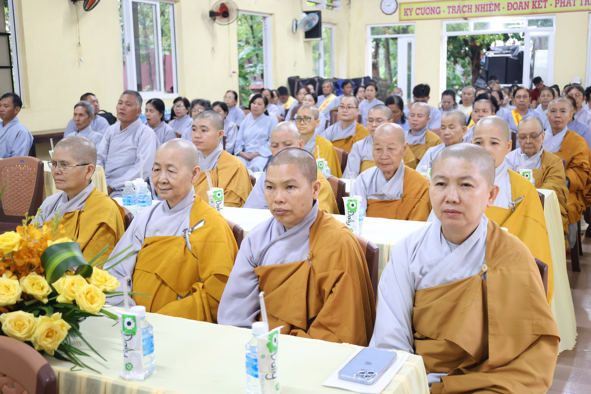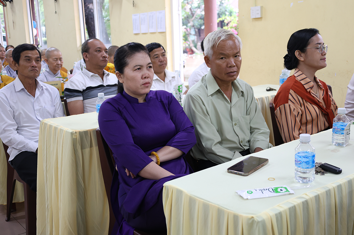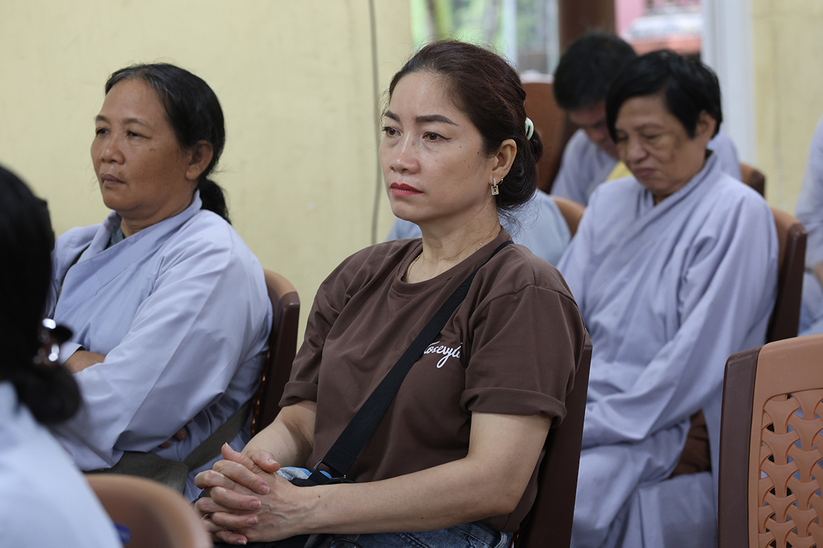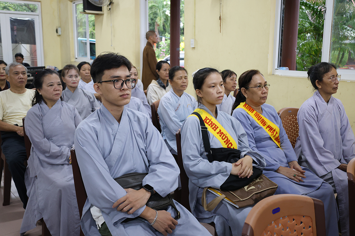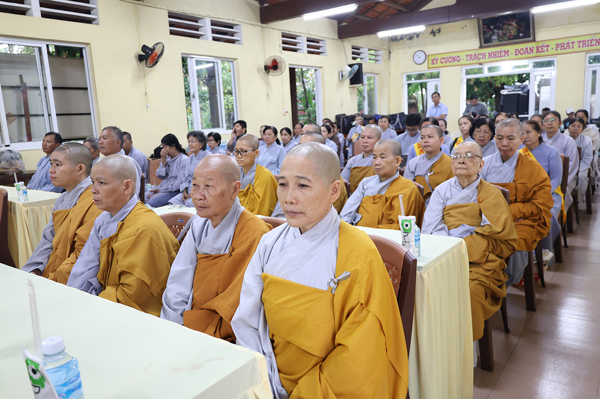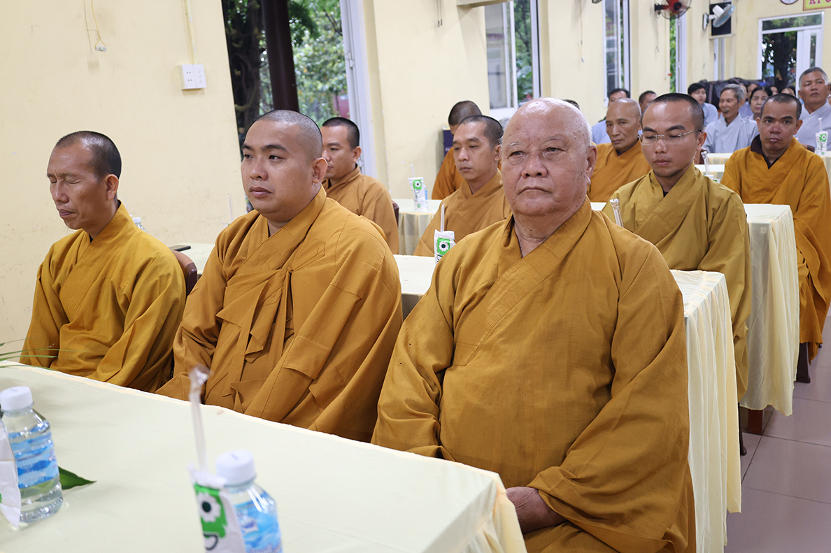 Quý vị tham gia buổi lễ được vinh dự lắng nghe lời đạo từ đầy ý nghĩa của HT. Thích Minh Thiện. Ngài đã khái quát lại sự thành công rực rỡ của Đại lễ Vesak Liên Hiệp Quốc được tổ chức tại Học viện Phật giáo Việt Nam TP.HCM vừa qua, với sự tham dự của đại diện 80 quốc gia và 5 vùng lãnh thổ, khẳng định vị thế của Phật giáo Việt Nam trên trường quốc tế. Hòa thượng đặc biệt tán thán công đức của việc đảnh lễ Xá lợi đức Phật tại chùa Thanh Tâm, một sự kiện linh thiêng, mang lại phước lành cho Phật tử và cộng đồng. Ngài cũng bày tỏ lòng tri ân đối với trái tim bất diệt của Bồ tát Thích Quảng Đức, biểu tượng của tinh thần từ bi và dấn thân vì đạo pháp và dân tộc, khơi dậy niềm tự hào và cảm hứng cho hội chúng. Hòa thượng kêu gọi Tăng Ni và Phật tử tiếp tục thực hành giáo pháp, lan tỏa lòng từ bi và trí tuệ, góp phần xây dựng một thế giới hòa bình, an lạc.