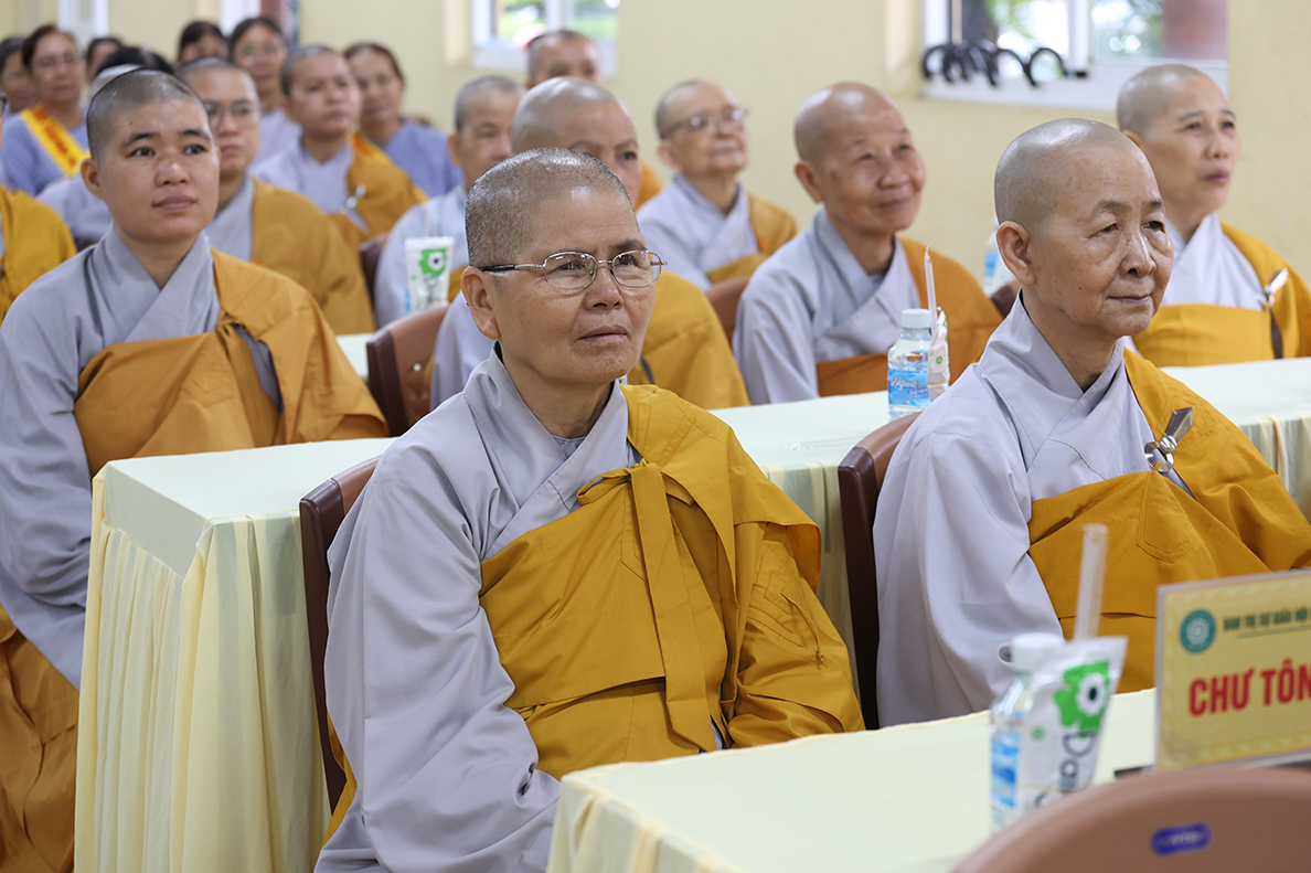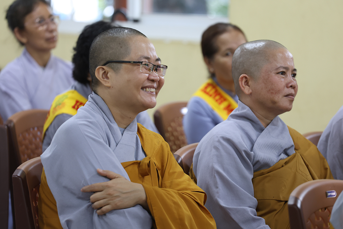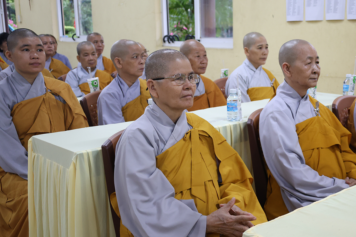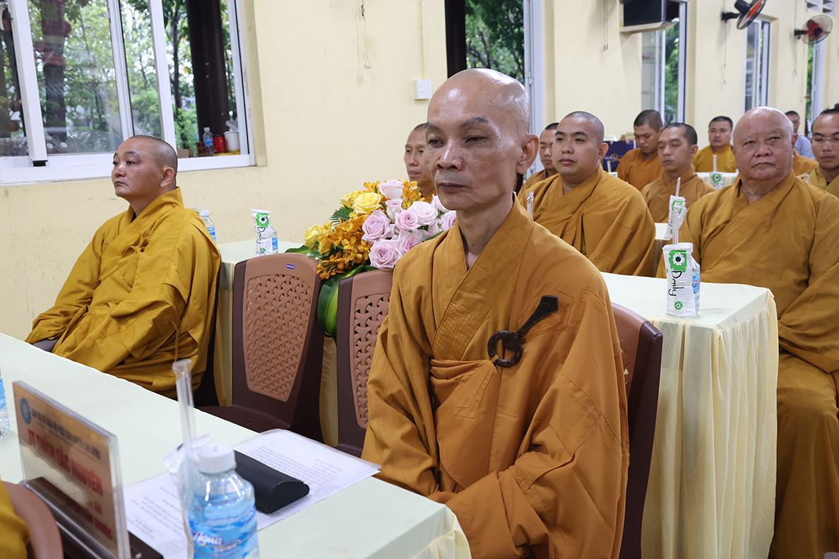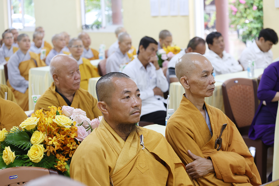 Quý vị tham gia buổi lễ được vinh dự lắng nghe lời đạo từ đầy ý nghĩa của HT. Thích Minh Thiện. Ngài đã khái quát lại sự thành công rực rỡ của Đại lễ Vesak Liên Hiệp Quốc được tổ chức tại Học viện Phật giáo Việt Nam TP.HCM vừa qua, với sự tham dự của đại diện 80 quốc gia và 5 vùng lãnh thổ, khẳng định vị thế của Phật giáo Việt Nam trên trường quốc tế. Hòa thượng đặc biệt tán thán công đức của việc đảnh lễ Xá lợi đức Phật tại chùa Thanh Tâm, một sự kiện linh thiêng, mang lại phước lành cho Phật tử và cộng đồng. Ngài cũng bày tỏ lòng tri ân đối với trái tim bất diệt của Bồ tát Thích Quảng Đức, biểu tượng của tinh thần từ bi và dấn thân vì đạo pháp và dân tộc, khơi dậy niềm tự hào và cảm hứng cho hội chúng. Hòa thượng kêu gọi Tăng Ni và Phật tử tiếp tục thực hành giáo pháp, lan tỏa lòng từ bi và trí tuệ, góp phần xây dựng một thế giới hòa bình, an lạc.