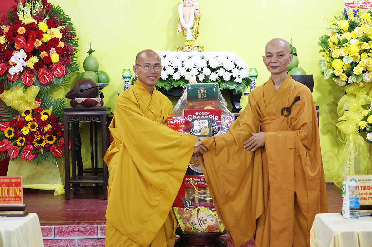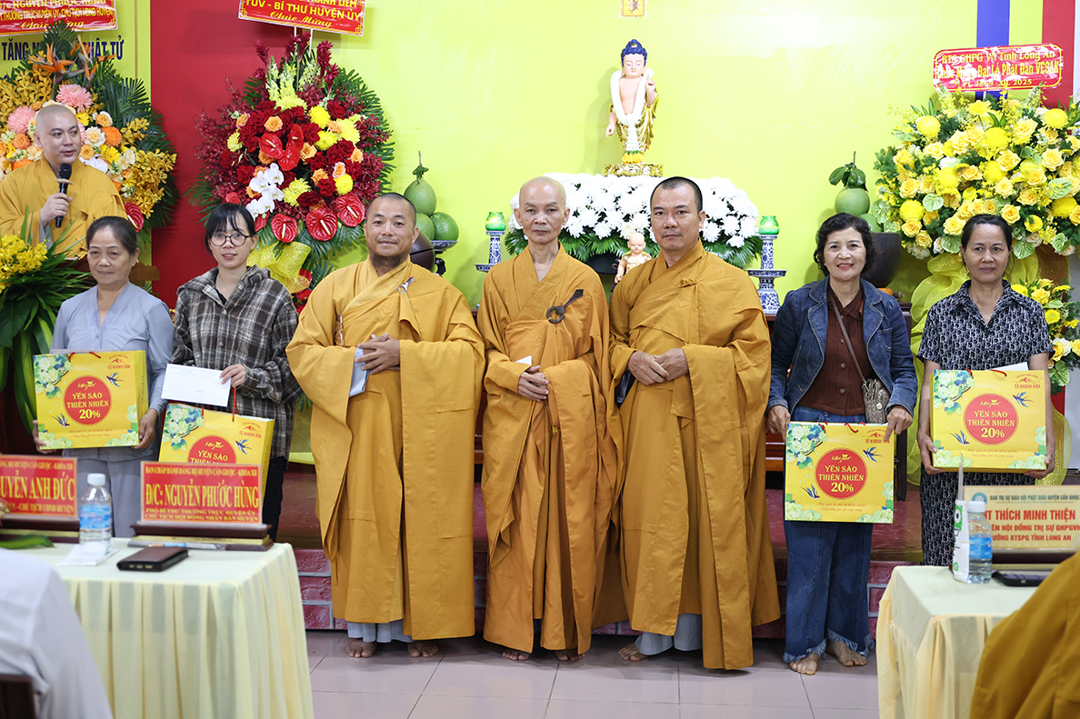 Trong không khí trang nghiêm và ấm áp, buổi lễ hân hạnh đón nhận những lẵng hoa tươi thắm và những phần quà ý nghĩa từ chư Tôn đức Tăng Ni, các tự viện và đại diện chính quyền các cấp dâng cúng. Những món quà này không chỉ thể hiện sự tôn kính mà còn là biểu tượng của sự gắn kết giữa đạo và đời, giữa Giáo hội và cộng đồng.