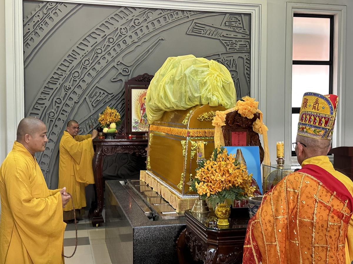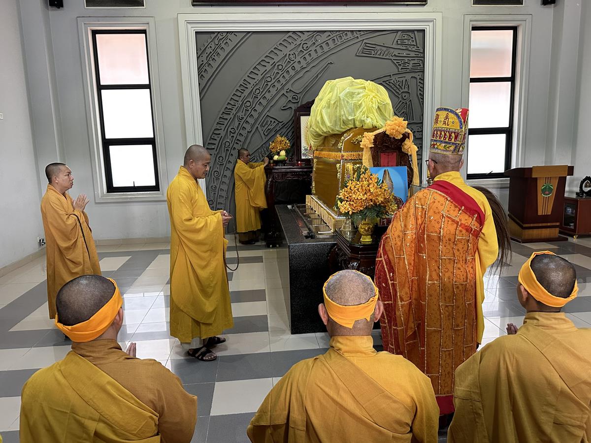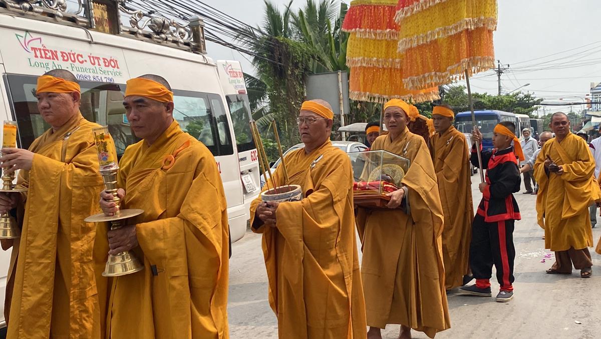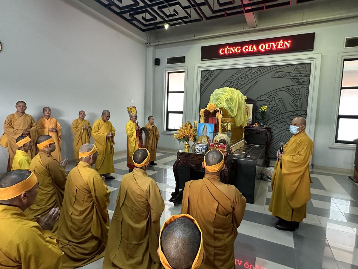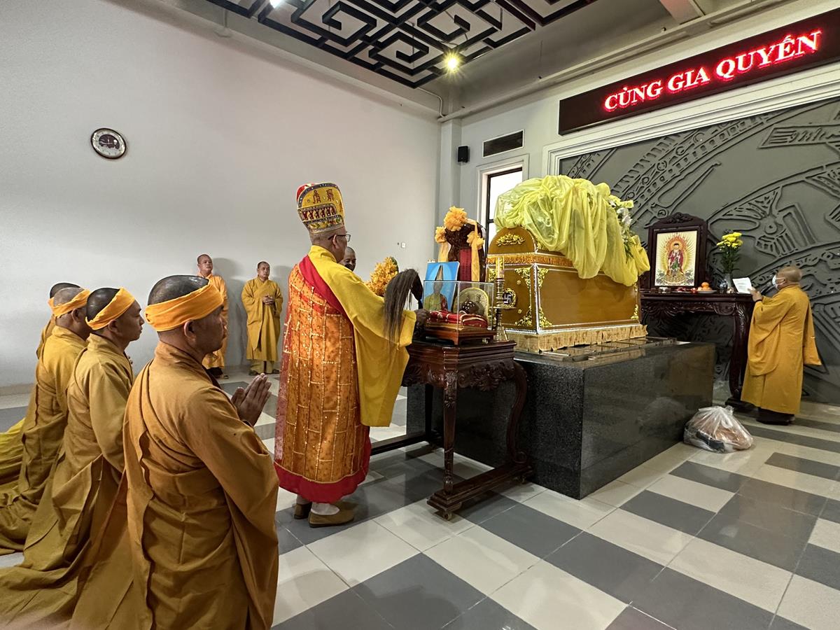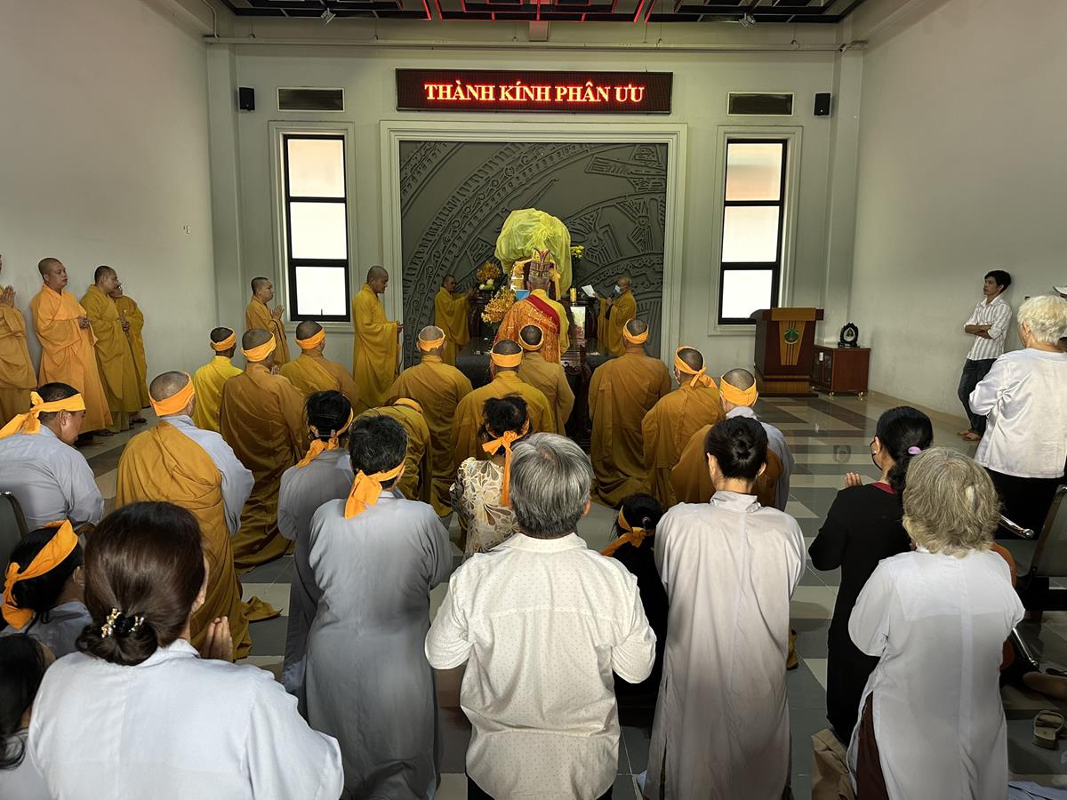 Buổi lễ cung thỉnh Hoà thượng Thích Quảng Tài cung tuyên pháp ngữ. Sau đó Kim quan được cung thỉnh đến Trung tâm hỏa táng Long Thọ (huyện Củ Chi, Tp Hồ Chí Minh) để làm lễ trà tì trong tiếng niệm Phật của đại chúng và âm vang trầm hùng của chuông trống Bát-nhã liên hồi hòa cùng nhạc lễ. Một số hình ảnh được ghi nhận trong buổi lễ: