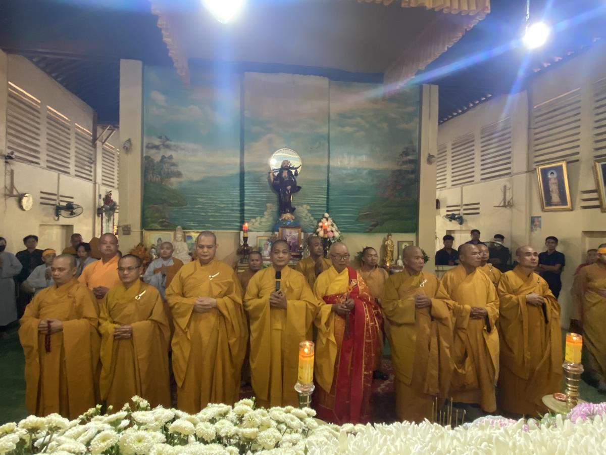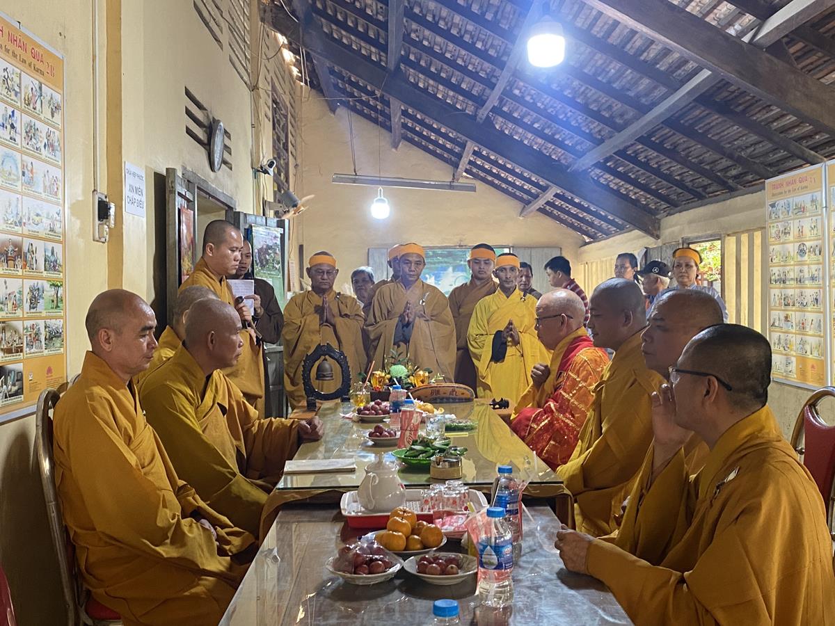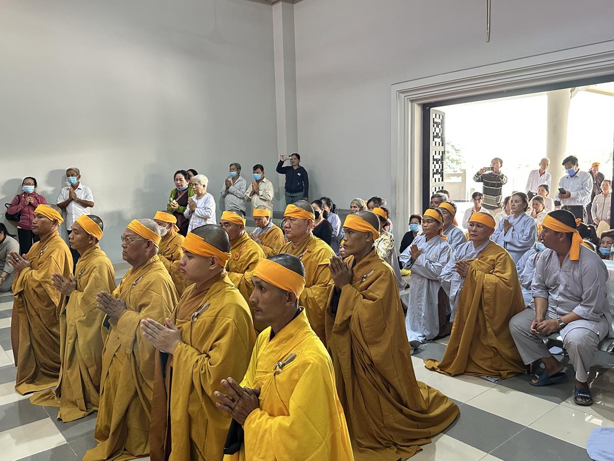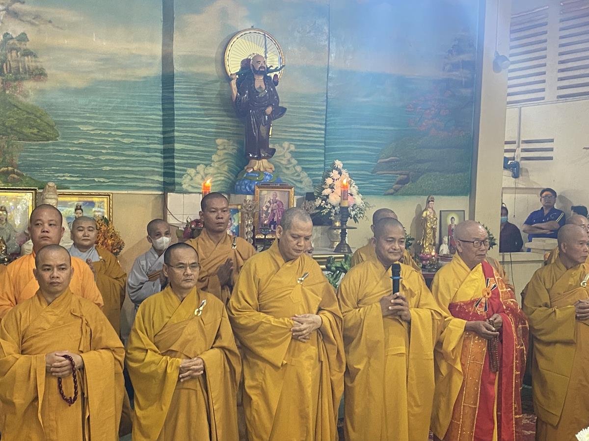 Trong buổi lễ, Chư tôn đức Tăng Ni quang lâm nơi Giác linh đài thắp hương tưởng niệm, nơi Giác linh đường trang nghiêm, Đại đức Thích Lệ Duyên – Phó ban kiêm Chánh Thư ký BTS GHPGVN tỉnh Long An, Trưởng BTS GHPGVN huyện Đức Hòa trưởng đoàn có lời ai điếu trước Giác linh đài và môn đồ pháp quyến. Đại đức bày tỏ sự kính tiếc khi Phật giáo huyện Đức Hoà từ đây mất đi một bậc Tăng già đức hạnh, trong suốt những năm hành đạo mặc dù không trực tiếp tham gia Giáo hội nhưng đời sống phạm hạnh của Thượng toạ là một tấm gương cho đàn hậu tấn noi theo tu học. Đồng thời chia sẽ sự mất mát to lớn của môn đồ pháp quyến khi không còn người thầy khả kính và mong muốn Chư tôn đức trong môn đồ pháp quyến tiếp tục thực hiện những hạnh nguyện của Thượng tọa đã để lại, phát triển ngôi Già lam Hiệp Phước ngày một hưng thạnh.