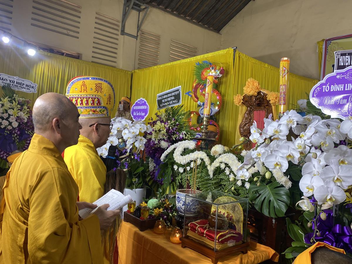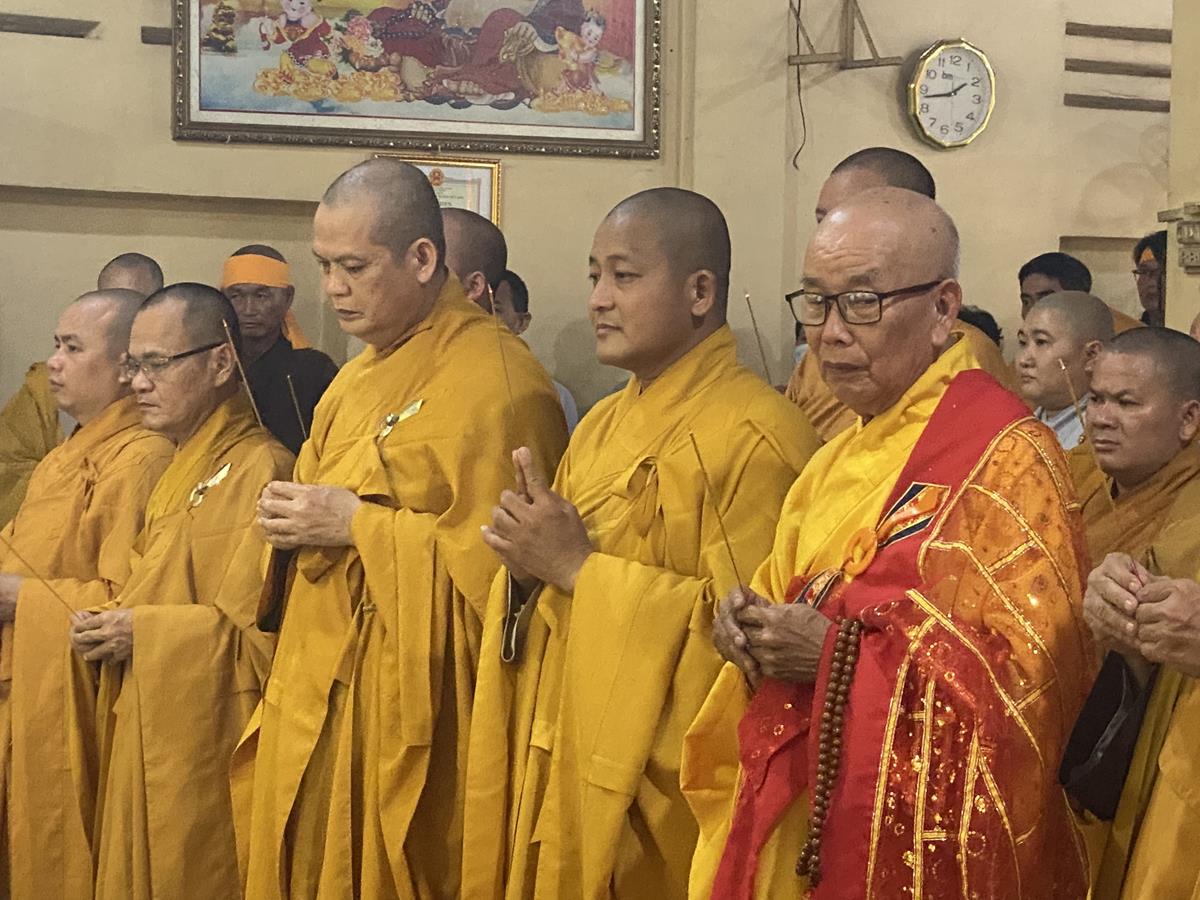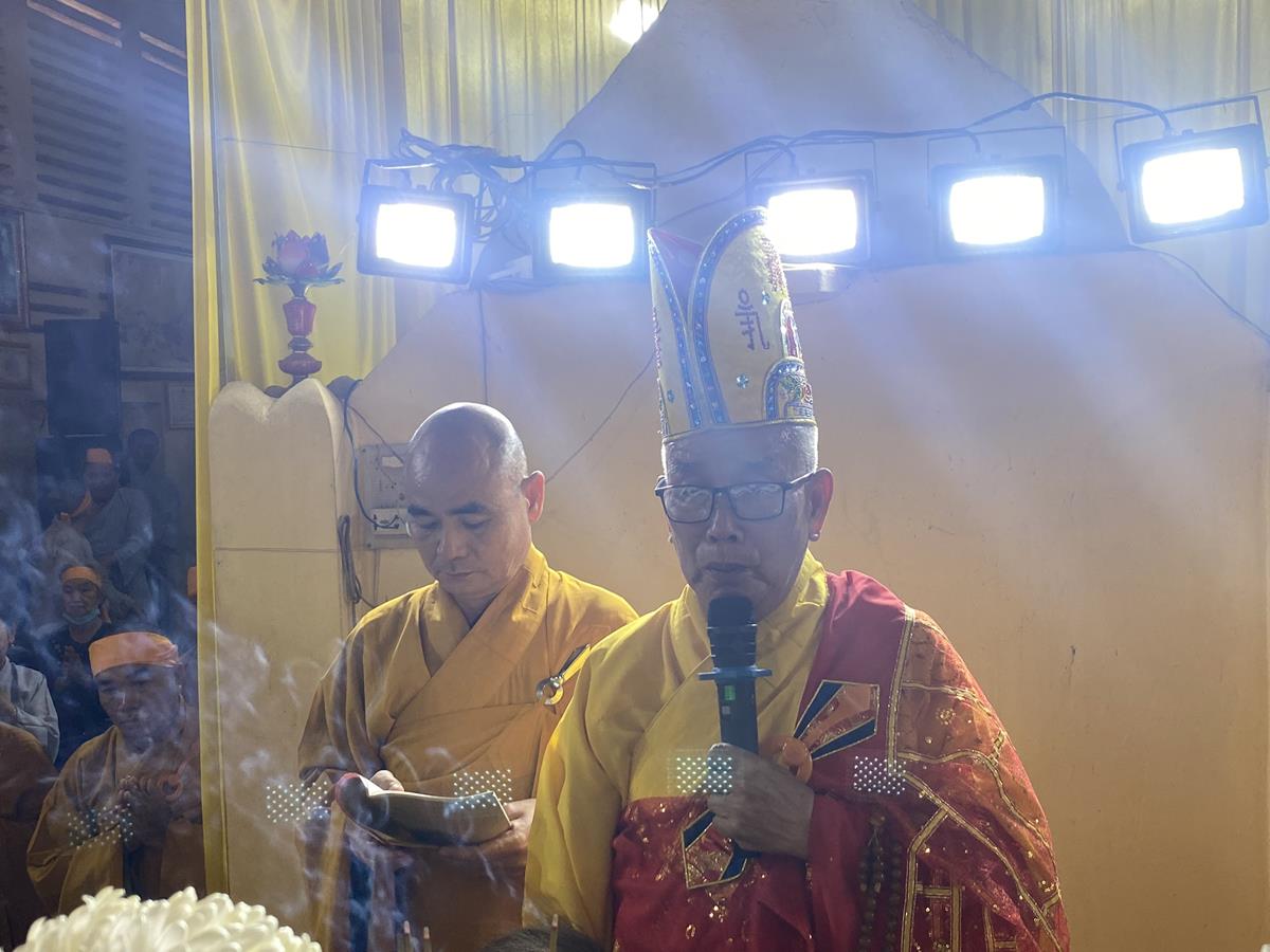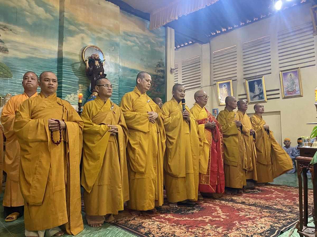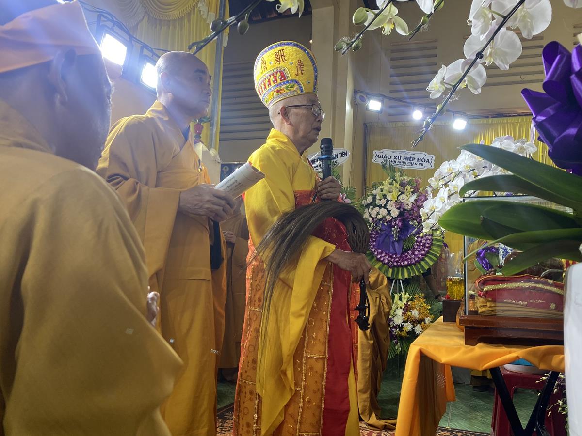 Trong buổi lễ, Chư tôn đức Tăng Ni quang lâm nơi Giác linh đài thắp hương tưởng niệm, nơi Giác linh đường trang nghiêm, Đại đức Thích Lệ Duyên – Phó ban kiêm Chánh Thư ký BTS GHPGVN tỉnh Long An, Trưởng BTS GHPGVN huyện Đức Hòa trưởng đoàn có lời ai điếu trước Giác linh đài và môn đồ pháp quyến. Đại đức bày tỏ sự kính tiếc khi Phật giáo huyện Đức Hoà từ đây mất đi một bậc Tăng già đức hạnh, trong suốt những năm hành đạo mặc dù không trực tiếp tham gia Giáo hội nhưng đời sống phạm hạnh của Thượng toạ là một tấm gương cho đàn hậu tấn noi theo tu học. Đồng thời chia sẽ sự mất mát to lớn của môn đồ pháp quyến khi không còn người thầy khả kính và mong muốn Chư tôn đức trong môn đồ pháp quyến tiếp tục thực hiện những hạnh nguyện của Thượng tọa đã để lại, phát triển ngôi Già lam Hiệp Phước ngày một hưng thạnh.