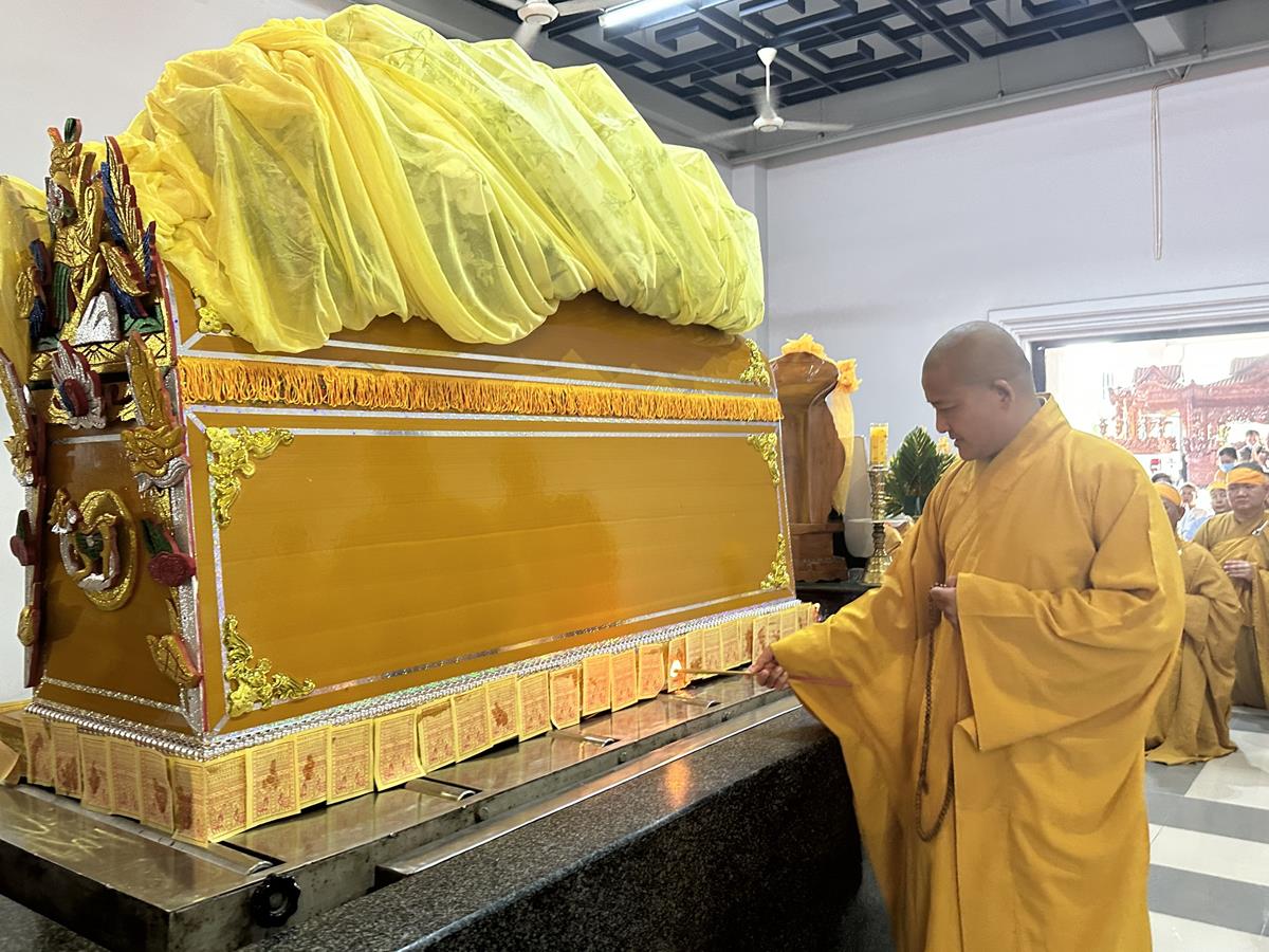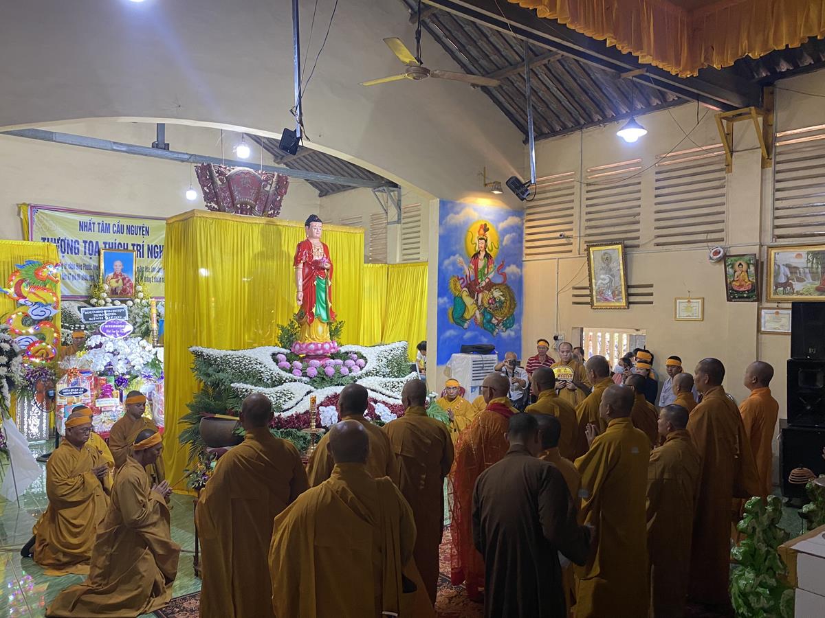 Chiều ngày 11 tháng 04 năm 2023 (21/02 Nhuần năm Quý Mão), Ban Tổ chức Tang lễ và môn đồ pháp quyến trang nghiêm tổ chức Lễ truy niệm và phụng tống kim quan cố Thượng tọa Thích Trí Ngiêm húy Nhựt Thành đến nơi Trà tì tại Trung tâm hỏa táng Long Thọ (huyện Củ Chi, Tp Hồ Chí Minh).